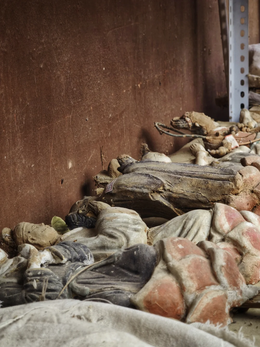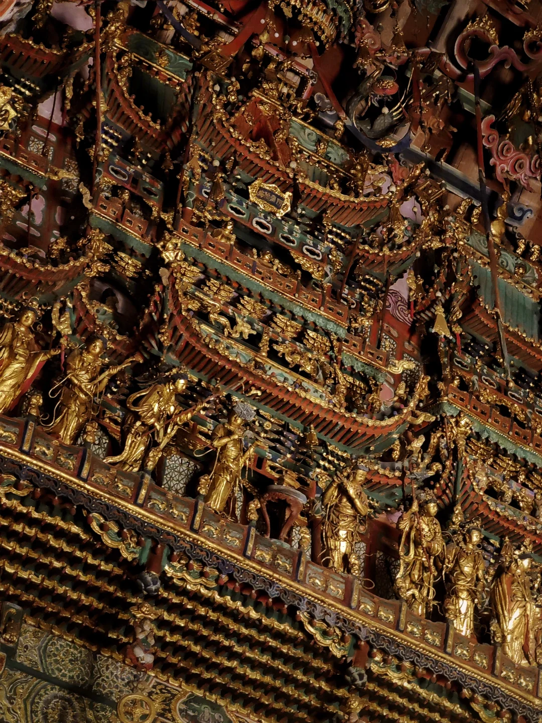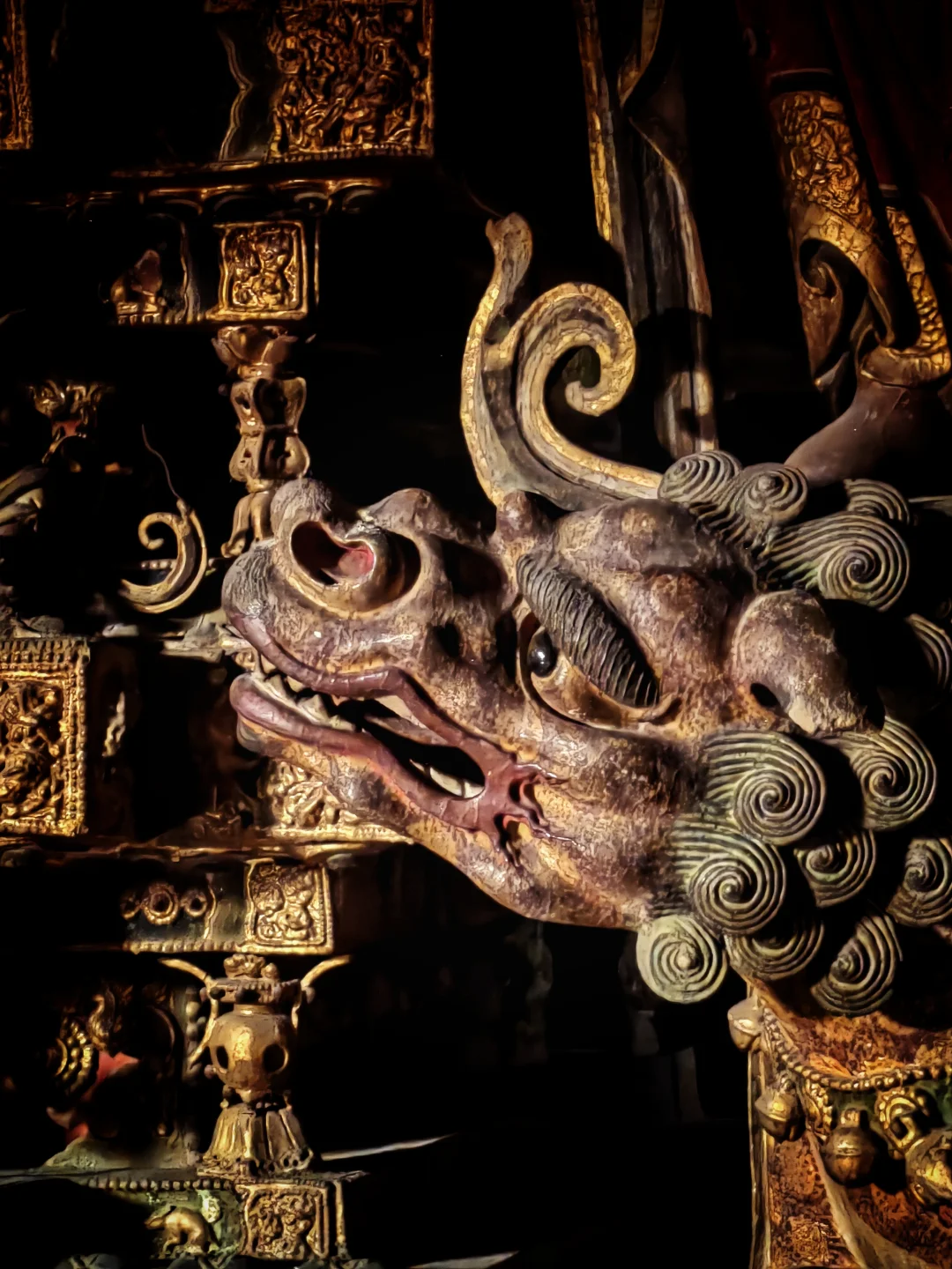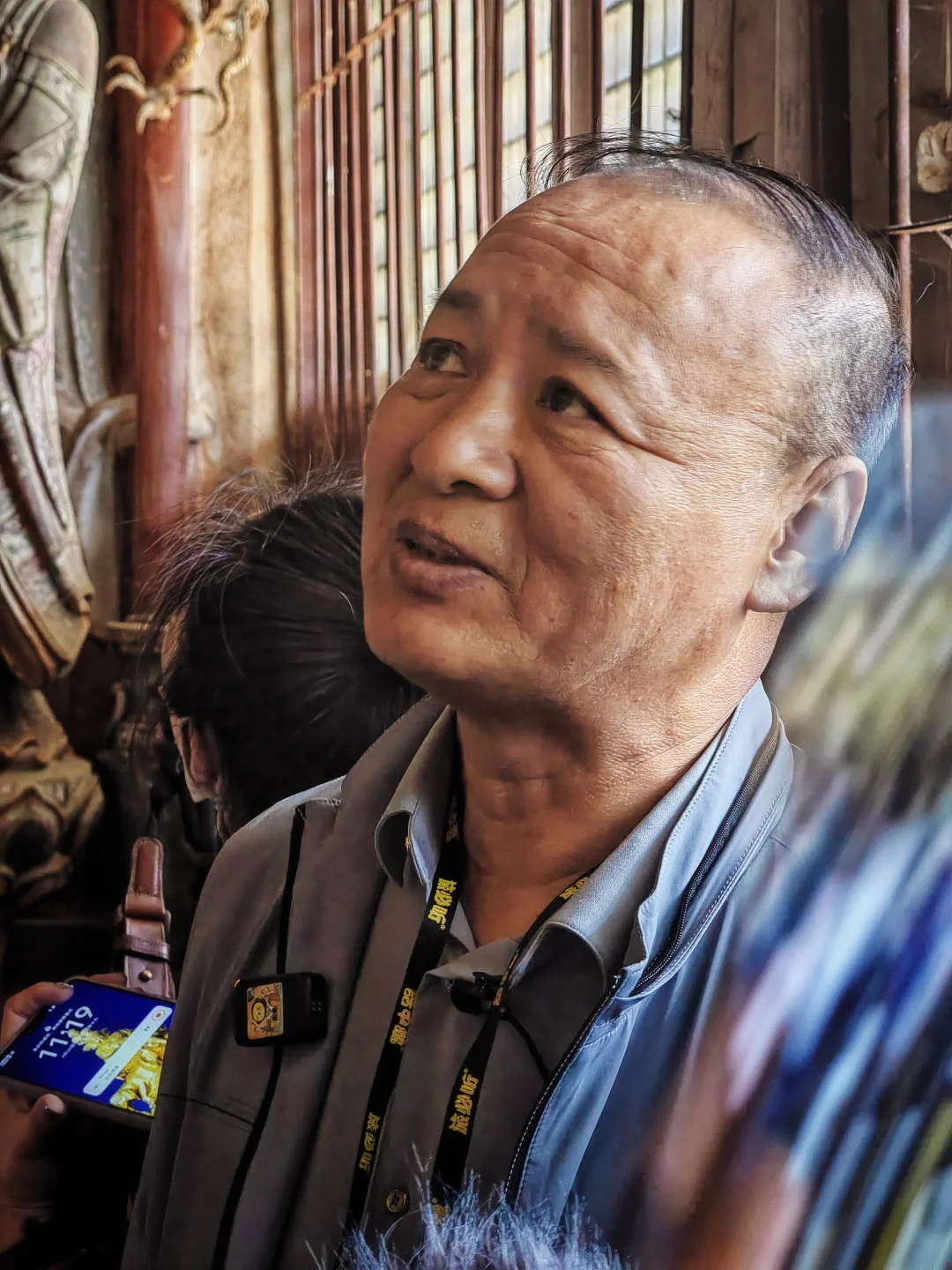 👉原来守庙人老王曾在此工作了40余年,还带我们去看了“库房”里那些曾经落架大修时无法上墙的零部件,总算有机会近距离目睹悬塑的工艺了
