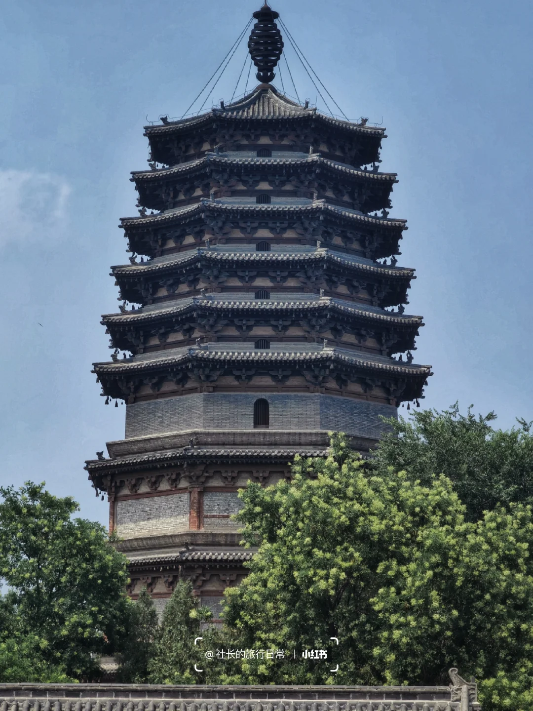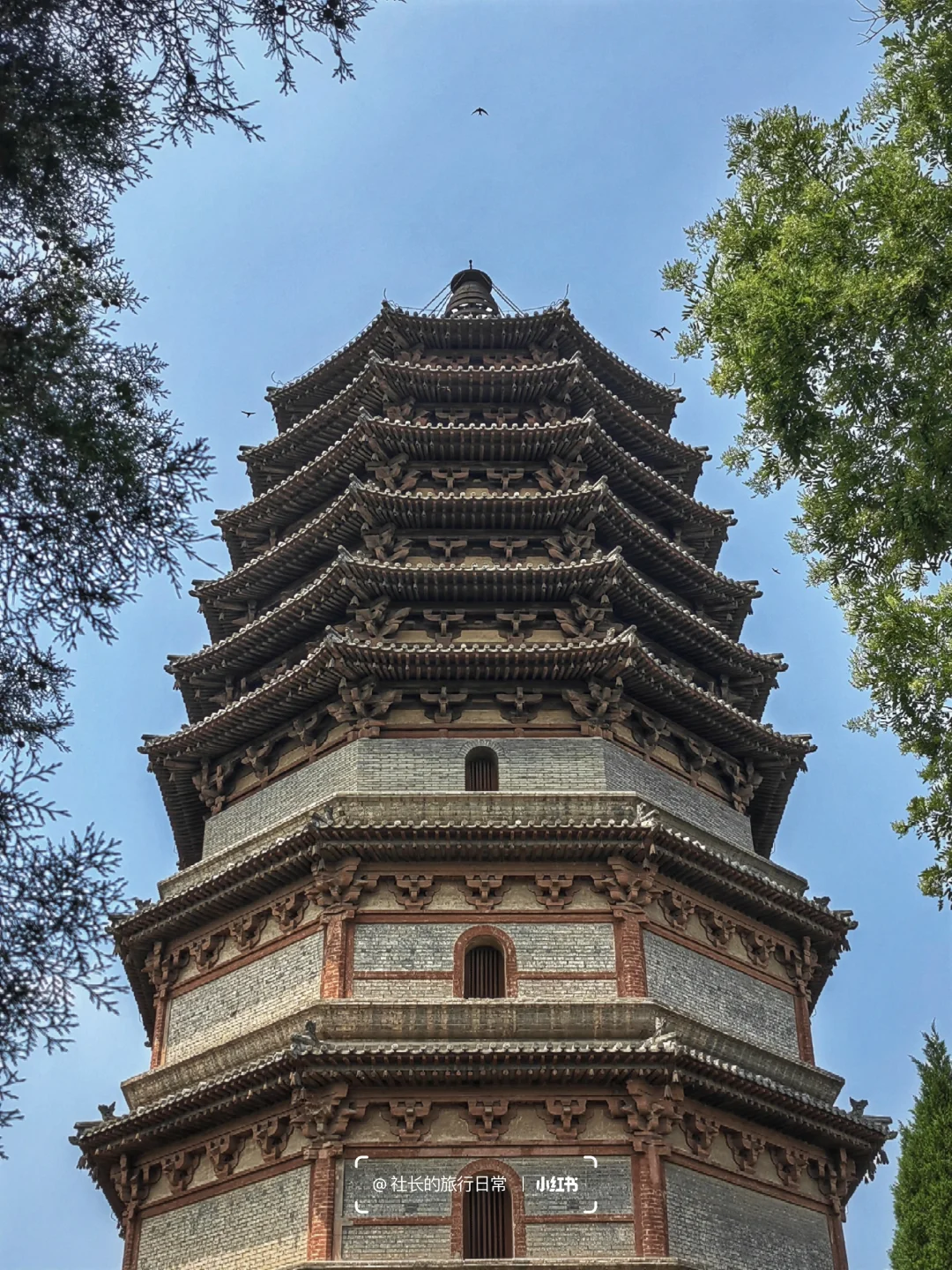 🌈天宁寺:曾经的八大寺之一如今仅剩凌霄塔一座,它是正定最高古建,前三层是砖构,四层开始为木构,每层高度递减、收分增加让塔看起来柔和而稳定,这也是国内唯二的"半木构塔"之一,尤其木构部分的"塔心柱"更是仅此一例,受到许多建筑学家的赞誉