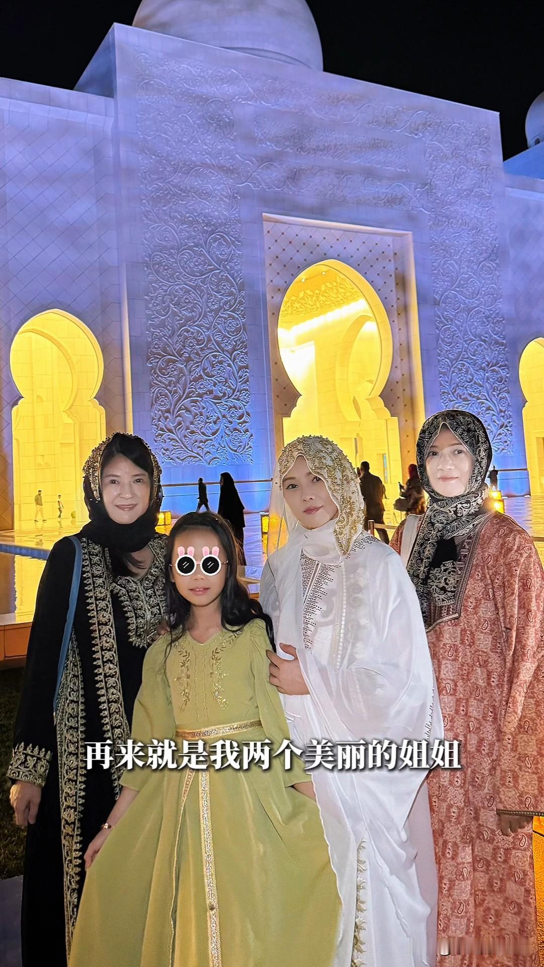 1月9日,伊能静更新迪拜阿布扎比清真寺旅行vlog。 原来除了伊能静秦昊一家人外,伊能静的两个姐姐也一同去了迪拜,她们几姐妹的关系是真的好呀。 伊能静先用5分钟画了个淡妆,她特地提到自己是乱画的,喊网友们不要吐槽她。 当天,伊能静穿上了当地的服饰,把能遮的地方都遮了起来,整个人看起来十分漂亮。 伊能静还晒出了一家三口、公公婆婆以及与两个姐姐的合照。 伊能静情商特别高,夸婆婆非常美,难怪婆媳关系这么好,大家觉得呢?