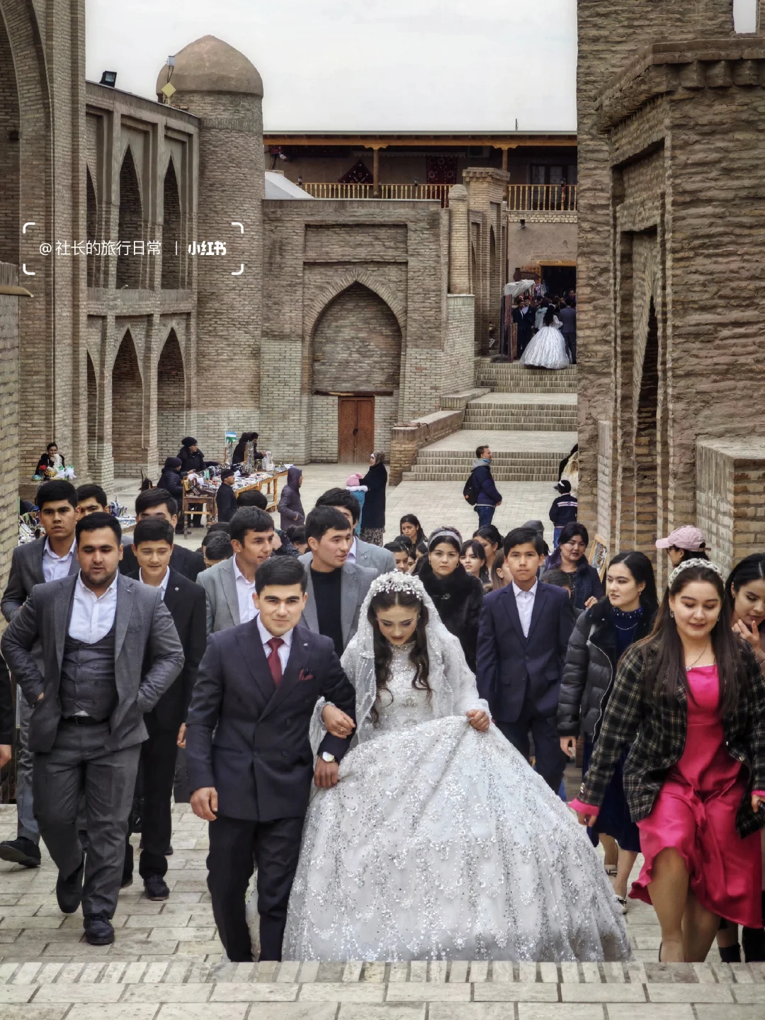 相比撒马尔罕和布哈拉,希瓦显然是经过“精致装扮”的:经过中国专家们的深度参与,“一卡通”的联票收费模式和那些有模有样的古建改造博物馆,无处不在体现古城保护与修缮的“中国模式”。小城正在向旅人卖力地展示着乌国各方个面的深厚历史和优秀成果,可这样的呈现未免有些“过犹不及”,如果想真真实实地接一回地气儿,那么邂逅一场本地的新人婚礼将是你希瓦旅行的最好礼物。