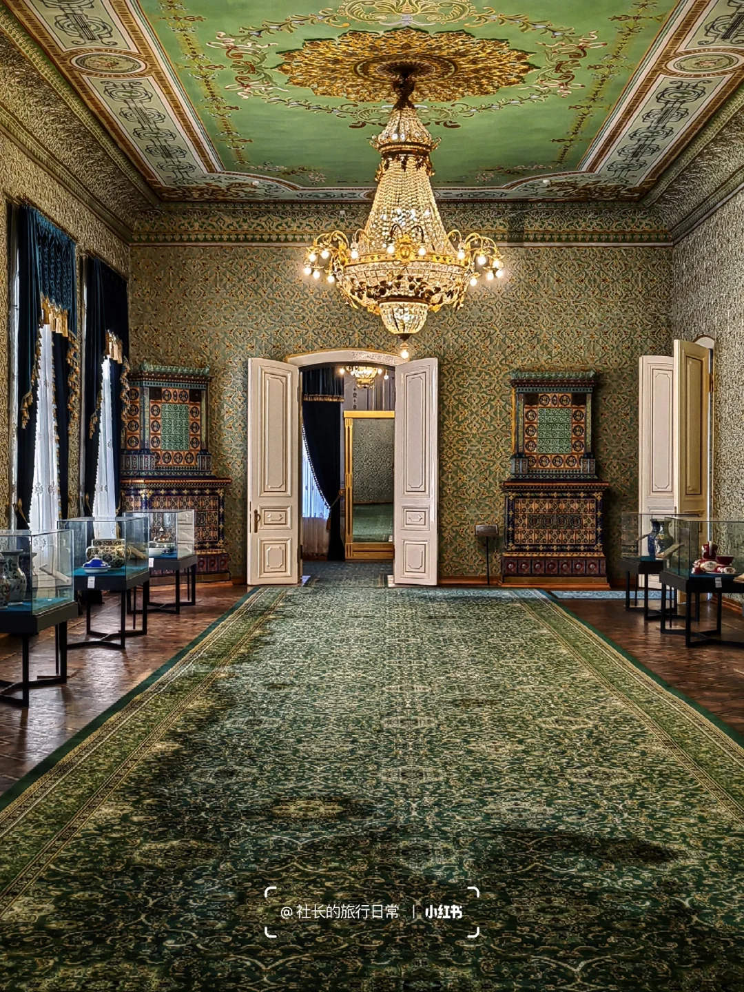 👉 Isfandiyar宫:镶金天花板、巨巨巨大的镜子和吊灯、东西方杂糅的繁复装饰让整个宫殿浮夸而奢靡,这位保守的希瓦汗王虽不受国民待见,但行宫却弄得有模有样