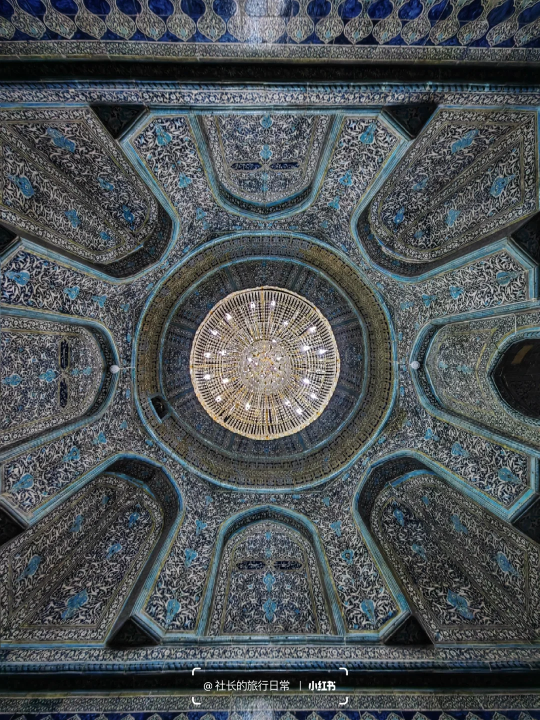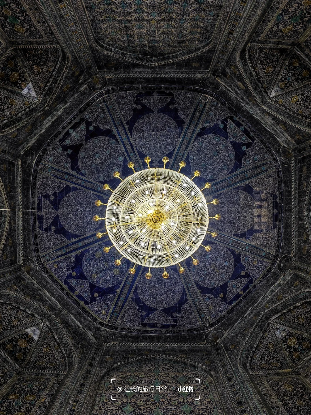 满堂耀眼的绿松石装饰让"最美陵墓"的头衔非希瓦摔跤手兼诗人【Pahlavon Mahmud陵墓】莫属,这位希瓦牛人可谓文武双全,20世纪初陵墓被可汗征用,所以整个墓室还能看到其他可汗的陵墓,希瓦的新婚夫妇经常在这里进行祷告