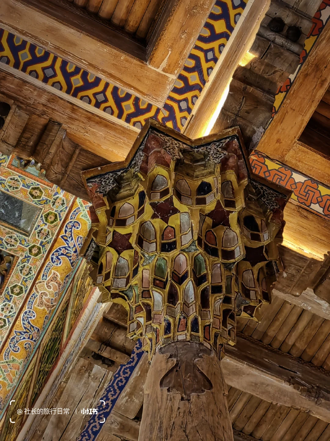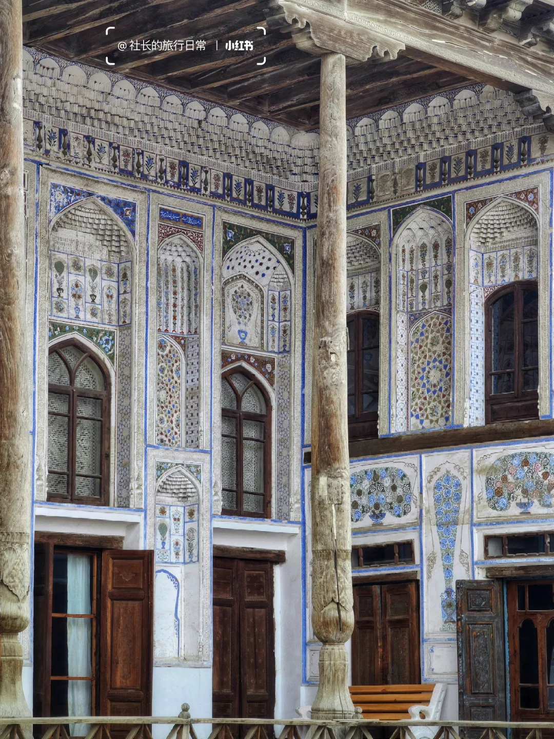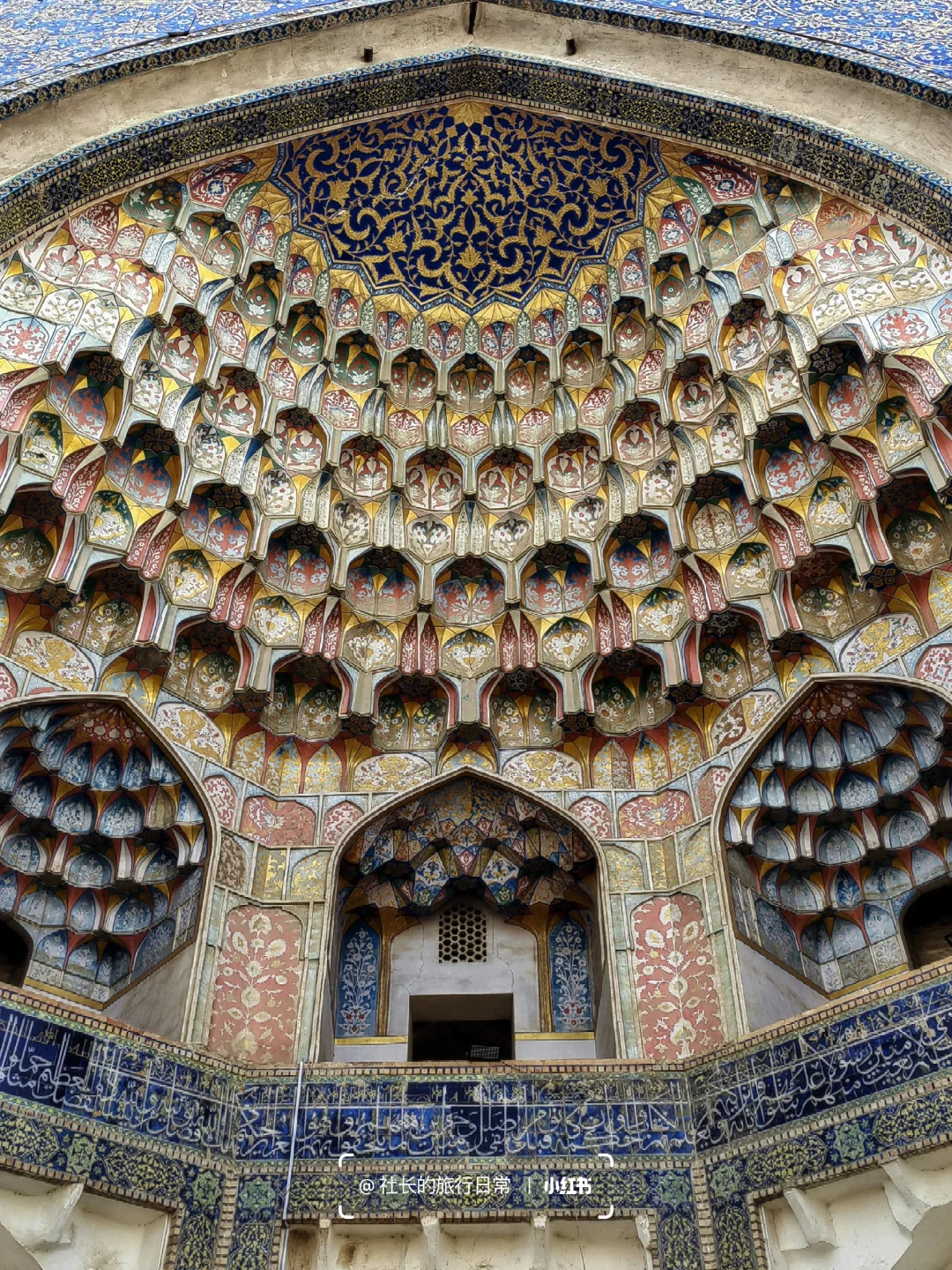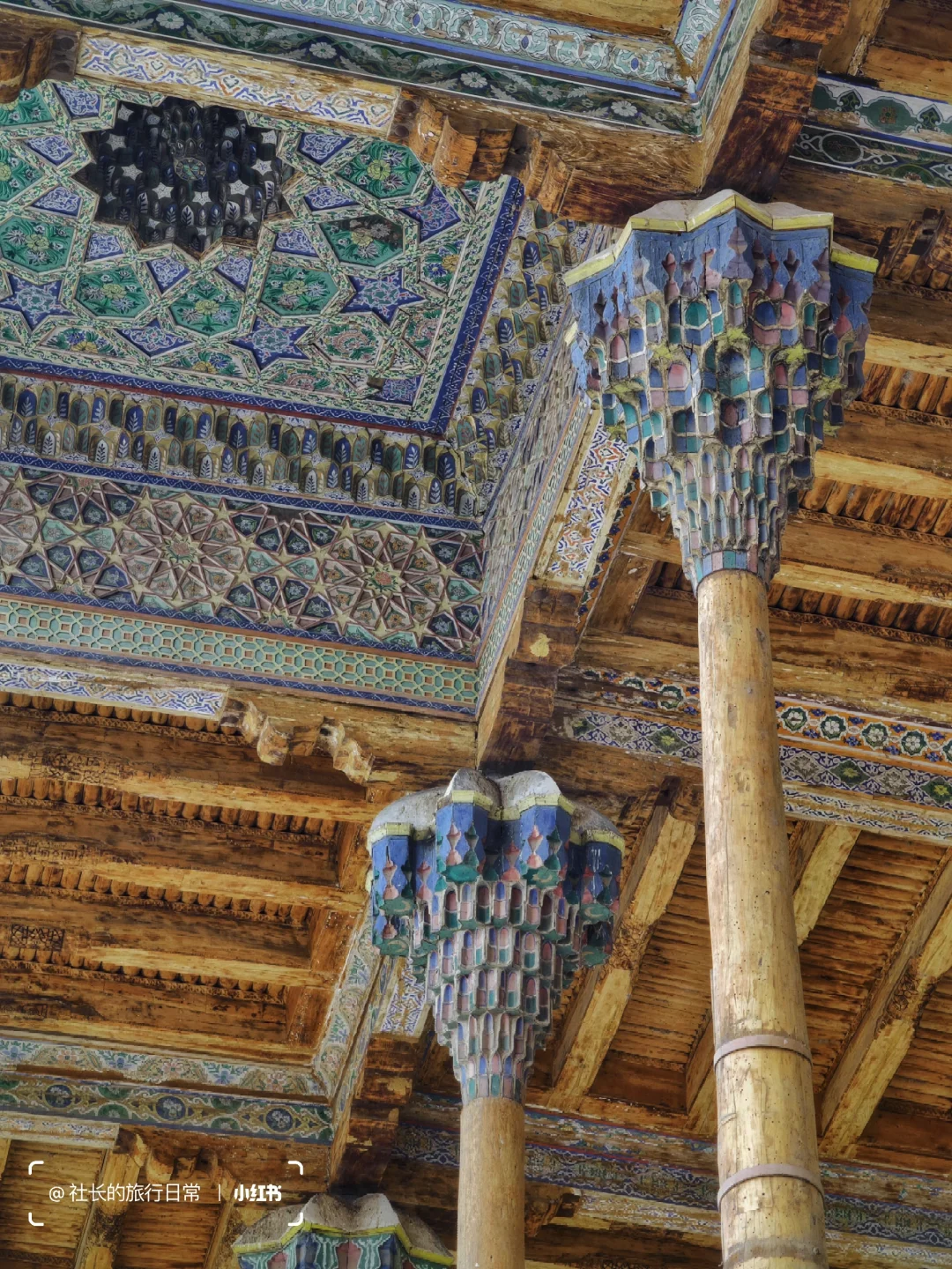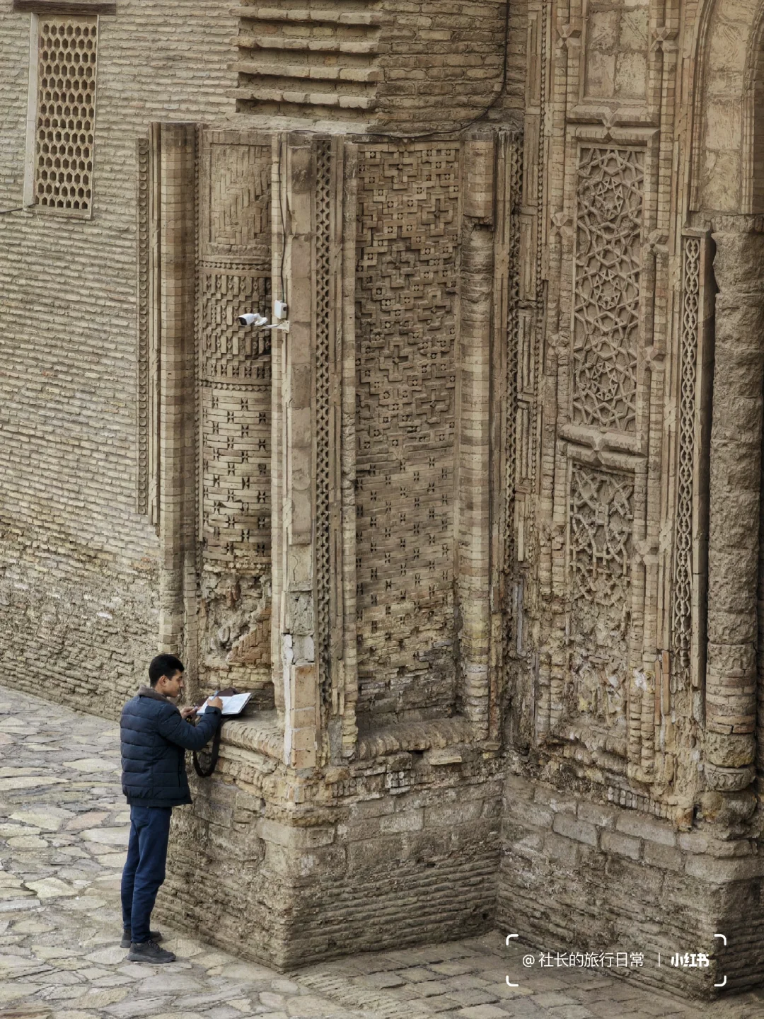 💡继续向东,拥有600年历史的【Ulugbek神学院】被称为乌国神学院的鼻祖,也是诸多神学院的“原型机”,就连撒马尔罕Registan广场那座著名的同名神学院都晚了它3年。对门的【Abudl Aziz Khan神学院】晚建了两百年,里面祈祷室值得驻足停留,目前以“木雕博物馆”的名义对外开放,据说神学院主人当年将自己的肖像刻画进神龛中,用隐晦的方式绕开ysl禁止描绘生物的教义