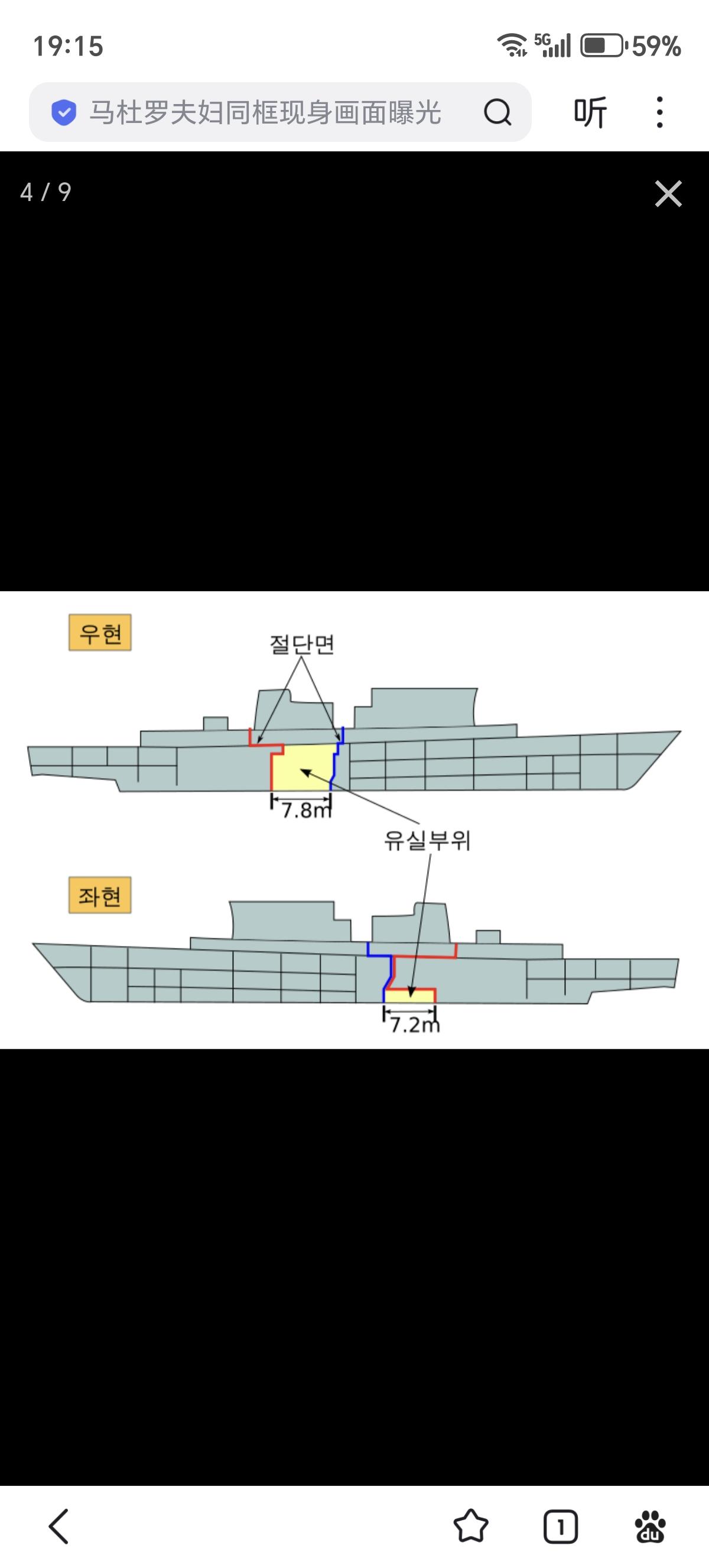 韩国调查委员会的认为:“天安”号护卫舰(PCC-772,图1)是被朝鲜“Yono”级小型潜艇(图2)发射的鱼雷击沉的(位置见图3,损伤情况见图4)。完整报告显示,他们考虑了10种替代的(但据称“不切实际的”)灾难情景,最终是第十一种版本(朝鲜袭击),据称其可能性“很高”(“highly likely”)。 “天安”号护卫舰是韩国海军“浦项”级护卫舰的反潜改型,排水量约1200吨,1989年服役,主要反潜系统和武器包括PHS-32舰壳声纳(图5),两个三联装324mm鱼雷发射管(Mk 46 Mod 1-2反潜鱼雷)和12枚Mk 9深水炸弹。根据韩国方面说法,已知爆炸前,“天安”号已经启动了主动声呐,但未探测到附近任何潜艇。 图6、图7、图8:被水下爆炸拦腰截断为两截的“天安”号护卫舰。 据委员会称,在事故区域发现了朝鲜制造的鱼雷碎片,这些碎片是5月15日由挖泥船作业时在爆炸地点发现的。被发现的部分包括:5×5叶片对转螺旋桨、推进发动机和舵机段。 这些碎片被认为与朝鲜武器贸易商宣传册中CHT-02D型鱼雷的图纸完全吻合。在发动机上发现了韩文“1번”(即“1号”)的标记,据称这与2003年获得的朝鲜鱼雷样本相符。 反对者指出,朝鲜更常使用汉字“号”,而非“番”(韩语“번”常对应汉字“番”),且7年前获得的朝鲜鱼雷上标记的是“4号”。此外,俄罗斯和中国的鱼雷都是用各自语言标记的。 朝鲜制造的CHT-02D鱼雷(本质上基于老式的苏联和中国鱼雷),采用声学自导和尾流自导,是被动声学跟踪方式。鱼雷重1700公斤,口径533毫米,战斗部约250公斤。其正确的结构图从未公开过。 一位韩国专家对这样重型鱼雷用于被指袭击护卫舰的微型潜艇表示怀疑:“众所周知,朝鲜突击队使用小型潜艇渗透区域或布设水雷,但它们似乎没有先进的系统来制导自导武器。如果动用了更小级别的潜艇,那就会产生更大的疑问。” 调查组的另一位成员申相哲公开表示怀疑,声称:“证据的放大照片显示,标记是涂在生锈的表面上的。如果是朝鲜所为,标记应该是在光滑的表面上。” 不过,韩国国防部早些时候就曾试图将申相哲排除在调查组之外,理由是“他不具备在调查组工作的资格,因为他散布恶意谣言,并且缺乏必要的知识,在参与调查时态度不真诚。” 调查委员会的最终报告于2010年9月13日公布。结论是:“证据有力地表明,鱼雷是由朝鲜潜艇发射的。” 调查委员会声称,一支小型潜艇编队在辅助舰只的陪同下,于天安舰沉没前几天从朝鲜海军基地出发……。“‘天安’舰因鱼雷水下爆炸产生的冲击波和气泡效应而断裂并沉没。引爆点位于燃气轮机舱中心左舷约3米处,深度6-9米……(朝鲜的行为)没有任何可信的辩解理由。” 调查委员会中的韩国成员在接受《朝鲜日报》采访时,阐述了比报告中更详细的事件版本。但官方摘要和最终报告中都没有包含如此详细的朝鲜潜艇移动和攻击位置信息: 他们认为,一艘或两艘朝鲜潜艇,一艘“Yono”级,另一艘“SANG-O”级,于2010年3月23日在辅助舰只陪同下离开了鼻岘里海军基地。根据报告,其中一艘潜艇绕道至白翎岛西侧,于2010年3月25日抵达。该潜艇在水下约30-50米深度等待,直到护卫舰经过。潜艇在两次潮汐之间,从大约3公里外发射了533毫米CHT-02D重型自导鱼雷击沉了“天安”号护卫舰。朝鲜潜艇于2010年3月28日返回港口。 朝鲜中央通讯社于2010年5月28日正式答复,对鱼雷的保存状况表示怀疑:“关于螺旋桨轴和发动机完好无损且形状不变的断言也是荒唐可笑的。就连盲目支持韩国政权‘调查’的国际调查组的美国和英国成员也对玻璃箱中的展品感到困惑。” 朝鲜军方还反驳了鱼雷上的铭文,并解释说:“当我们在武器上刻序列号时,我们是用机器雕刻的。”11月2日,朝中社详细驳斥了韩国联合调查组的报告。《劳动新闻》声称:“天安号军舰遭到鱼雷攻击的可能性为0%。” 俄罗斯海军潜艇和鱼雷专家小组于五月底访问了韩国,并带回样本进行分析。俄罗斯海军开展的调查结果未正式公布。印度《印度教徒报》援引俄罗斯海军消息人士称:“在审查现有证据和船只残骸后,俄罗斯专家得出结论,国际调查中支持朝鲜击沉护卫舰的若干论点依据不足。” 据韩国反对派报纸《韩民族日报》报道,俄罗斯调查人员得出结论:“‘天安’舰在发生非接触爆炸前曾触底并损坏其一具螺旋桨,可能是军舰试图在深水区机动时引发水雷所致。对韩国发现的鱼雷部件进行目视检查显示,该鱼雷在水中已超过6个月。”