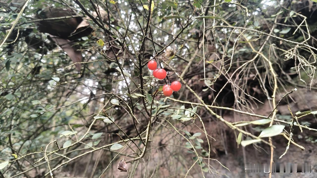 有谁知道这是什么果子吗? 味道酸酸的,甜甜的, 中午,难得出现了太阳,就带着小孩去外婆家山上玩,看见路边的树上结了这种红红的小圆果子。 就想起小时候摘了当零食,但我却不知道它叫什么名