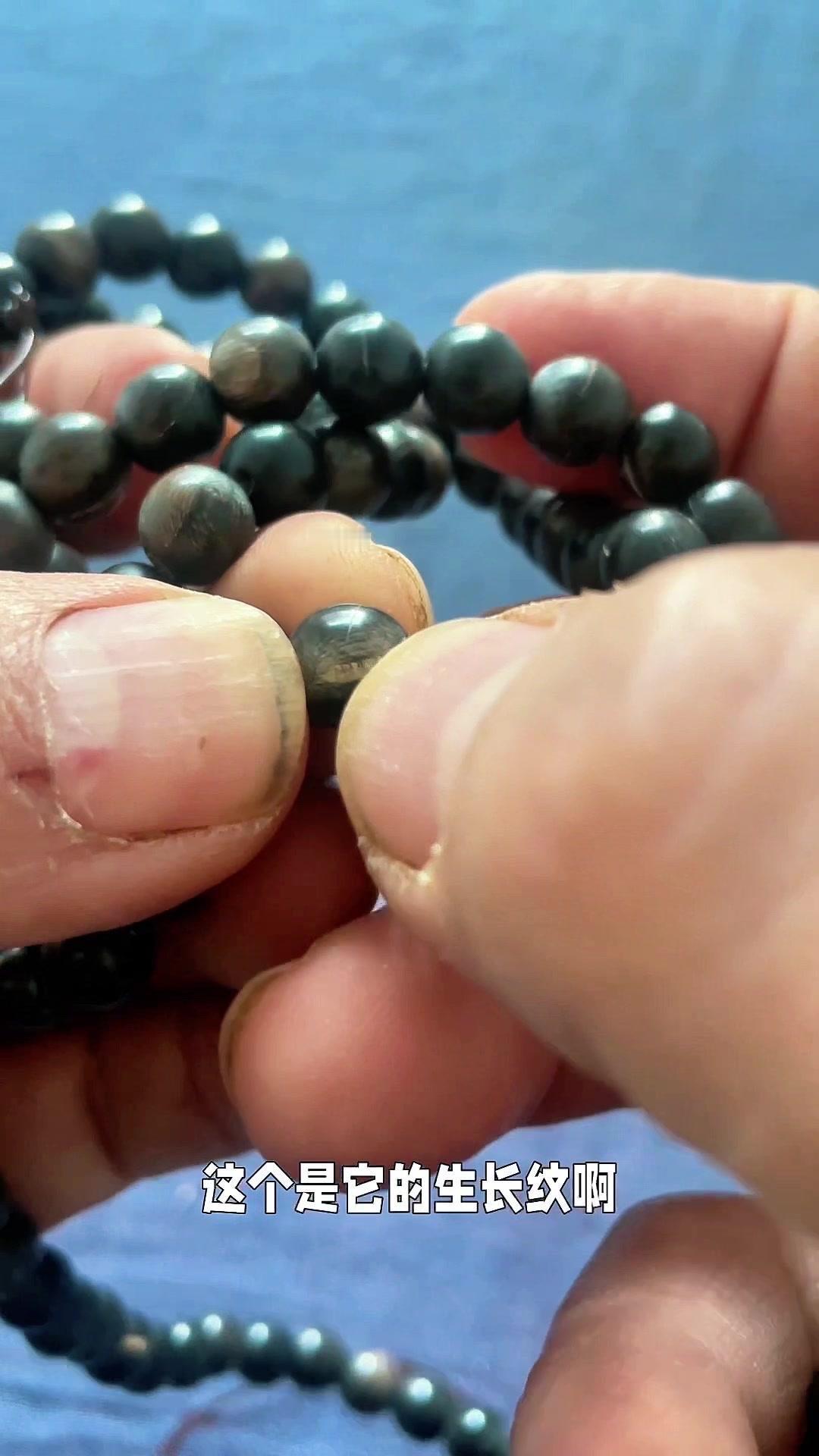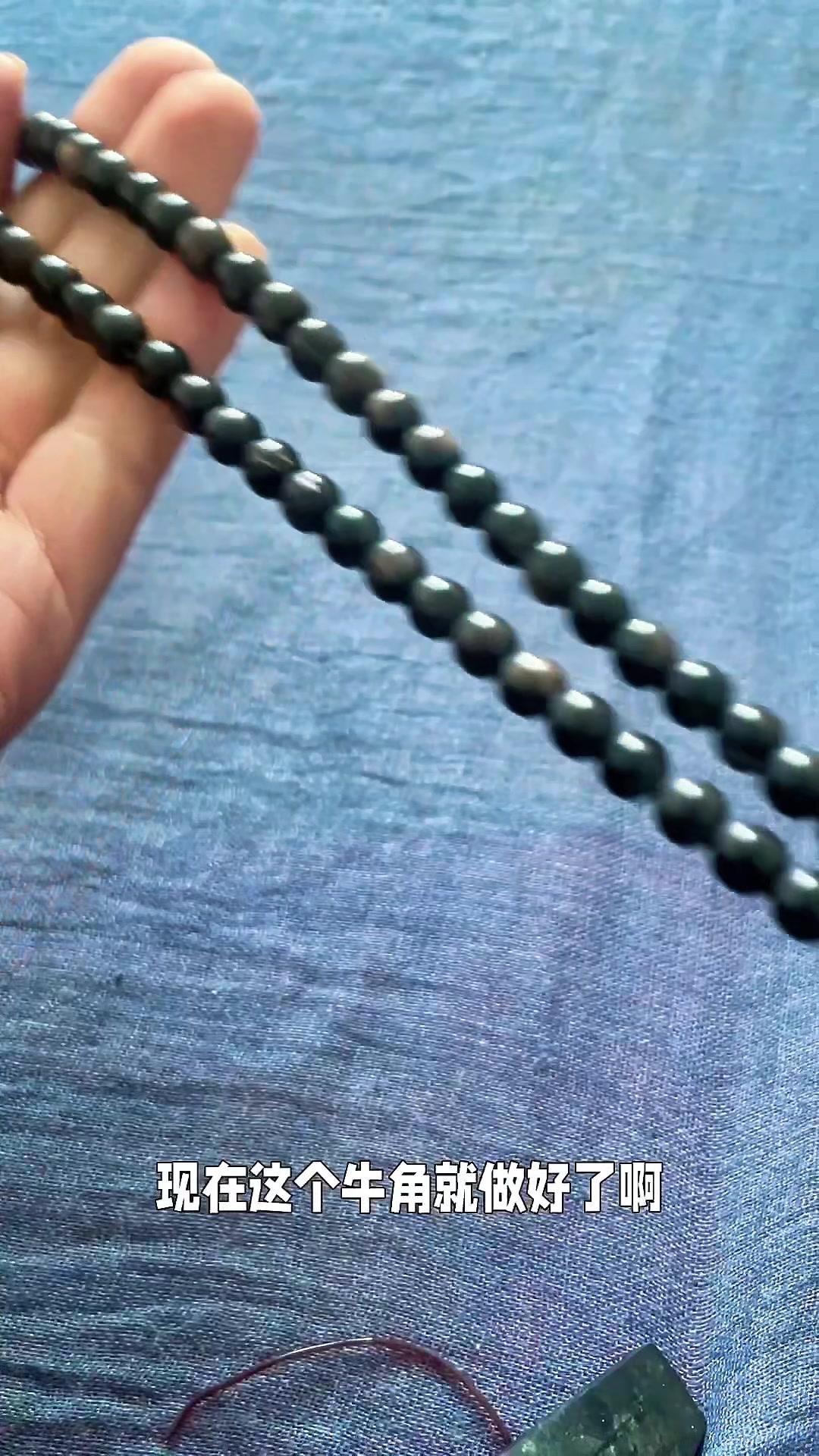 🌿帮山西朋友做0.8cm108颗水牛角手串,从切料到抛光,每一步都很费功夫。 先看这天然生长纹,一圈圈像树木年轮,这才是真牛角该有的样子。要是买到完全没纹路的,就得小心了,天然的东西总会带点纹路,比如这种指甲纹,每颗珠子上都有,这可是鉴定的小技巧。 磨珠子时一颗一颗来,抛光后质感特别好,摸起来又硬又光滑。穿线也费劲,108颗珠子串起来,戴手上能绕四圈,手小的能绕五圈,越戴越亮。 最惊喜的是它不怕水,日常戴着很省心。喜欢什么材质的珠子,评论区告诉我呀~
