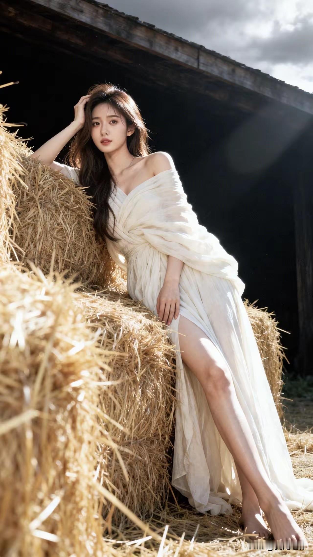 光之影 “田园少女,置身稻草堆,自然光下尽显温柔”🌾💕