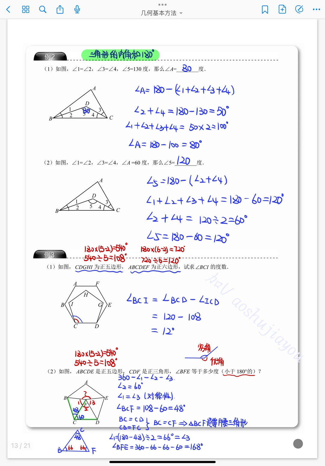 正多边形常用分割方法 小学奥数 课堂笔记