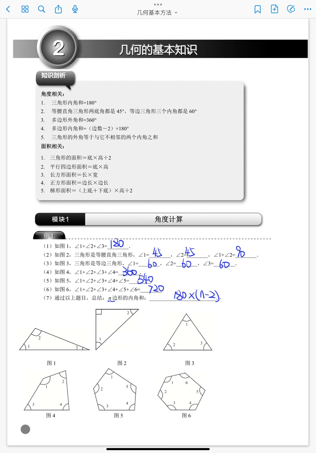 《几何基本知识》小学奥数总复习课堂笔记