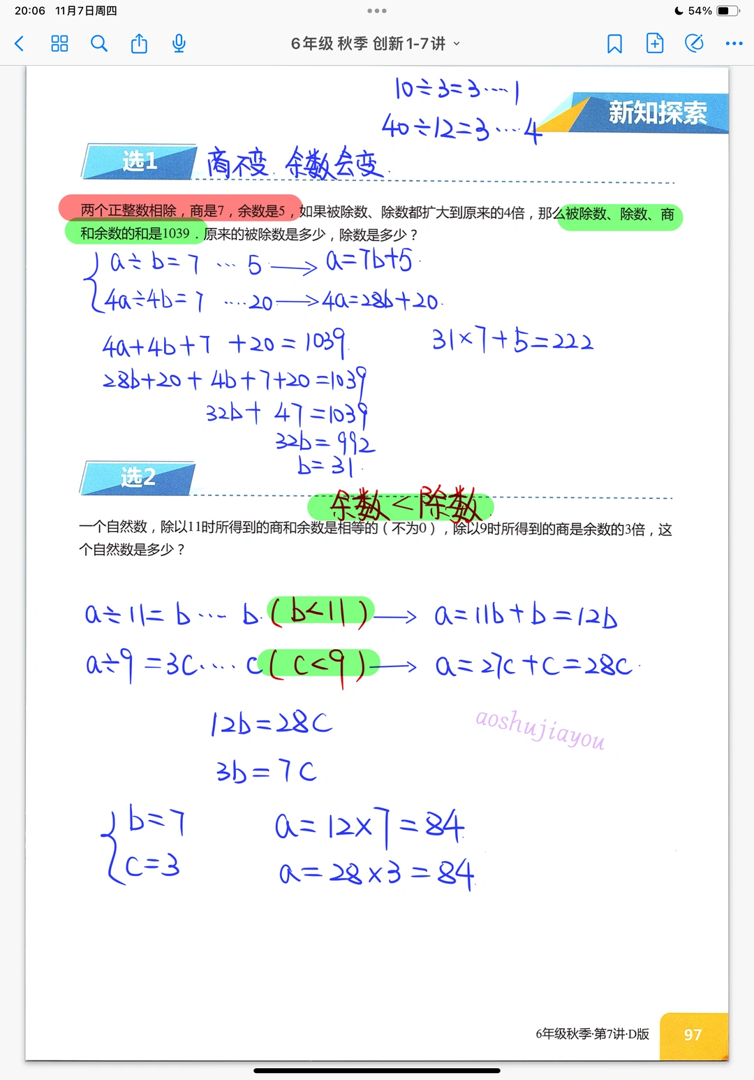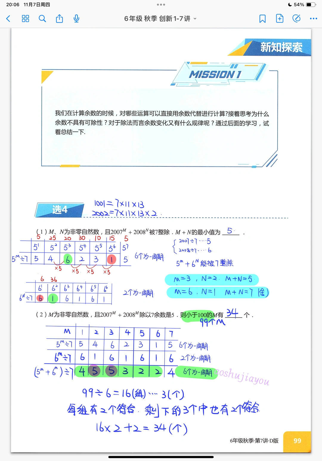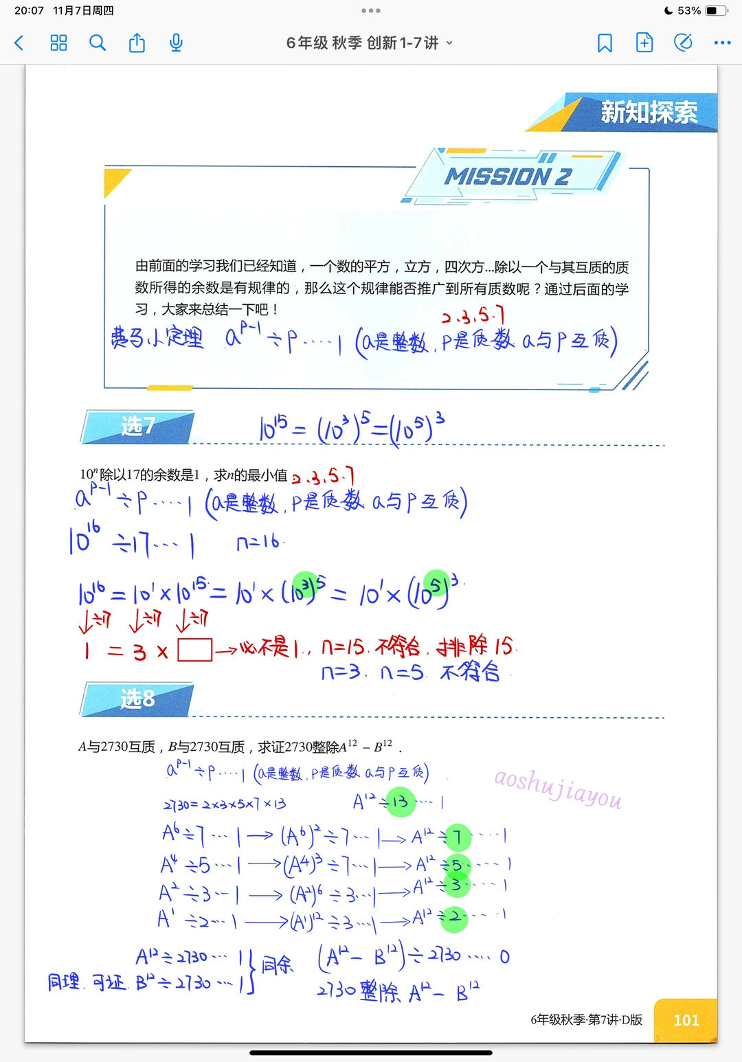 《余数问题》六年级奥数课堂笔记创新班