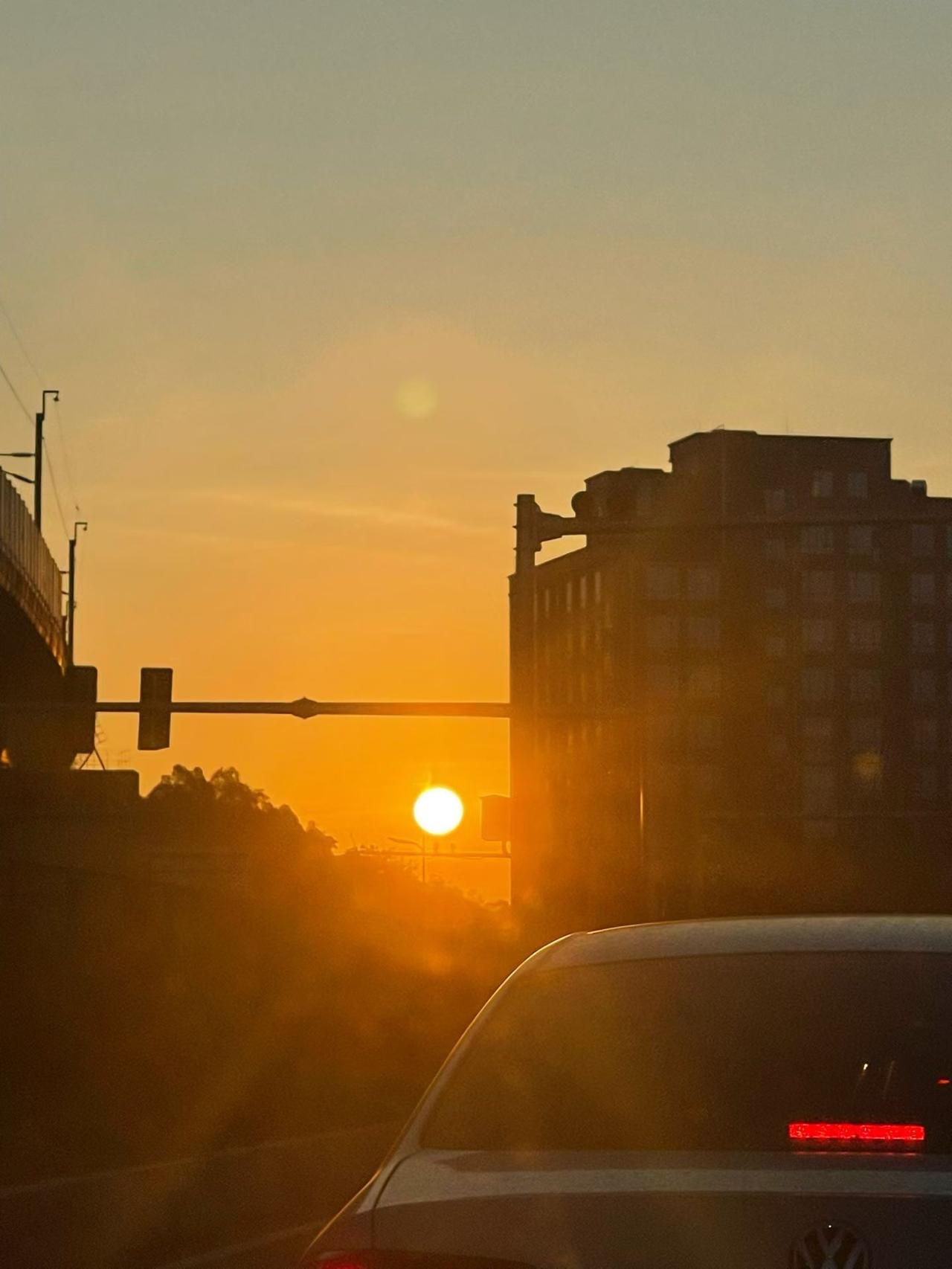 冬日一缕阳光,染红了天边,温暖了我们。 上班路上被冬日的这缕阳光追着跑,连堵车都成了温柔的插曲。 赶路的路上,从不缺乏风景,只是我们没有留意。原来风景从不在别处,而是一直陪伴着我们,冬日街头的一束光,就足够惊艳日常。