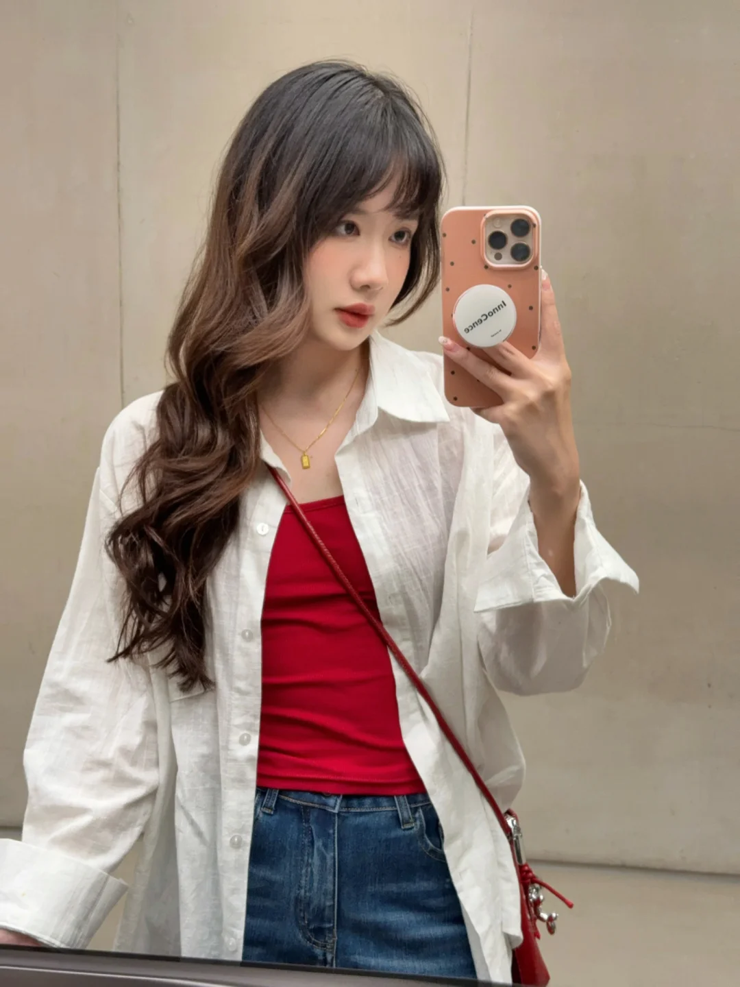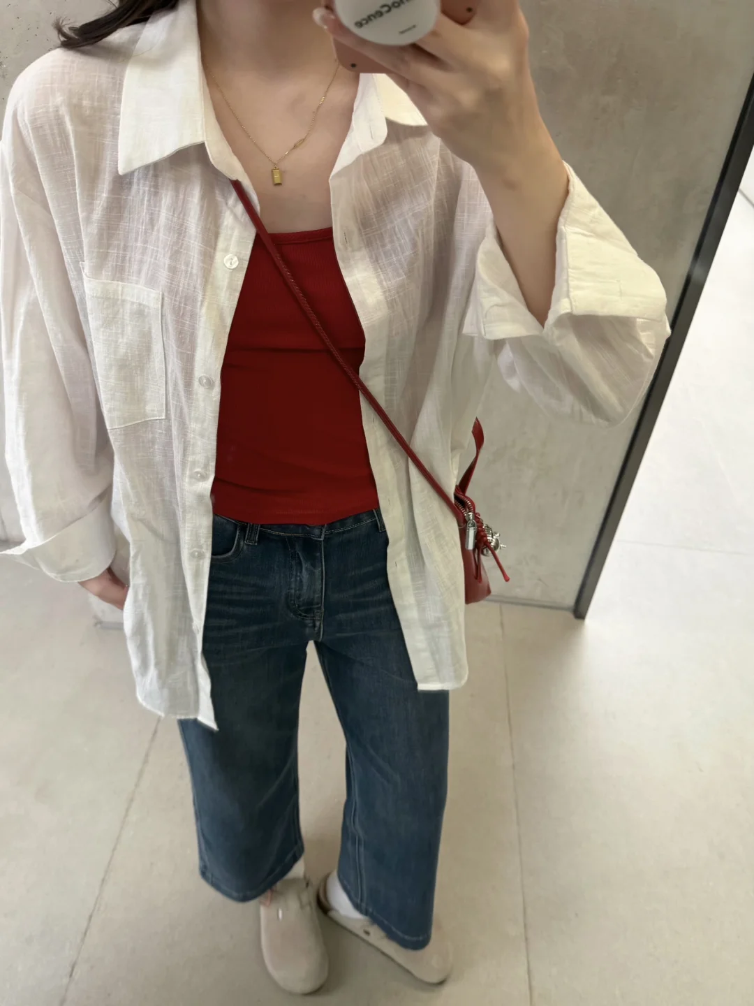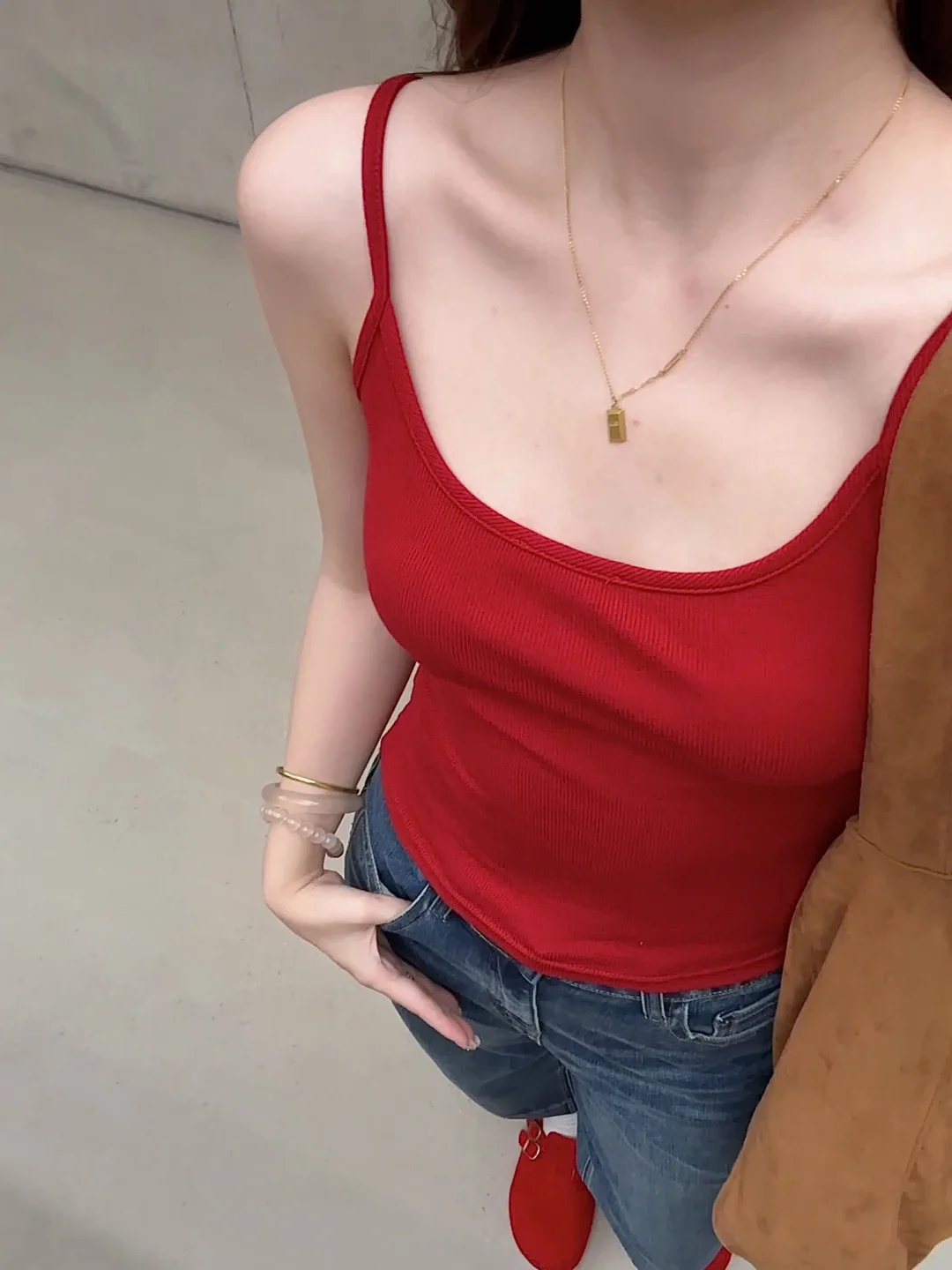 168/106左右 虽然我偶尔是极繁主义 配饰提升整体氛围感 但是对于大部分人来说配饰还是太麻烦 这套其实就很日常但是又很亮眼 上班通勤或者出去玩穿都很合适 不化妆穿 也是可以的 不费力的松弛感~ 而且!!九分裤 也不会担心拖地弄脏裤腿 不喜欢那么扎眼可以换成白色灰色的吊带 只是个人觉得红色比较出彩显白一些~ 反正这套的搭配思路就是很简单 白衬衫➕牛仔裤➕吊带➕勃肯鞋/德训鞋 上班东西多可以背大容量托特包 衬衫也可以换成牛仔衬衫或者黑色卡其色的外套 皮衣西装也是可以的~很百搭
