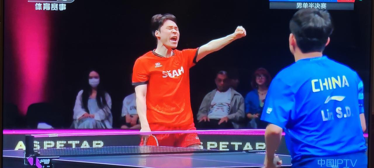 林诗栋2:4在半决赛中被张禹珍淘汰,至此国乒男队无一人进入决赛! 虽然林诗栋赢了首局,但是在张禹珍的搏杀下,林诗栋办法不多,被对手连扳三局。尽管林诗栋赢了第五局,但是张禹珍士气没降,反而十分高涨,每赢一球必振臂高喊一声,这动作这喊声,连张本智和都忘尘莫及。林诗栋反而士气严重受挫,第六局竟然被对手打了个0:8的开局,最终以3:11的比分落败。 几天没有刮胡子的王皓指导,也是眉头紧锁、嘴唇颤抖,心里十分难受:无可奈何花落去!