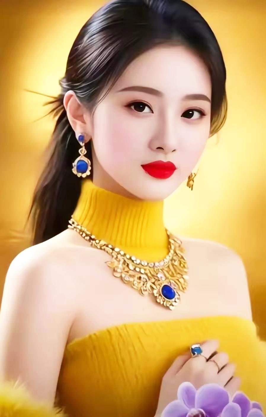 优雅气质,黄色礼服搭配蓝宝石项链,惊艳全场!💎✨