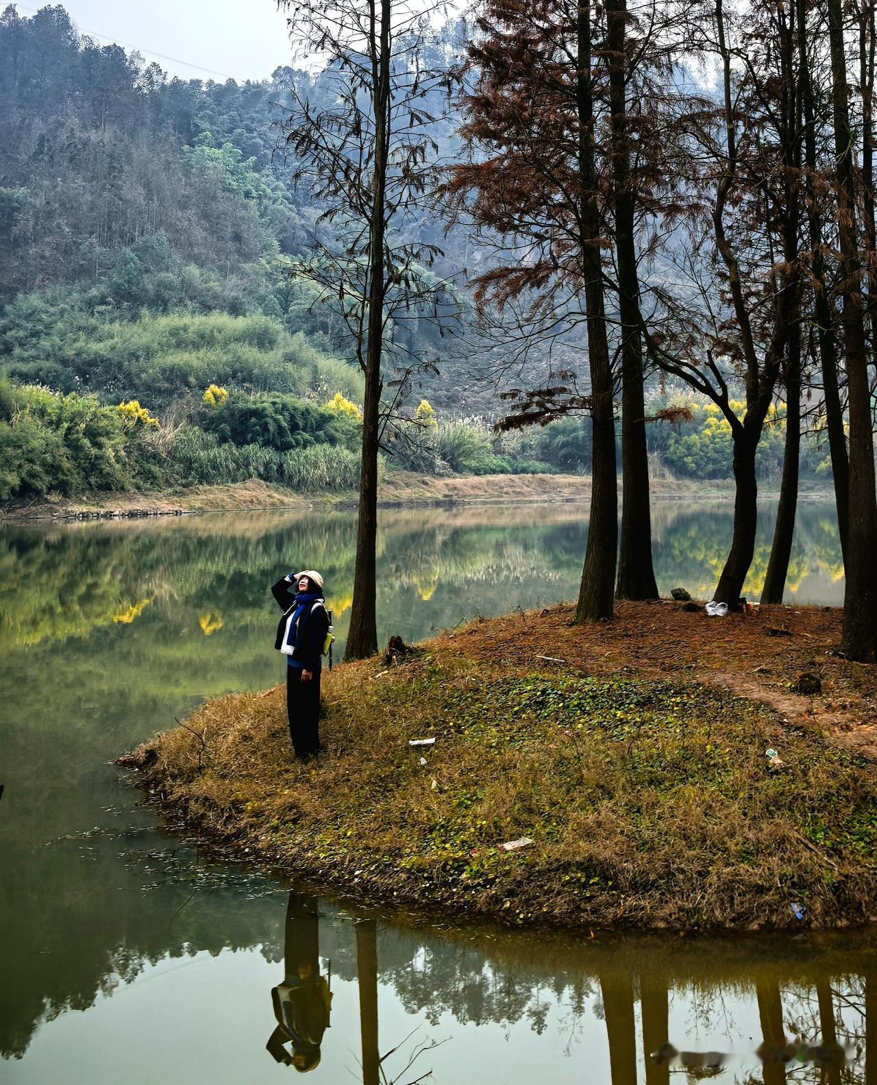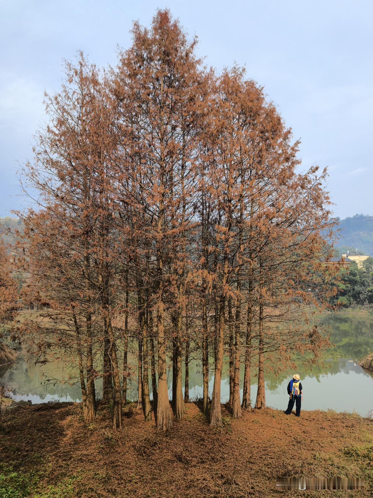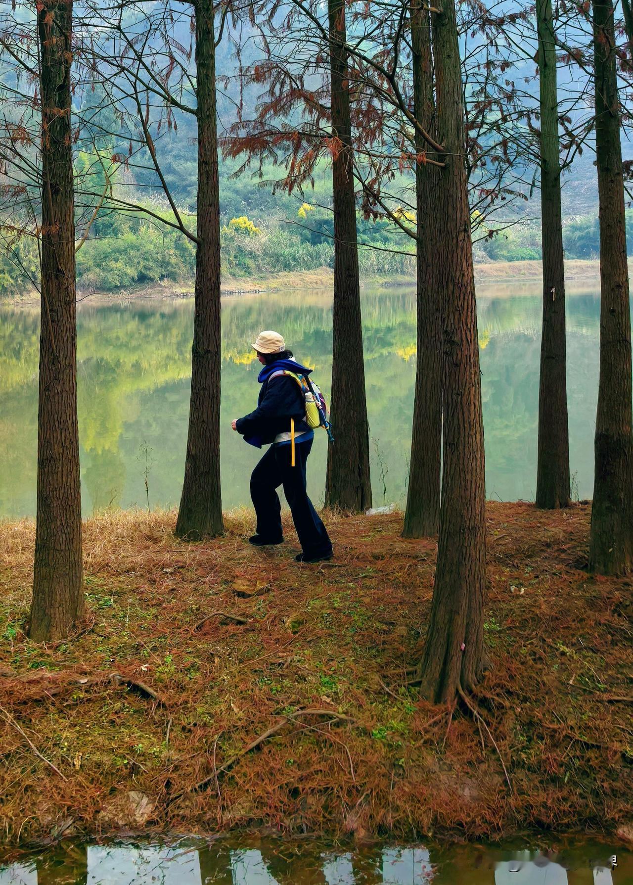 那一排排羽杉树整齐地排列在湖边,有的叶子已经染上了醉人的红,像是被天边的晚霞点燃;有的则还残留着些许绿色,在风中轻轻摇曳,仿佛在诉说着岁月的故事。阳光透过枝叶的缝隙洒下,形成一片片斑驳的光影,如同梦幻的画卷。 沿着湖岸前行,有阳光时湖水波光粼粼,与羽杉树相互辉映。偶尔有几只白鹭鸟从湖面掠过,打破了这份宁静,却又增添了几分灵动。一路上,有初识的热爱徒步的伙伴,大家虽来自不同的地方,却因这美丽的风景有了共同的话题,分享着彼此的徒步经历和生活感悟。 当走到青山湖的中心地带时,视野豁然开朗。远处的山峦连绵起伏,与眼前的羽杉林、湖水构成了一幅绝美的山水画卷。我停下脚步,静静地感受着这一切,心中满是对大自然的敬畏和对这趟徒步之旅的感激。这次徒步,不仅是身体的一次锻炼,更是心灵的一次洗礼,让我在2026年的开端就收获了满满的美好。