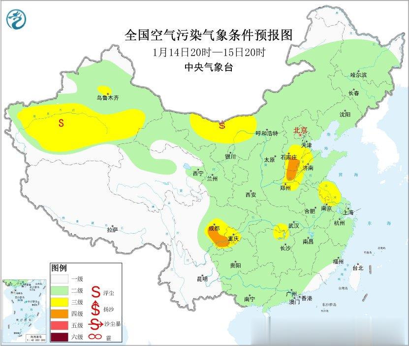 13日至15日,华北中南部、黄淮西部等地的部分地区大气扩散条件略转差,部分地区有轻霾天气,局地有中度霾。此外,未来一周,新疆天山北坡、四川盆地等地的部分地区大气扩散条件较差,有轻至中度霾天气,局地有重度霾。