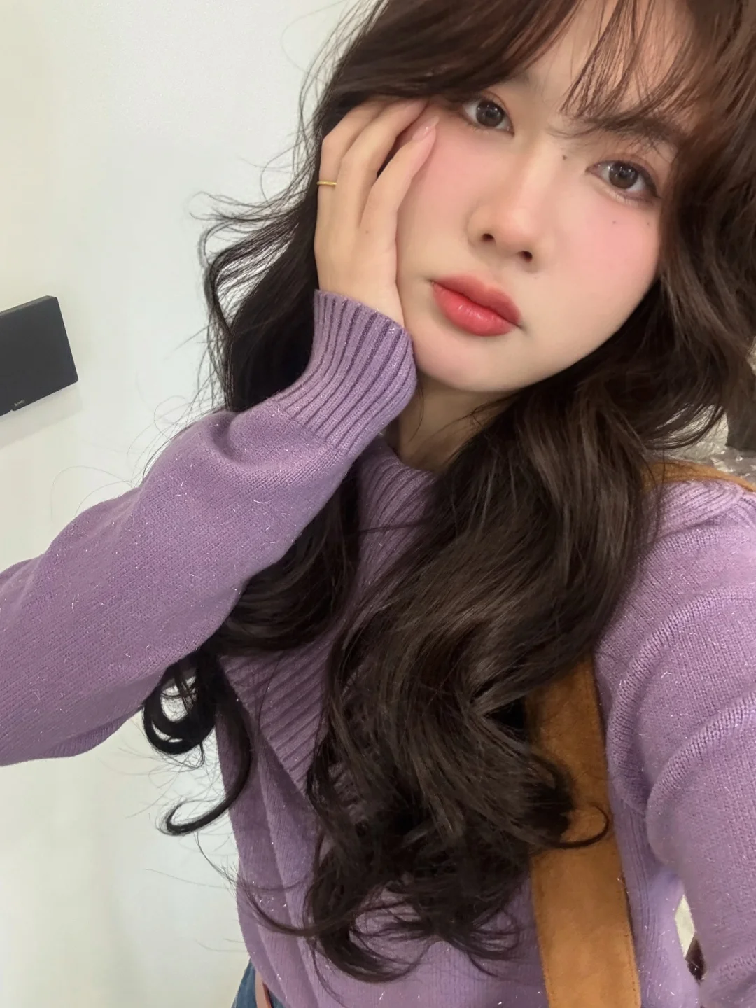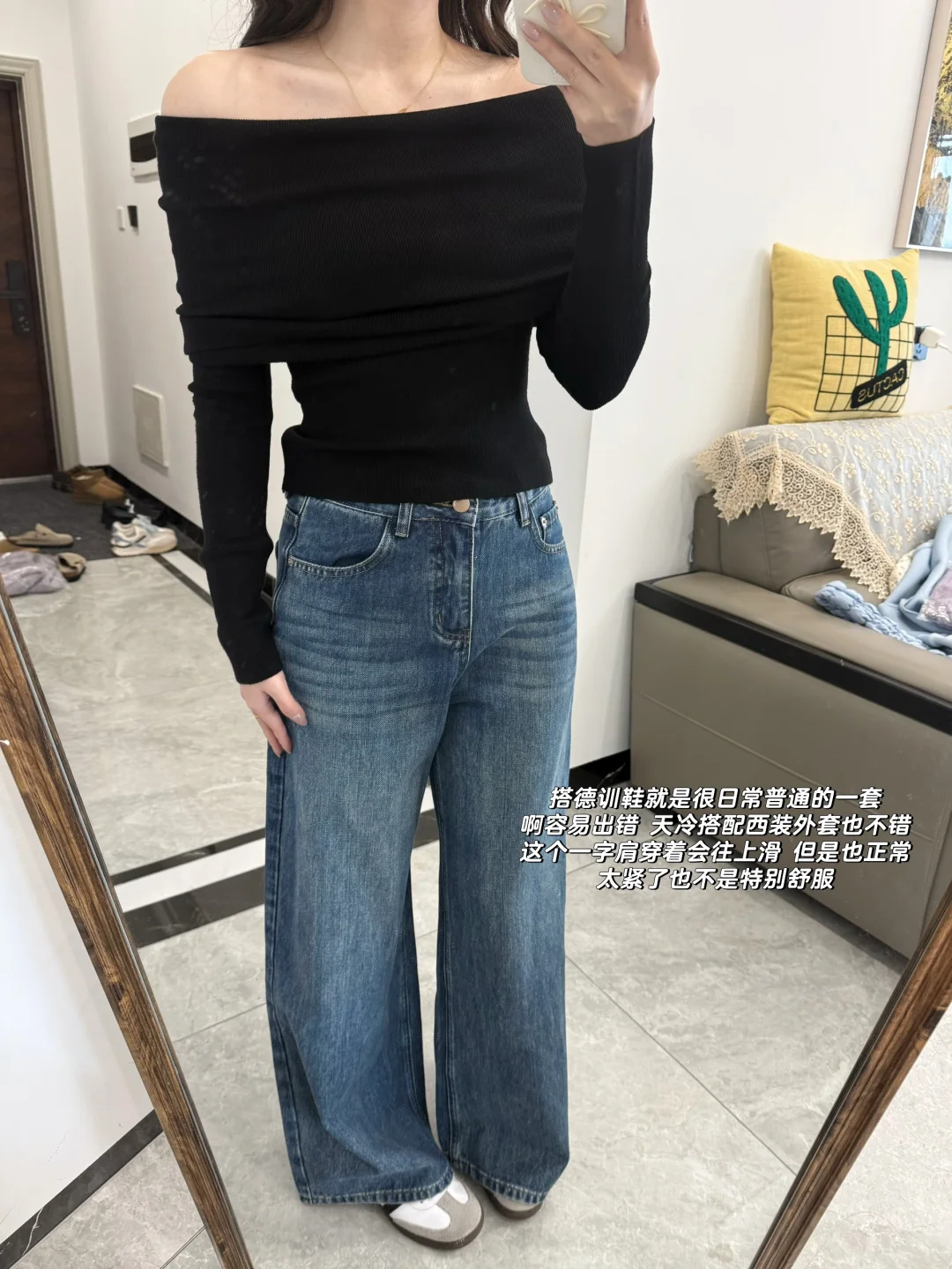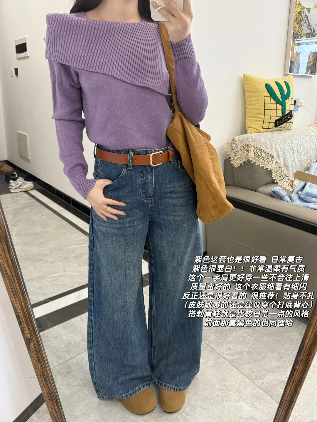 一位长相漂亮、身材出众的姑娘,穿上了一件对身材要求极高的紧身款一字肩粉色针织衫搭