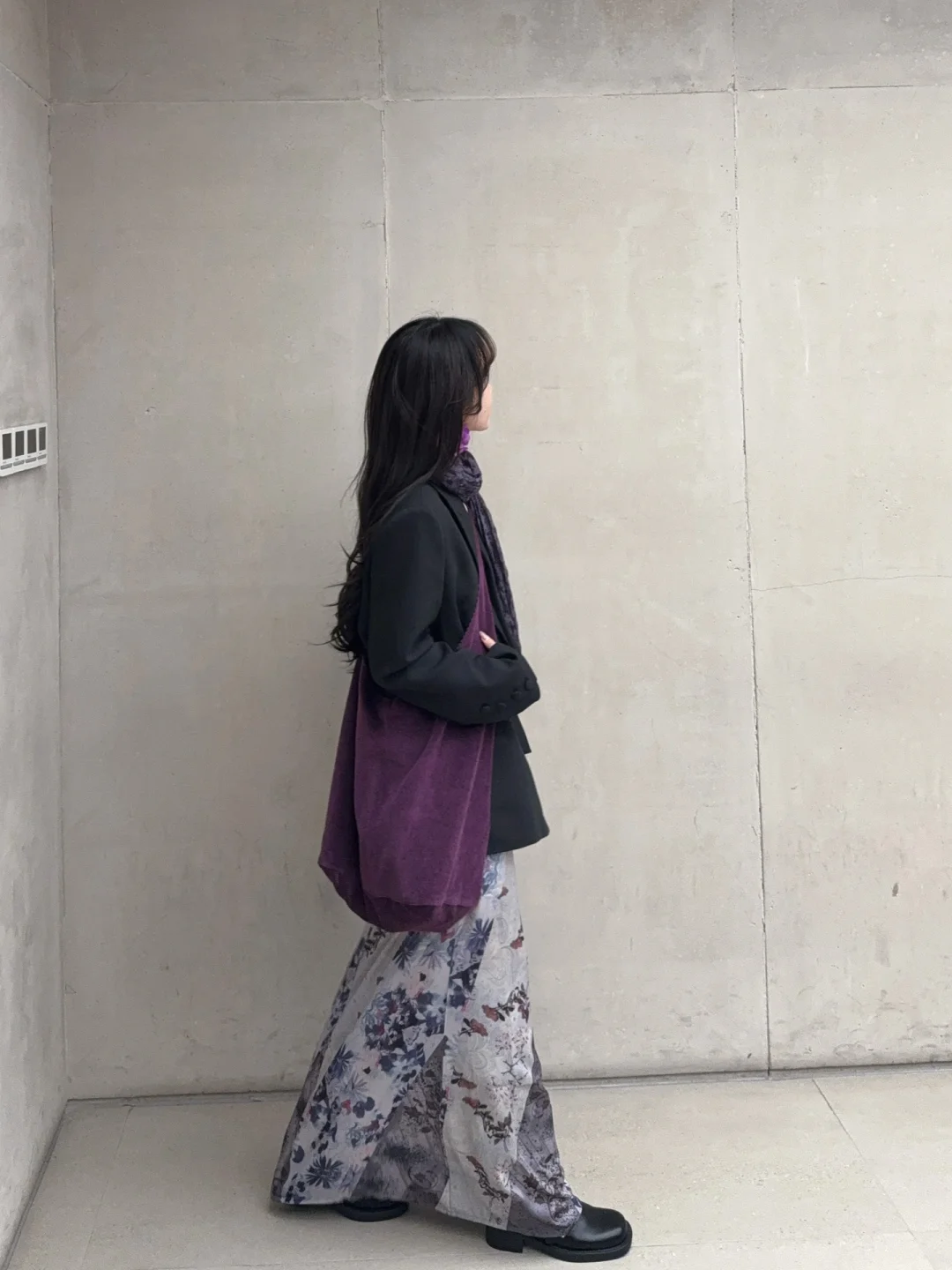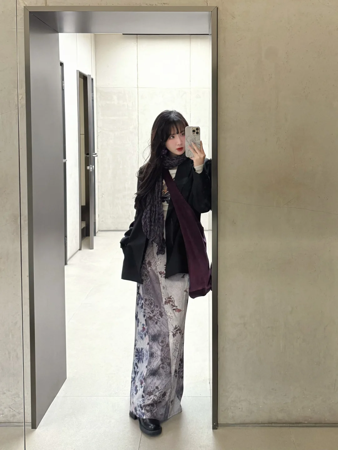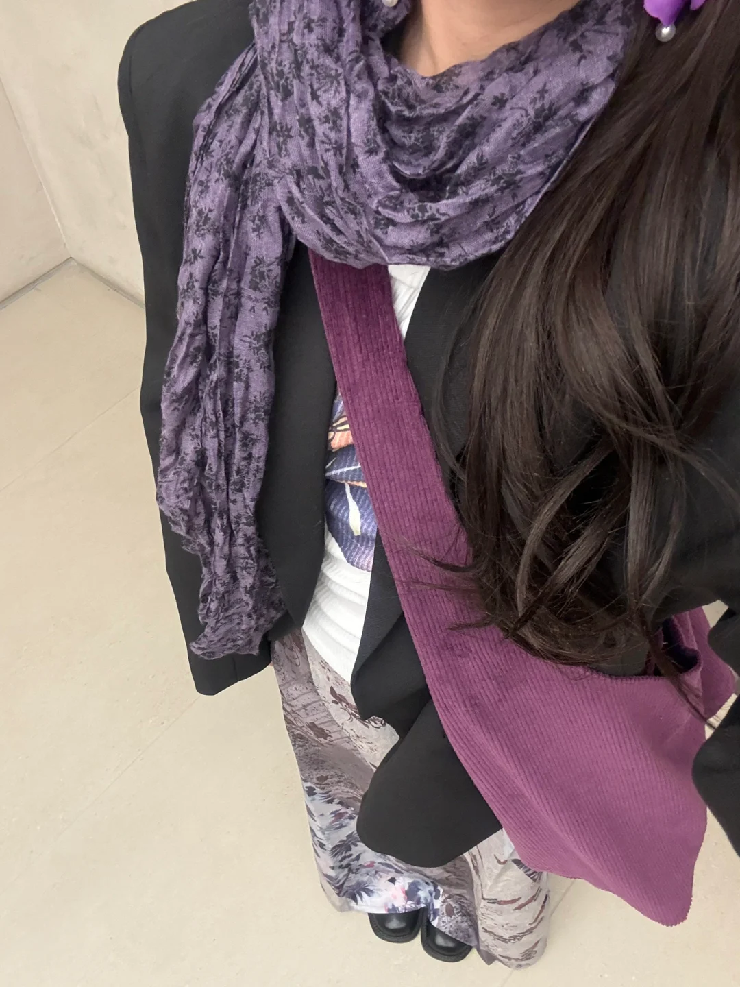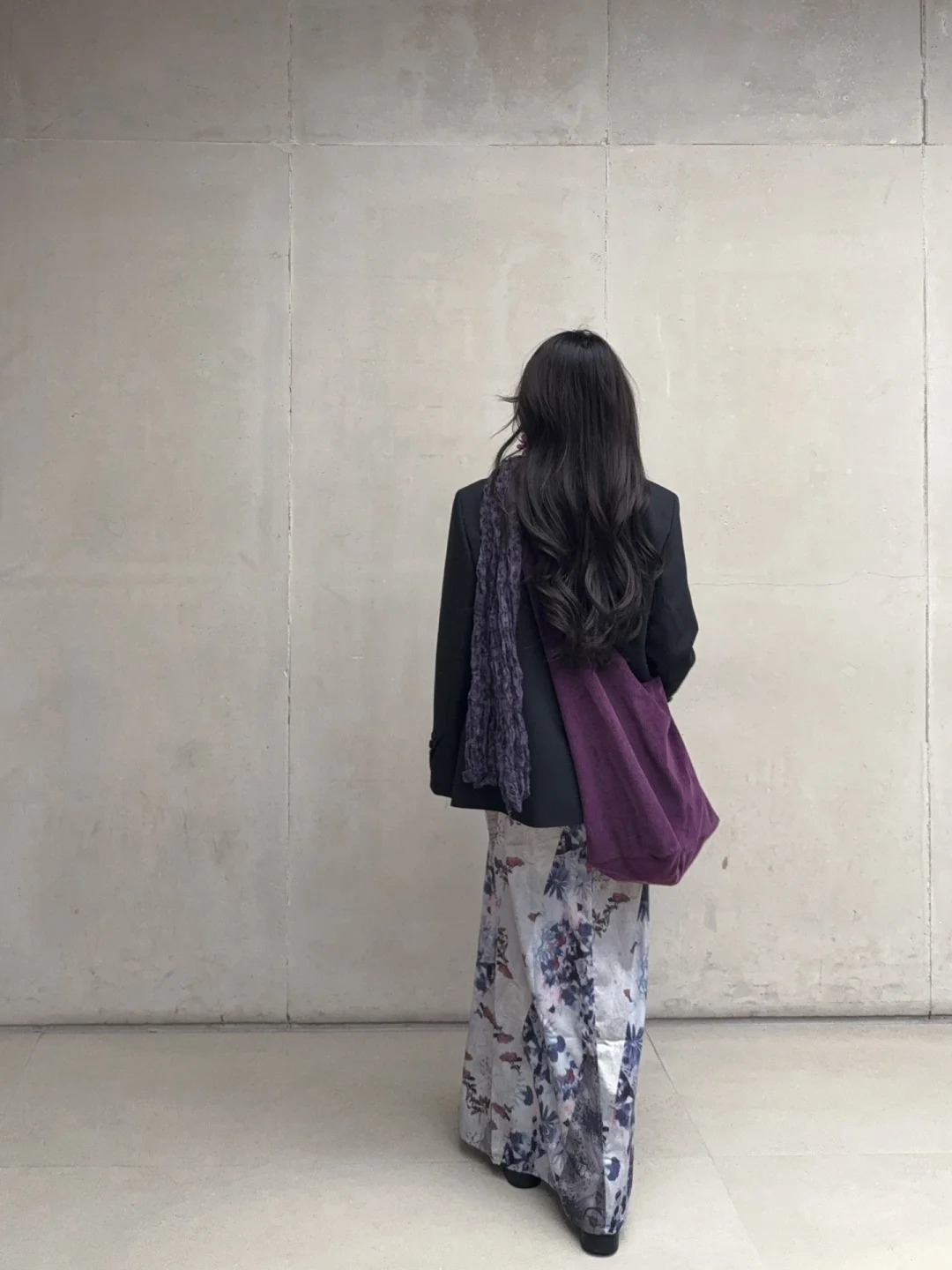 168/106左右 黑色西装的一期新的穿搭思路 紫色系➕艺术系➕风格化穿搭 属于有点调调但不会不日常那种 黑西有无限可能 真的 这件外套我上一期搭配裤子比较多 喜欢裤子的姐妹可以参考上一期~