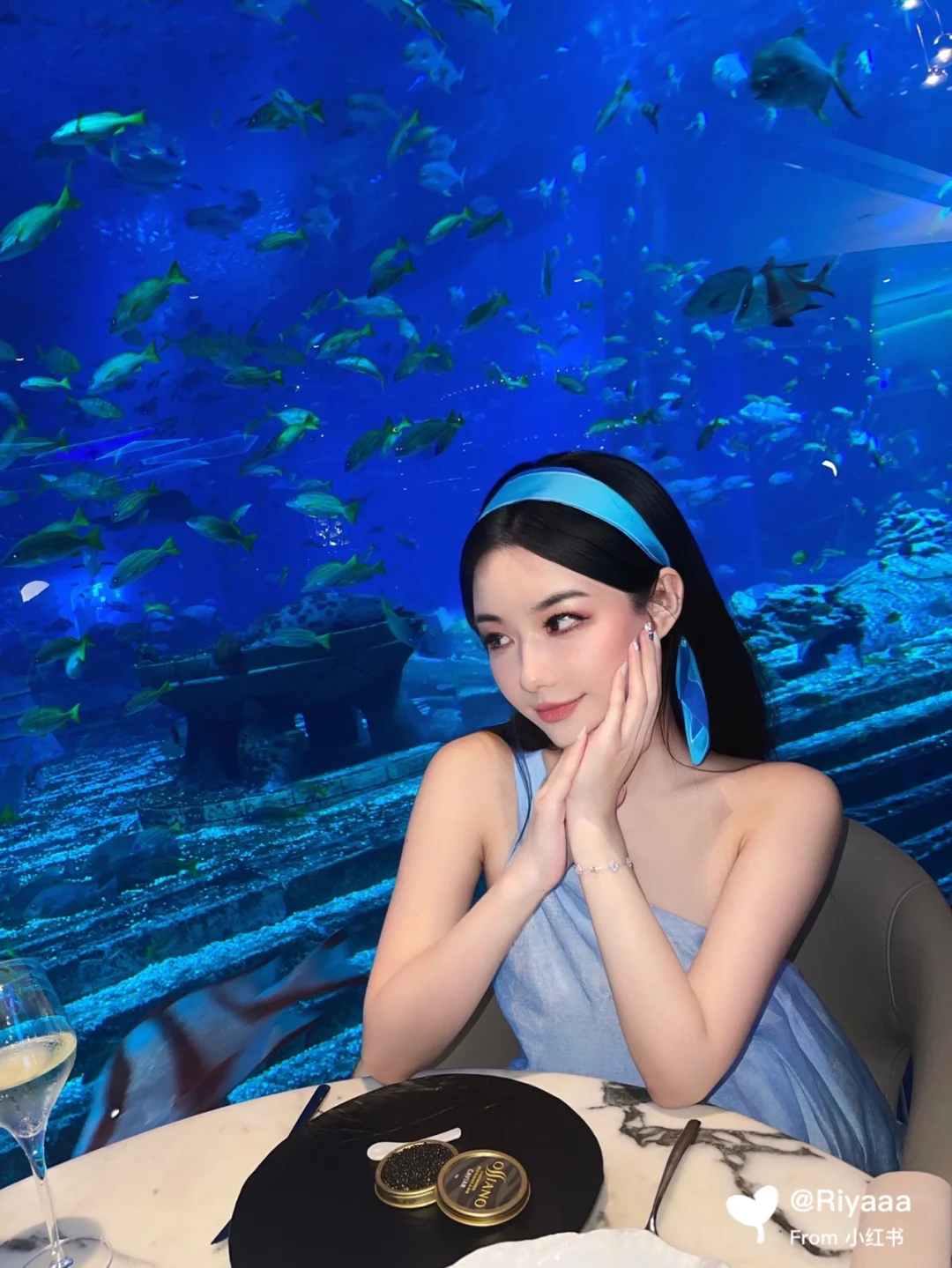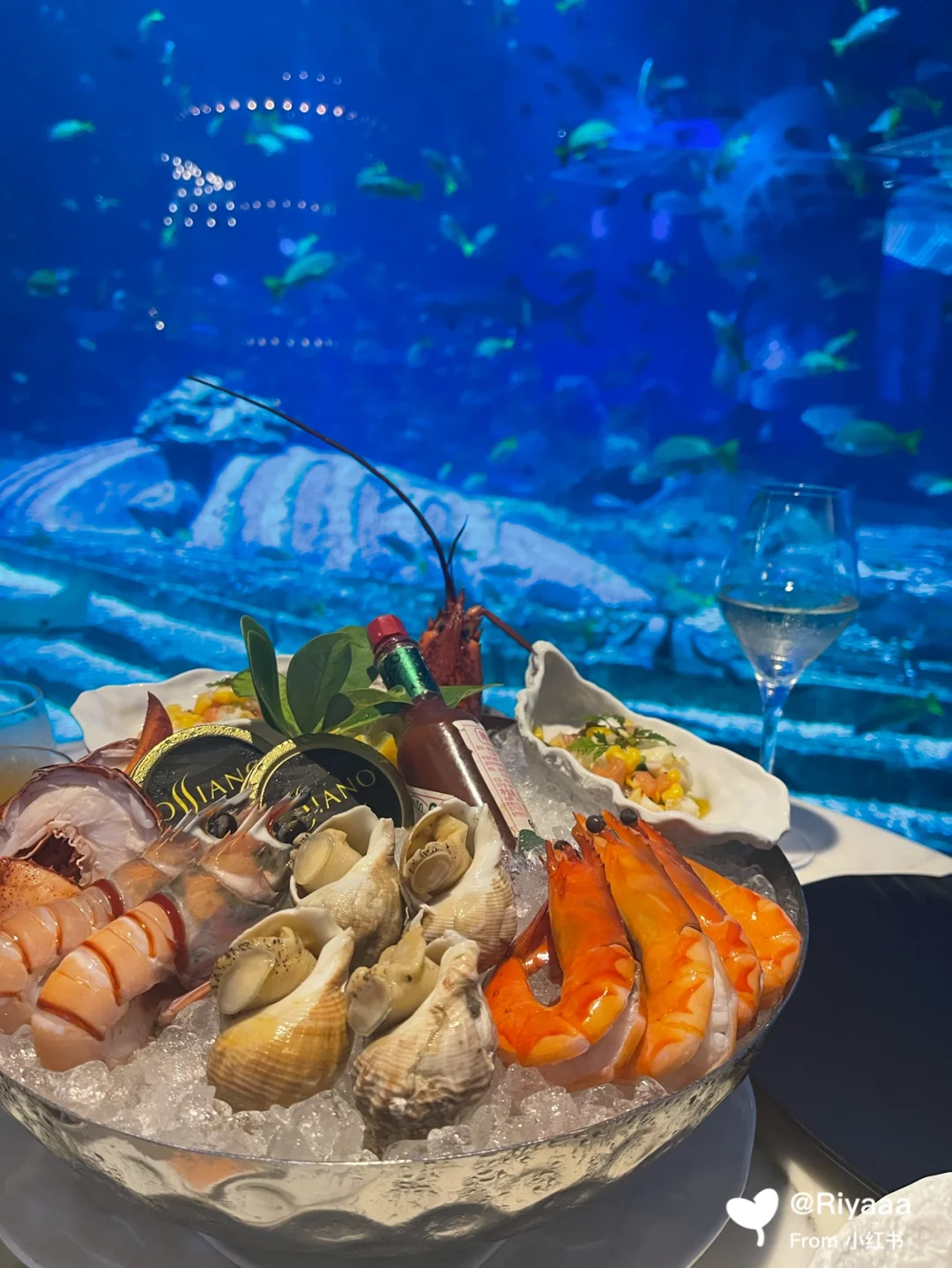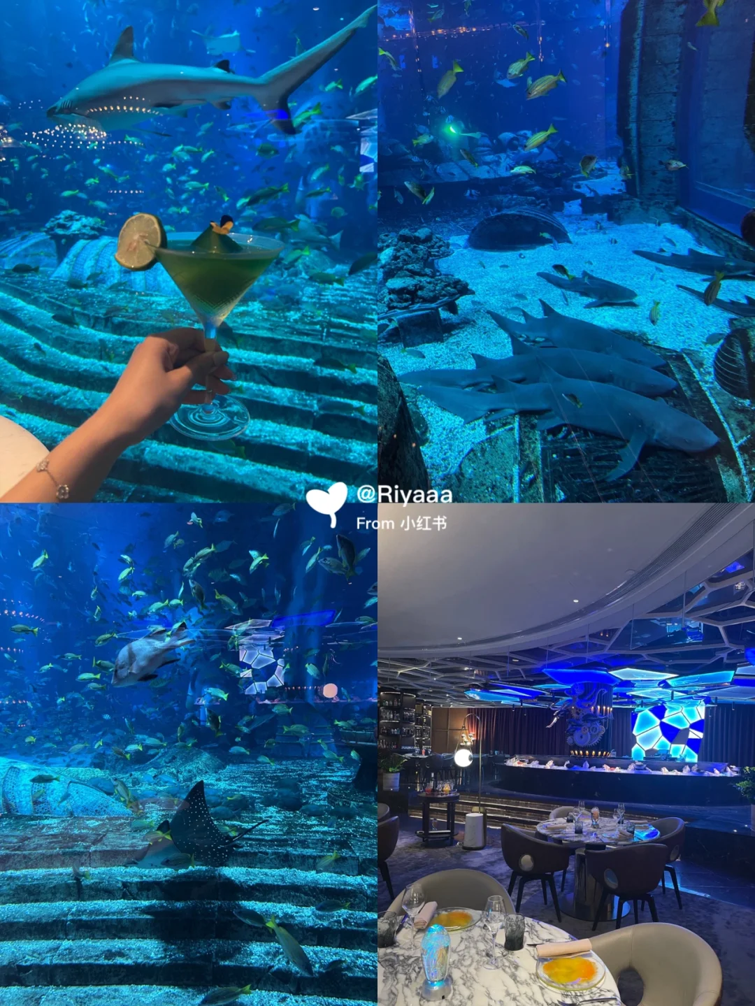 没有入住亚特兰蒂斯酒店海底套房的宝宝们可以来海底餐厅体验一番在水族馆用餐的感觉