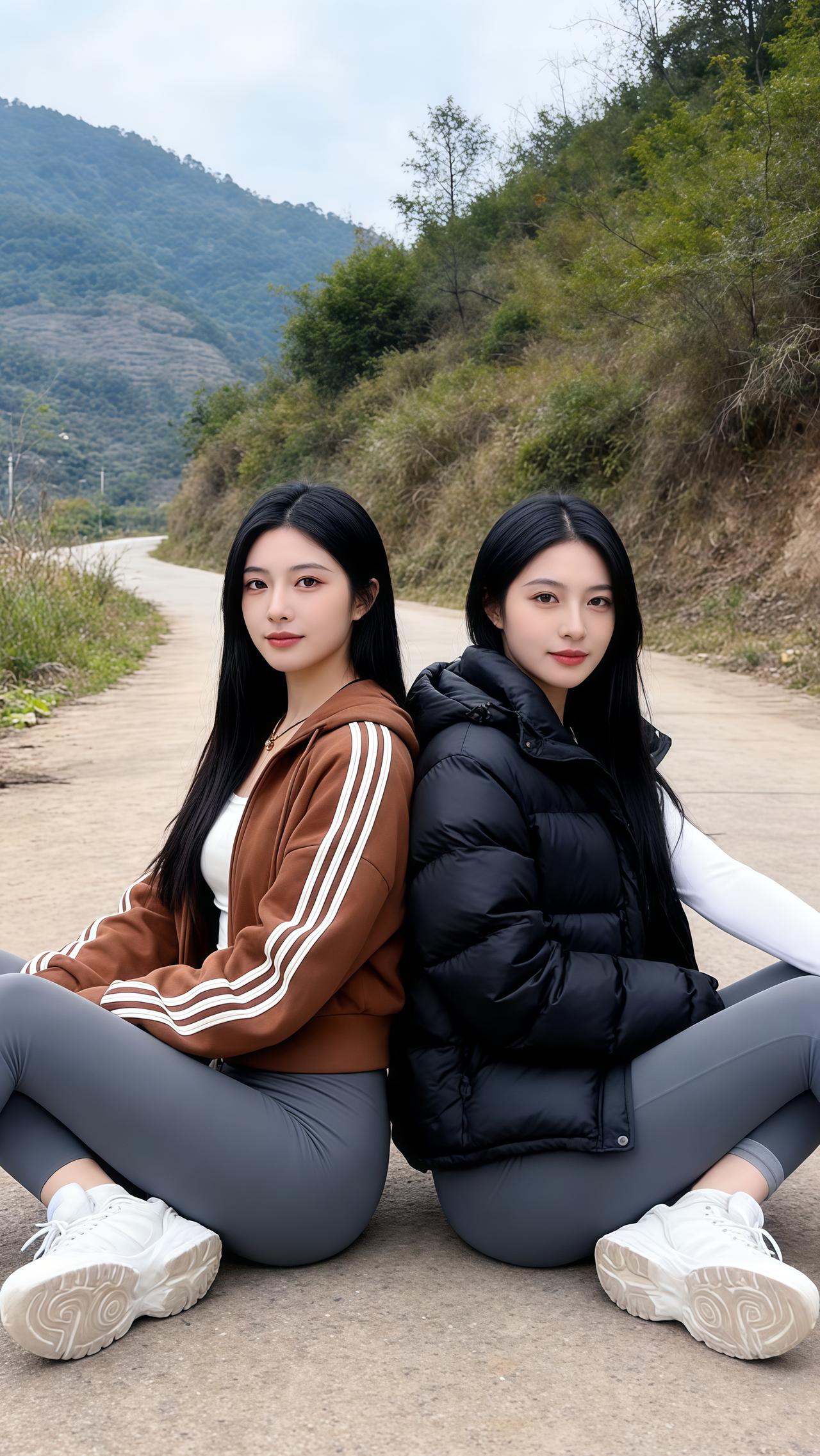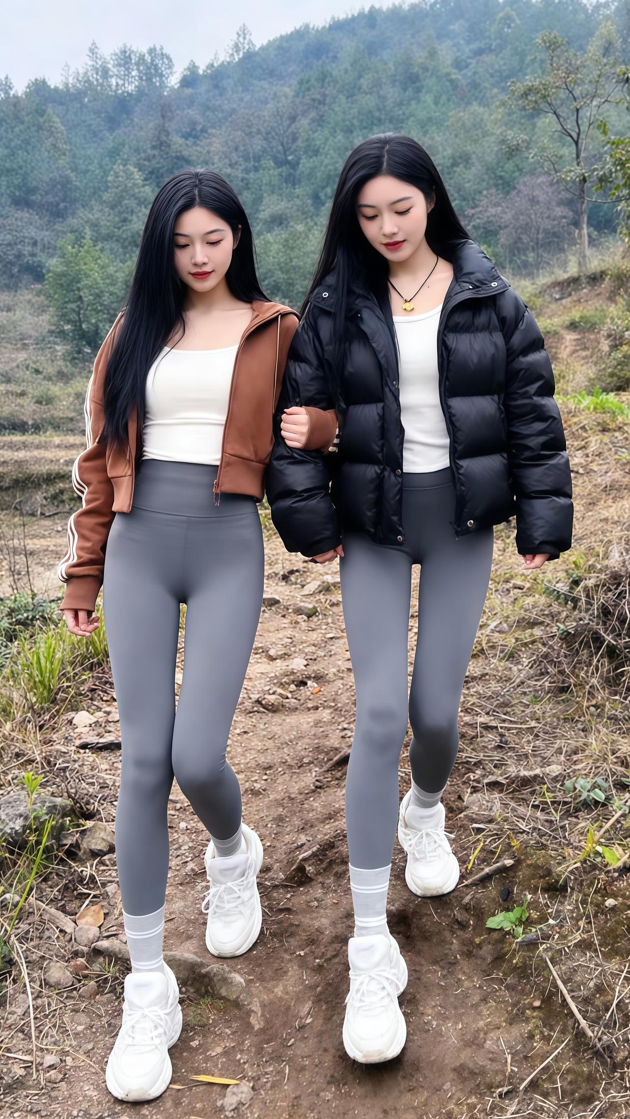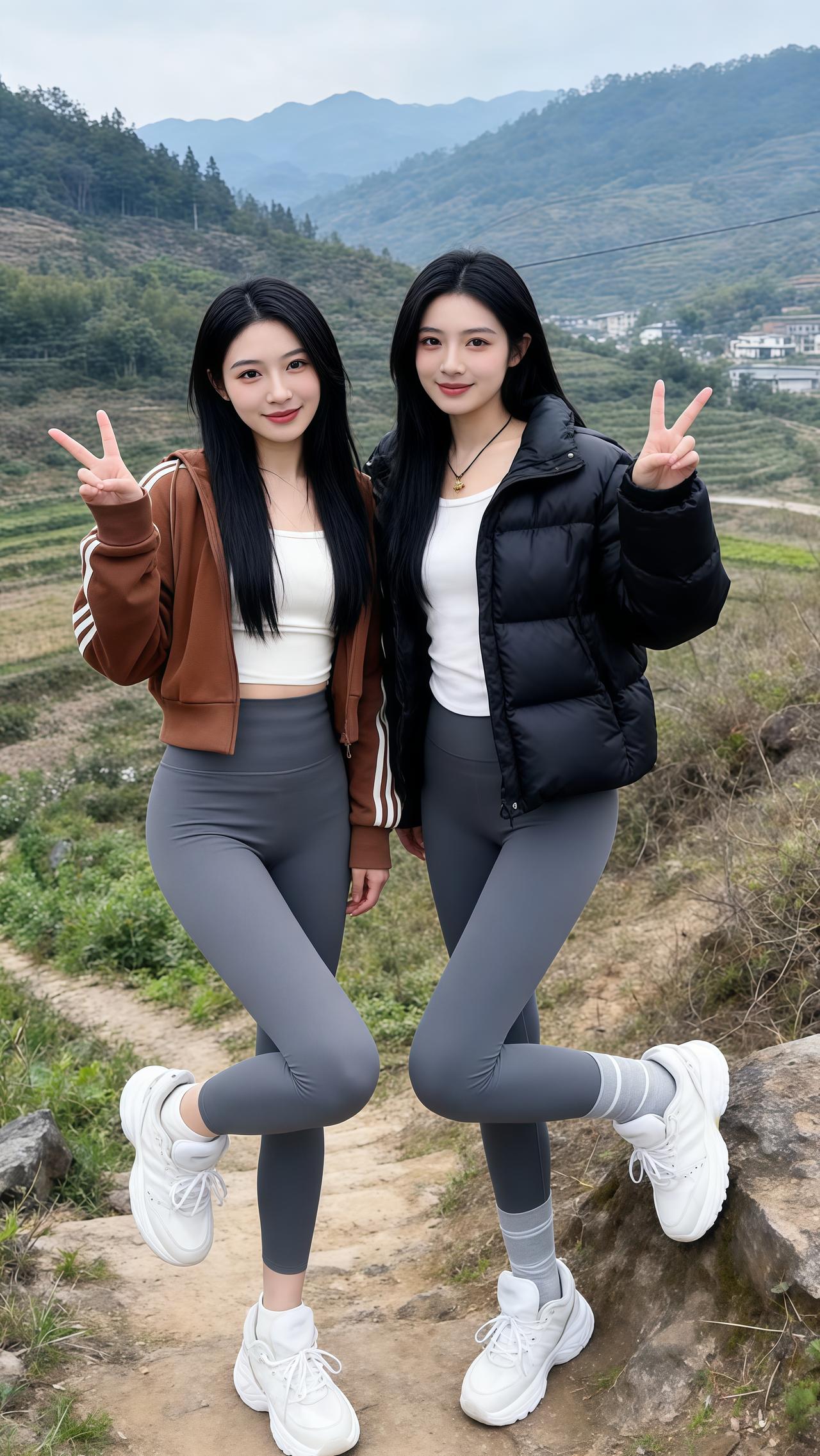 姐妹俩漫步山间小路,享受大自然的美好时光。