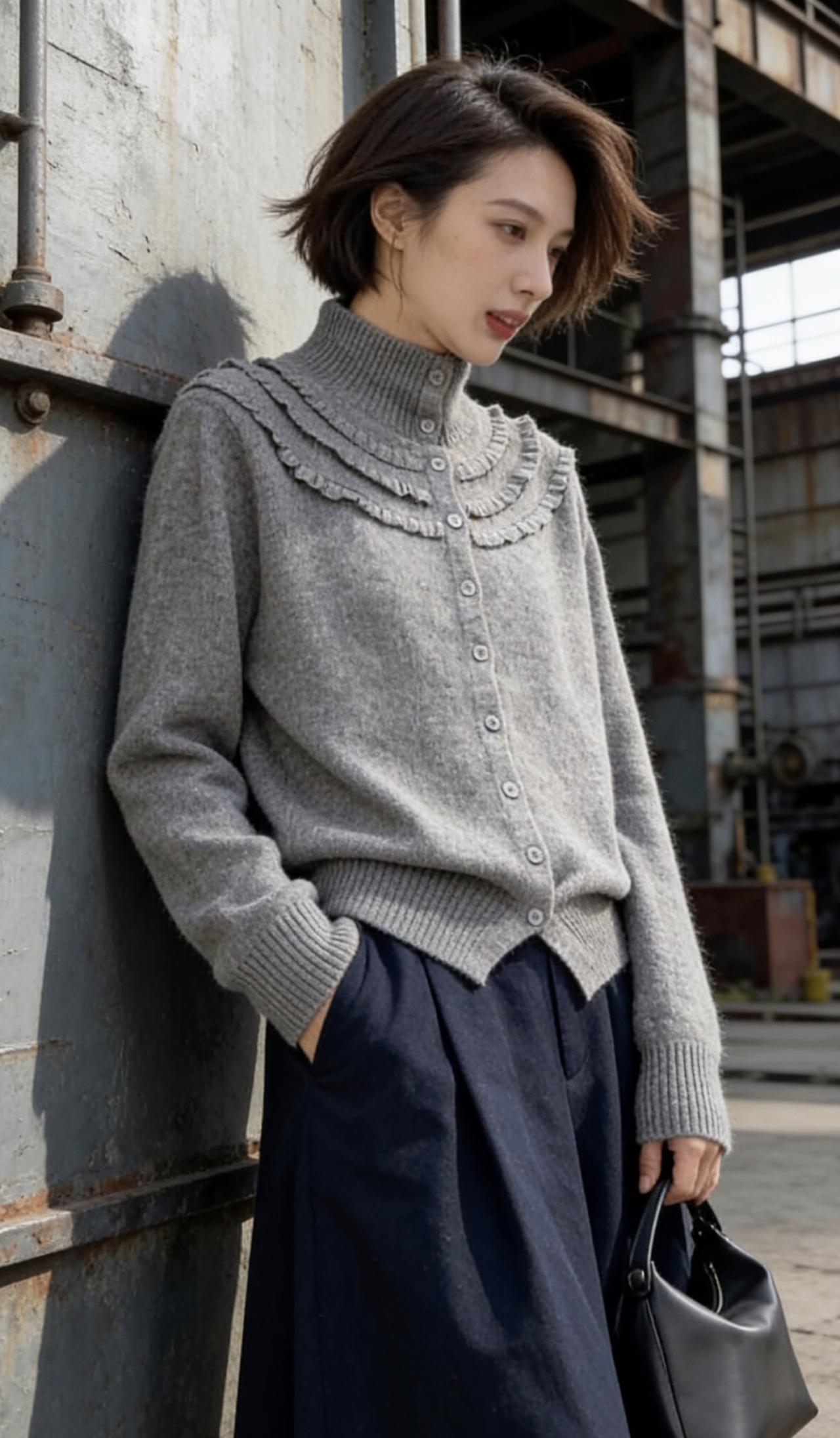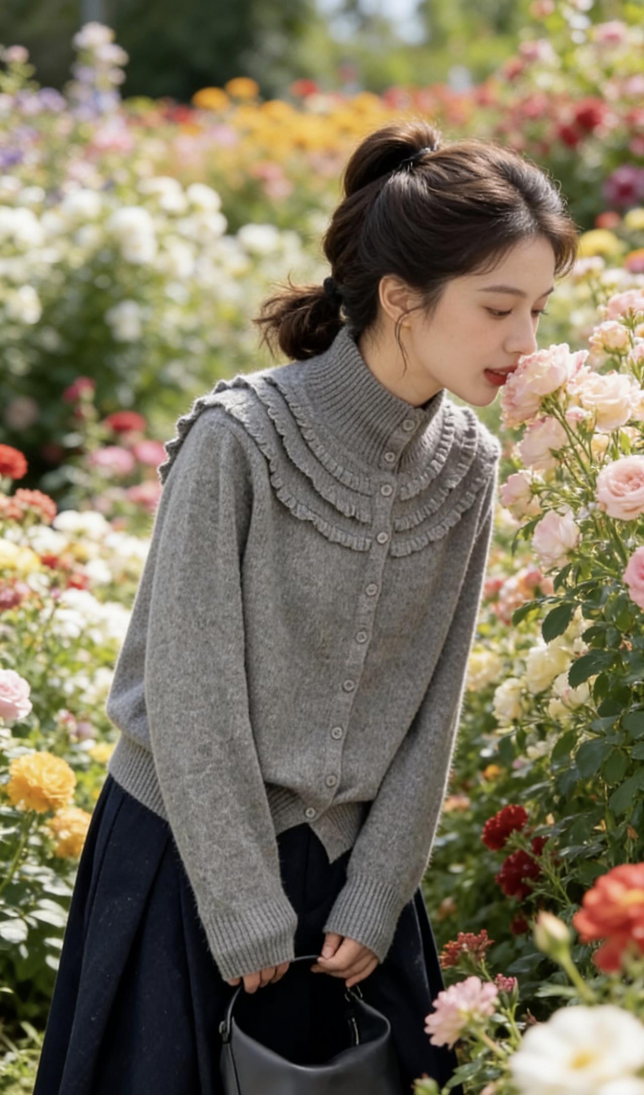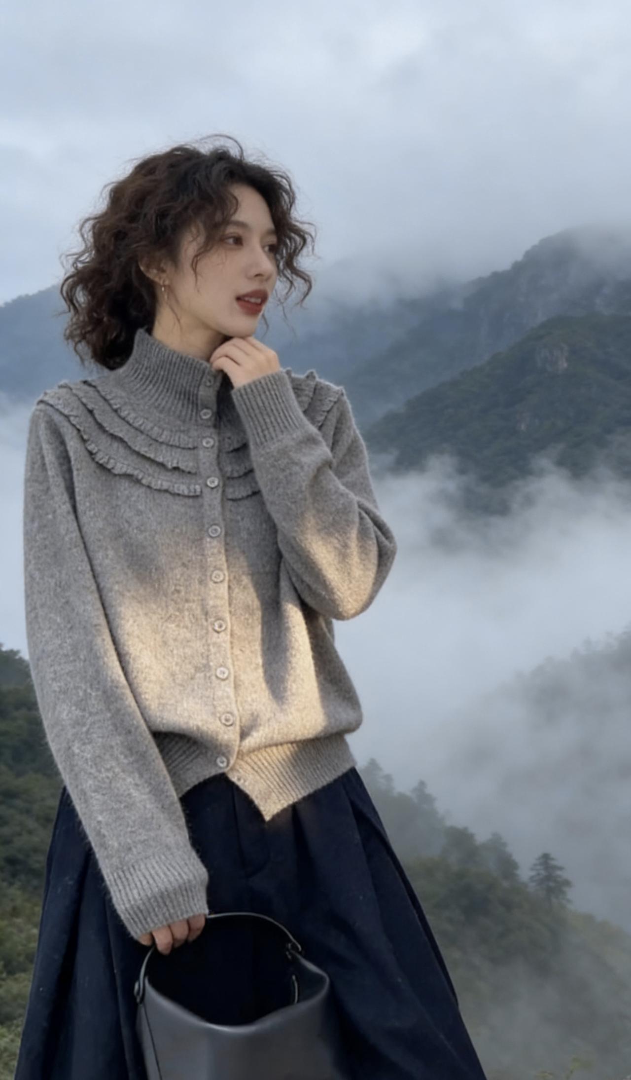 秋林里的粉系甜妹太戳啦淡粉高领针织搭浅棕短裙,温柔得像裹了层糖霜~比耶的小