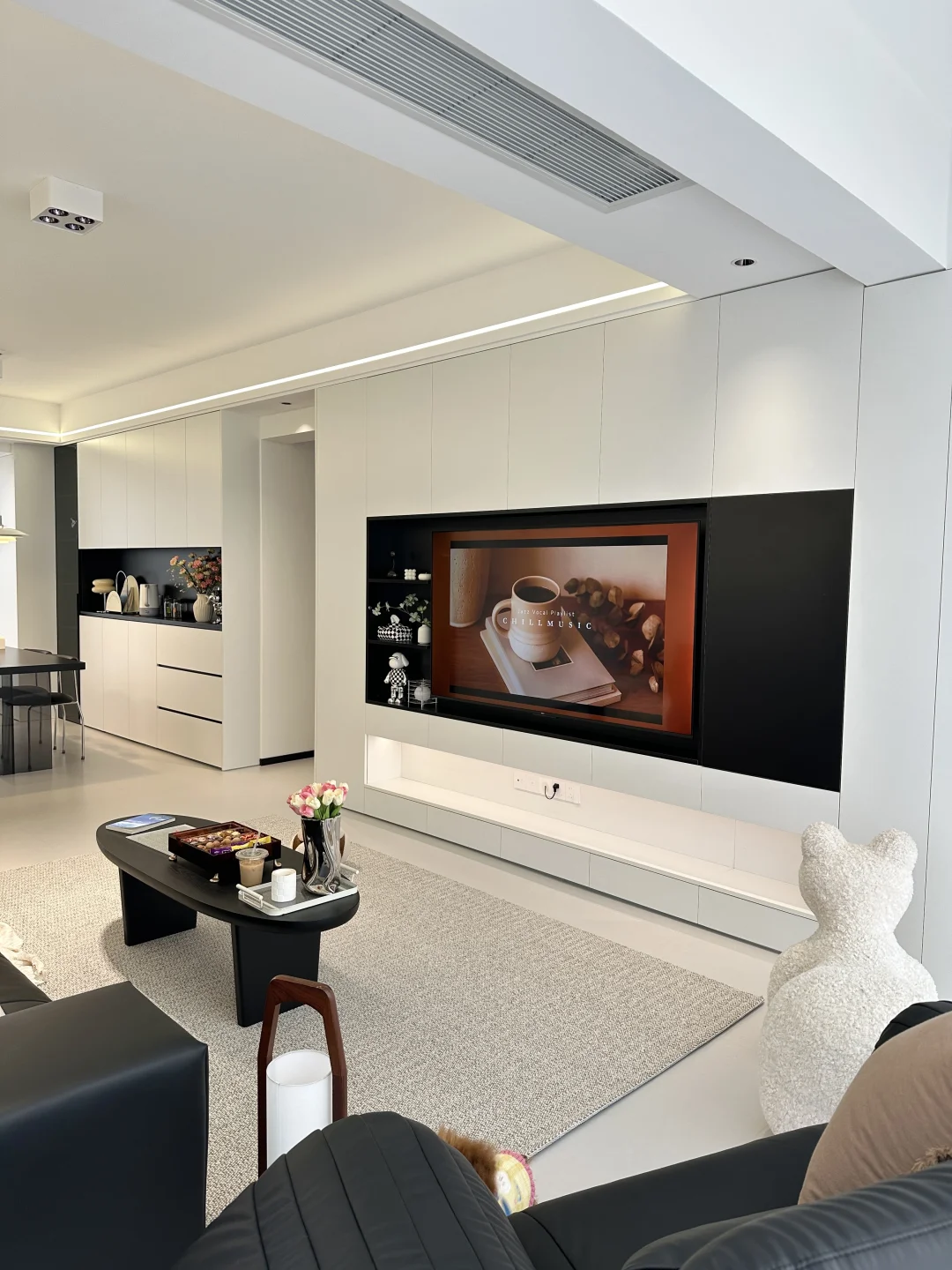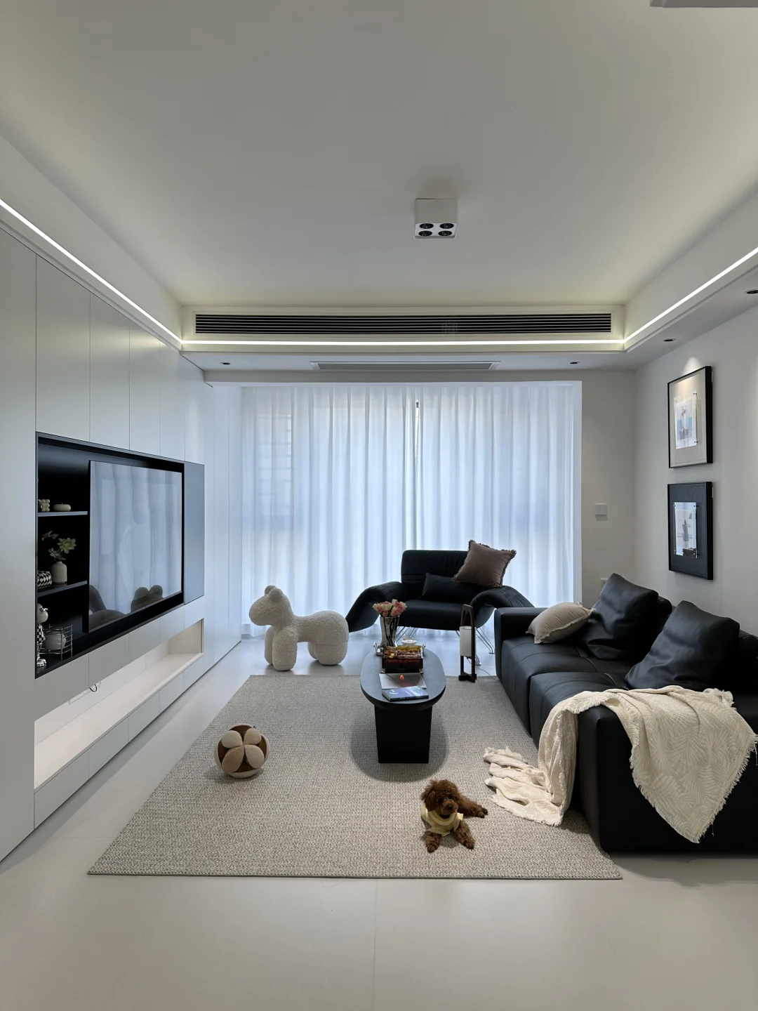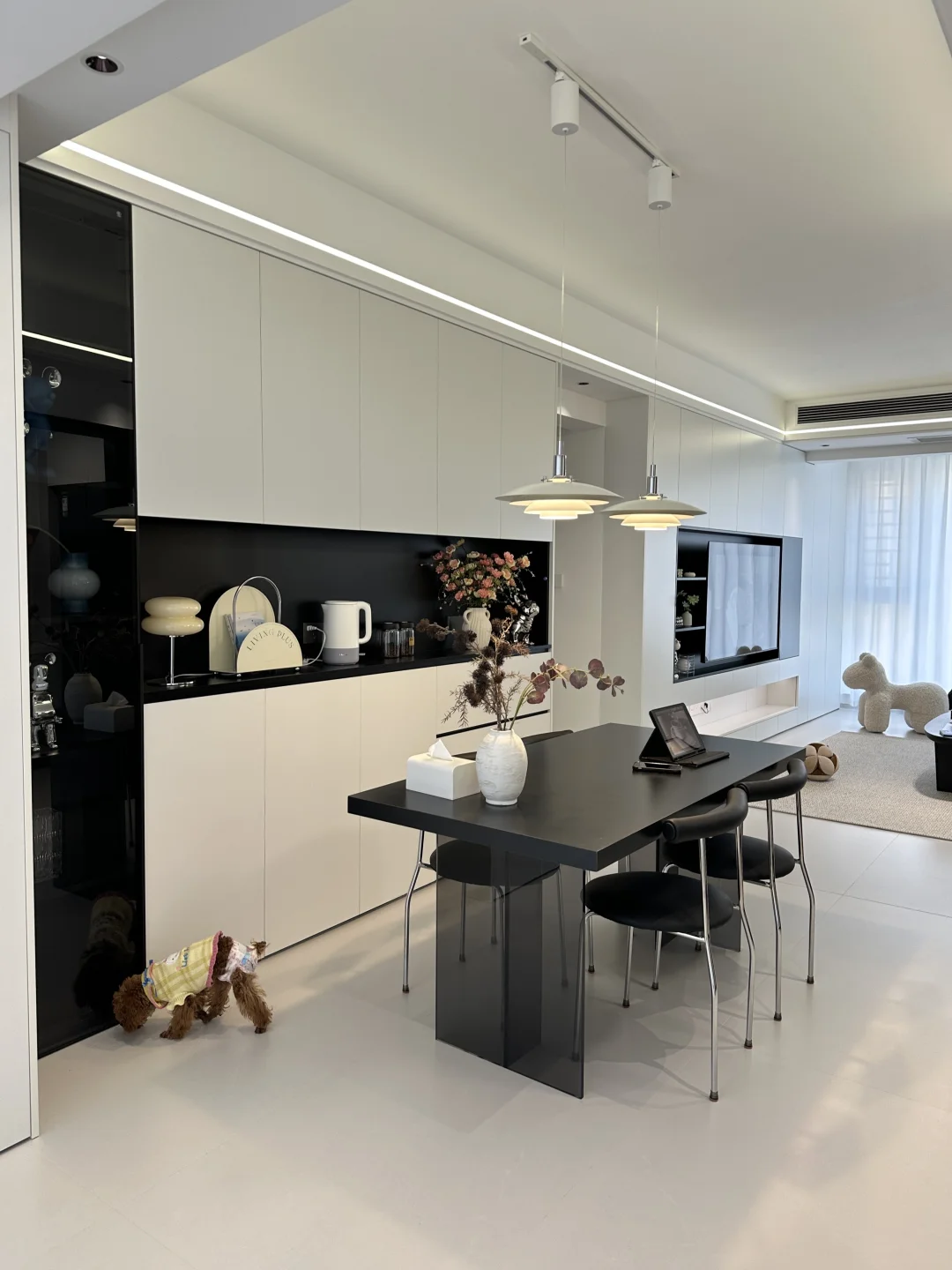 全屋定制是简约的黑白配色,落地效果没翻车