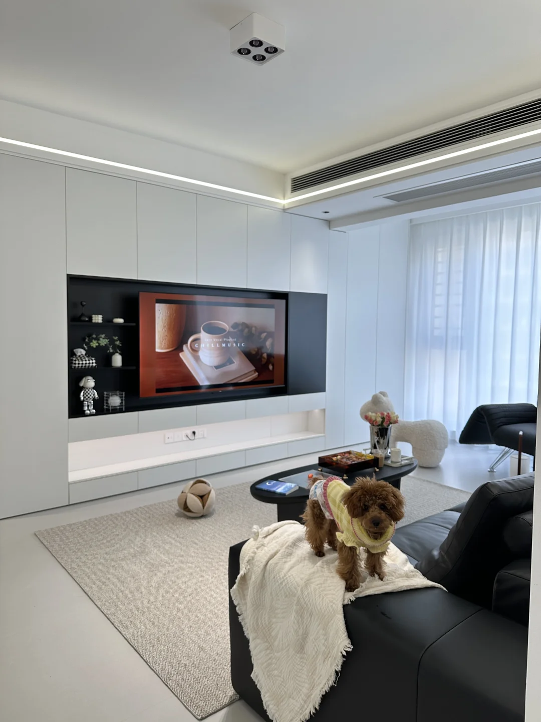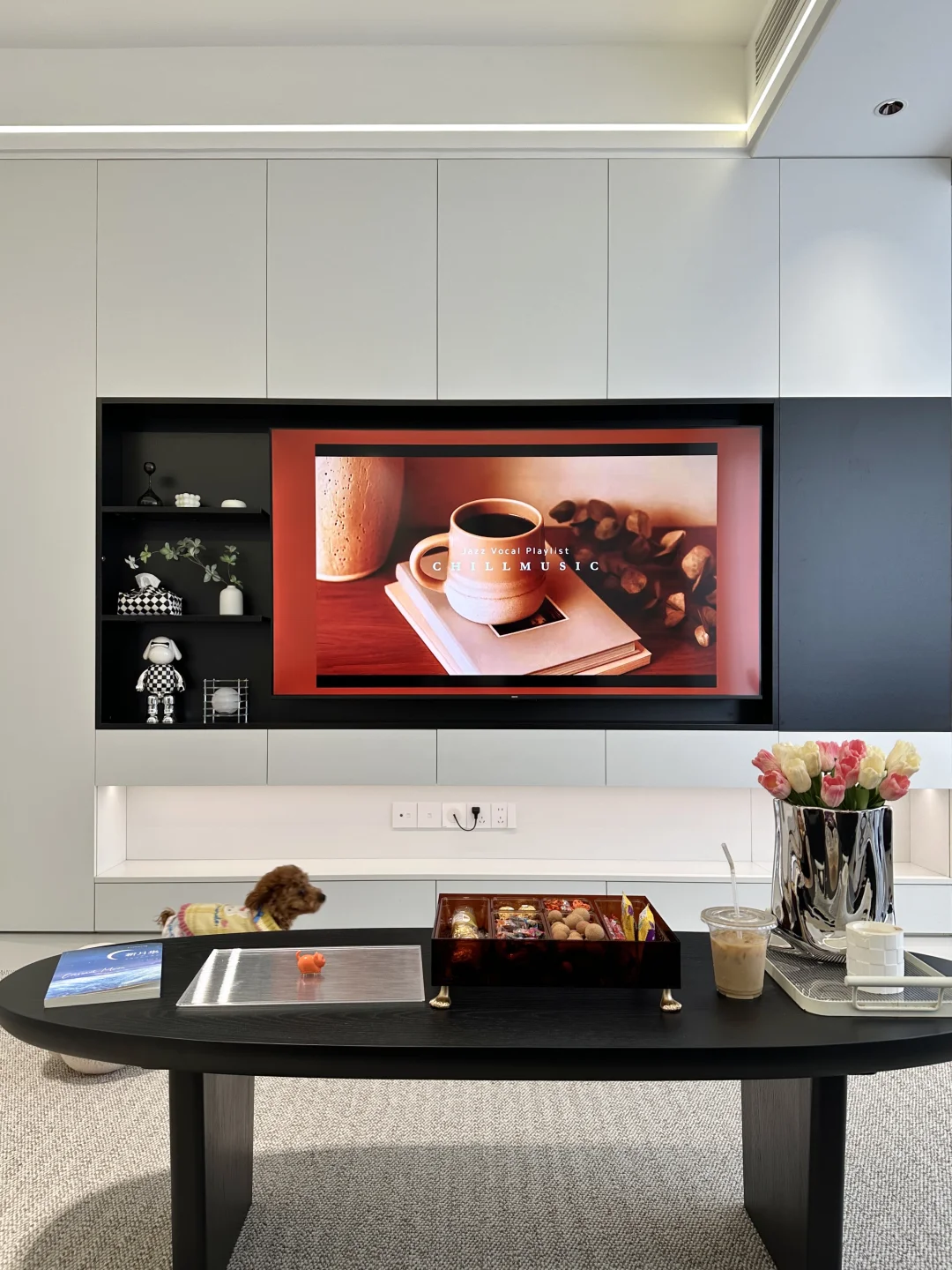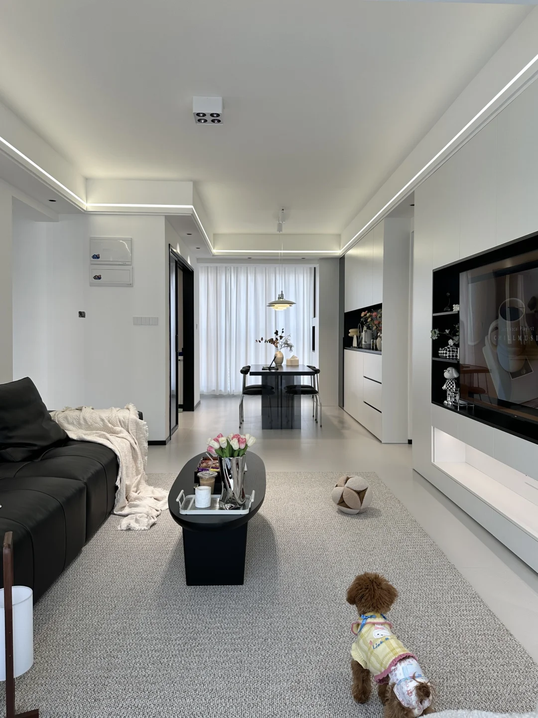 全屋定制是简约的黑白配色,落地效果没翻车