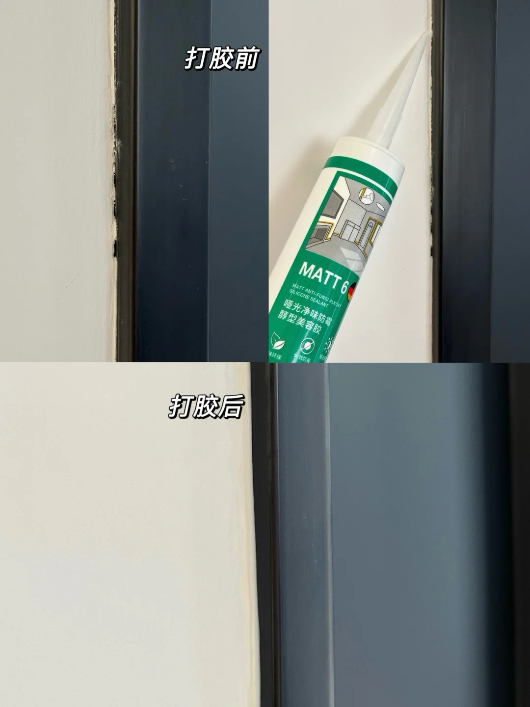 自己动手弄也超简单!胶挤出来滑溜溜的!当时打胶还没有刺鼻的味道,净味配方太贴心了,施工的时候连窗户都不用开绿色环保住着安心!而且是多倍0级防霉,厨房、浴室这种潮湿区再也不怕长黑霉斑了,干湿区通用超方便~