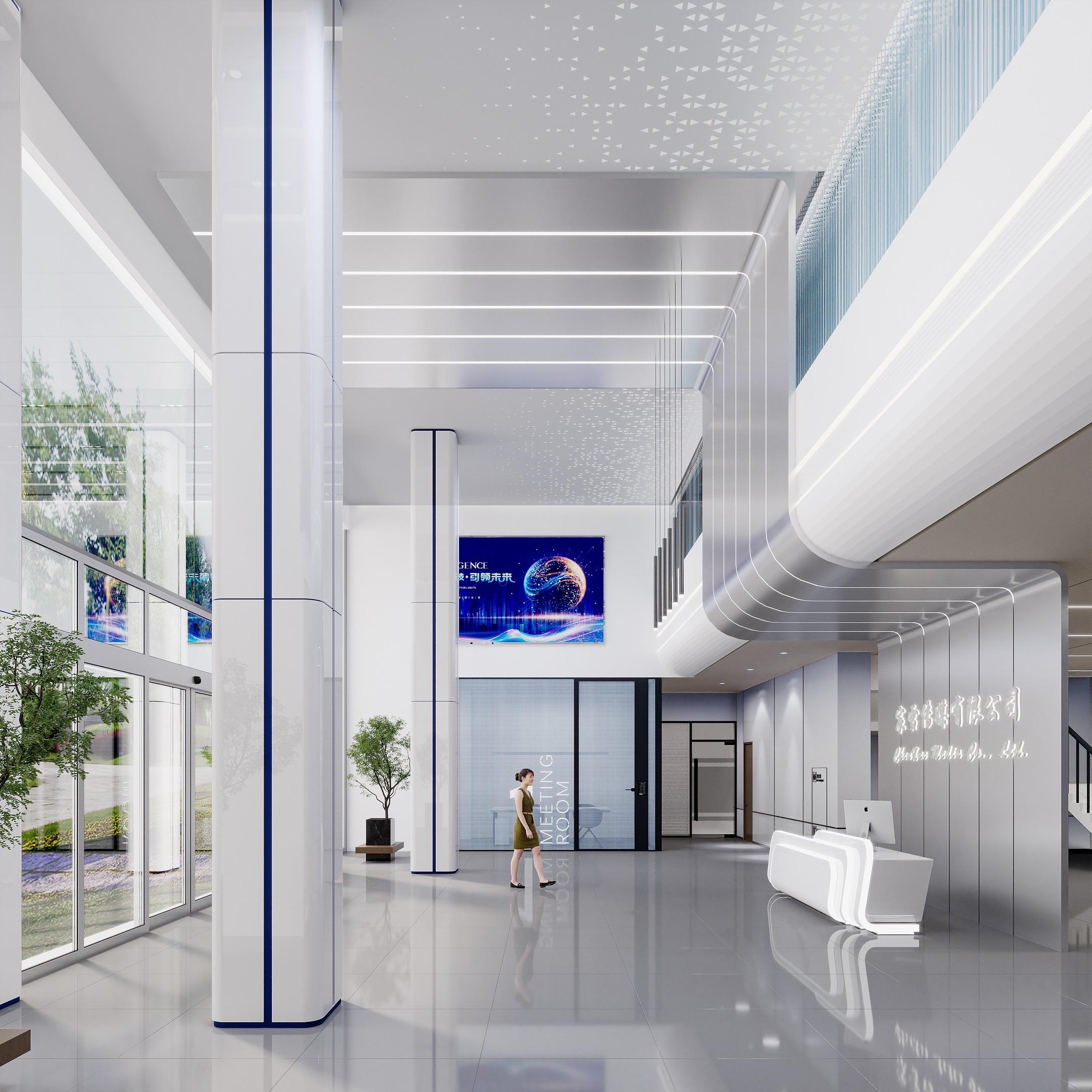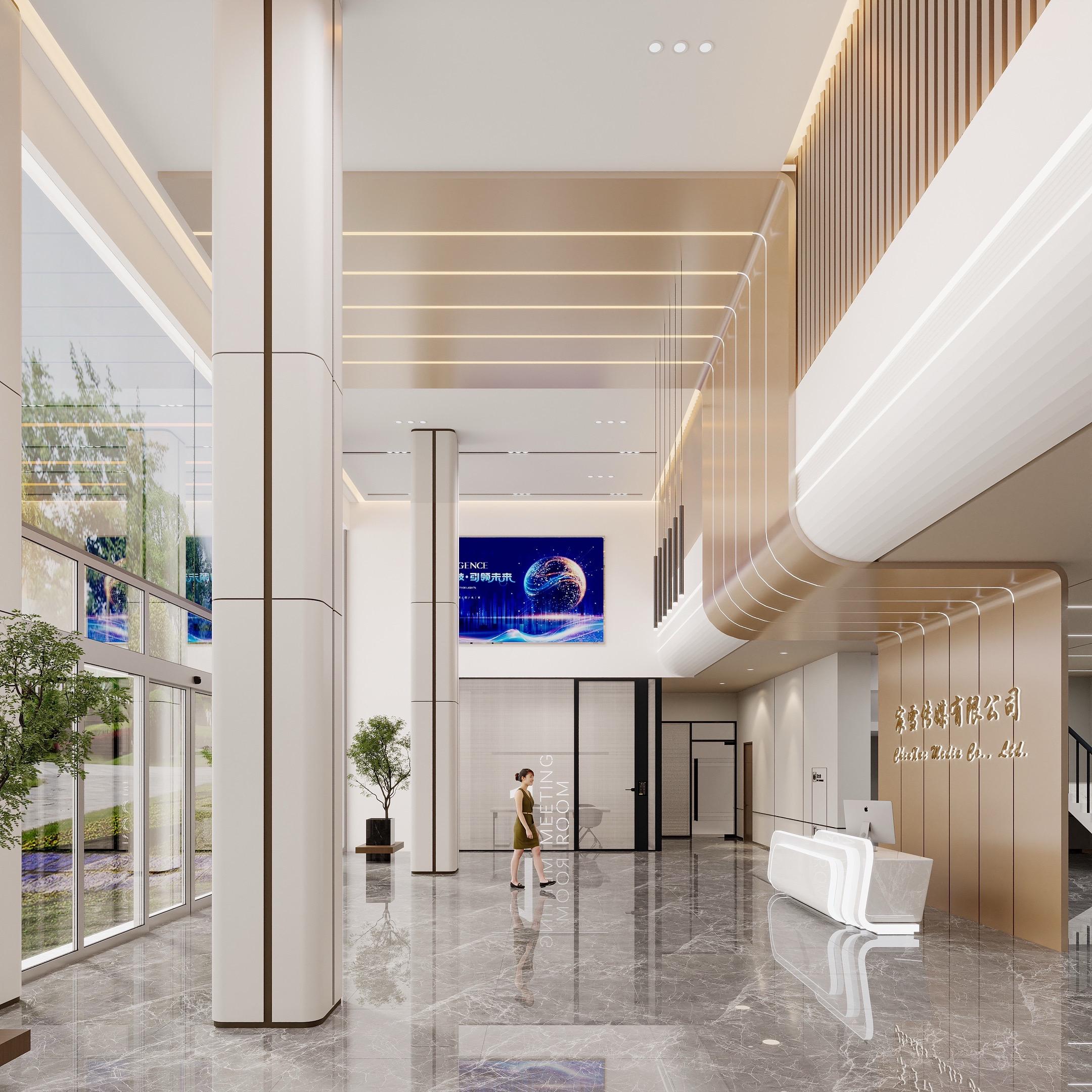 企业公司门厅大堂挑空3Dmax设计效果图