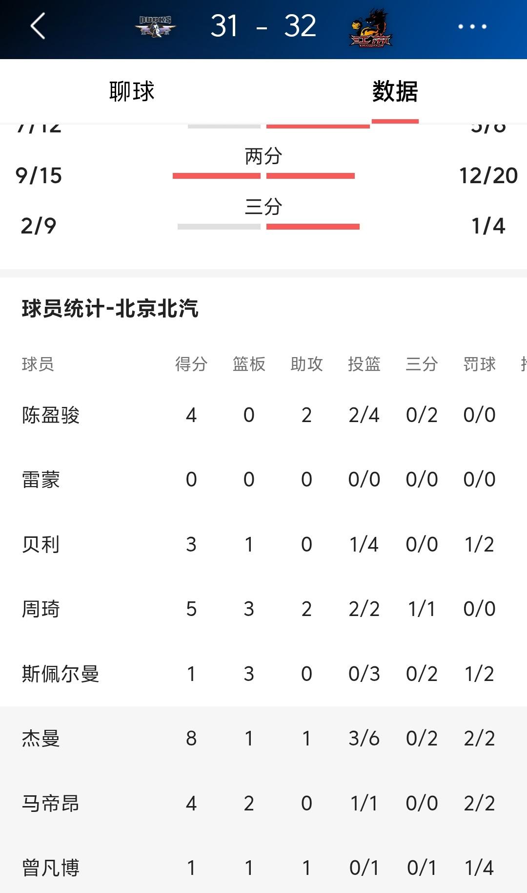 曾凡博这数据让人看的很迷茫,上场7分钟,4罚1中拿1分,上一场赛后许利民指导批评的的球员虽然没点名但是应该有曾凡博吧,北京北汽这些球员咋了,都成大爷了?