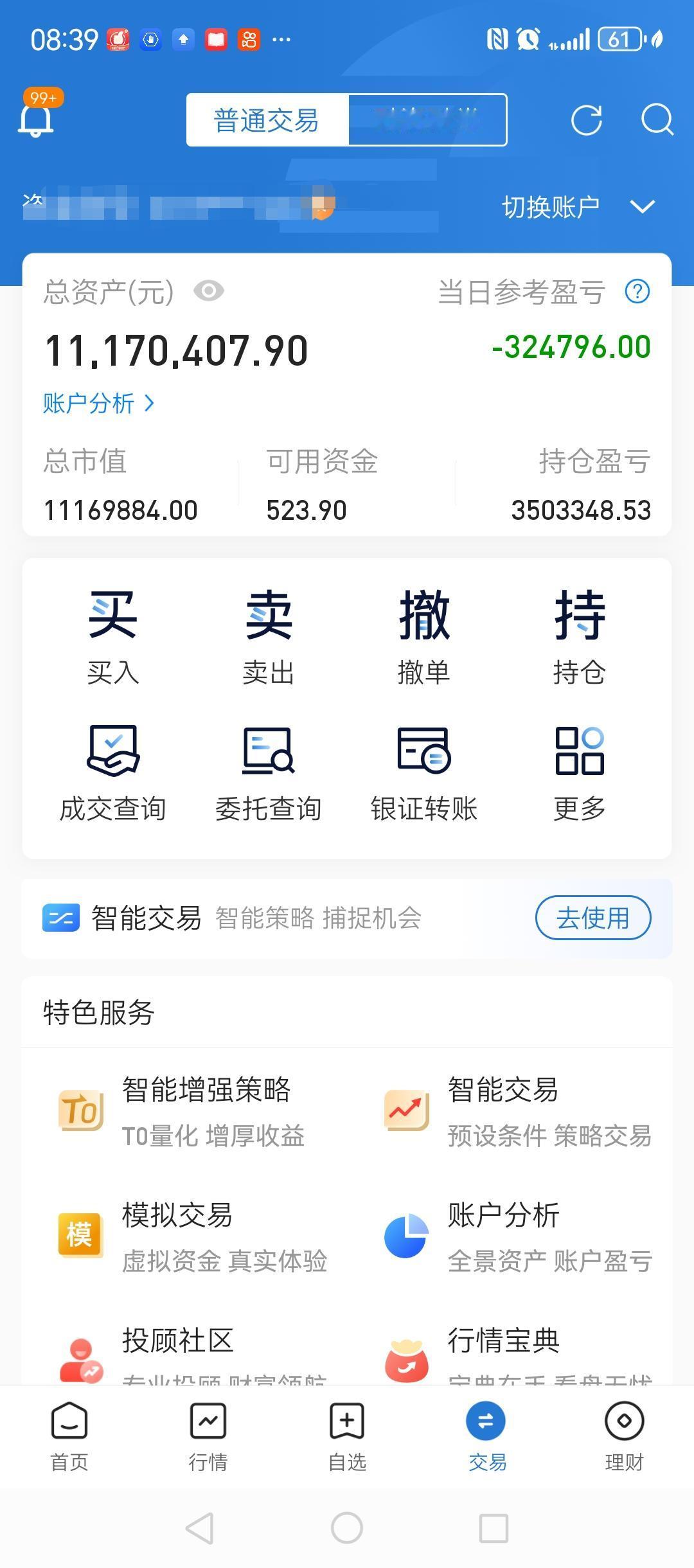 今天市场的震荡有点大!账户一样不见好几十万。这太正常了! 上证指数终于没能18连阳,但是量能依旧创出历史新高,这是好事。 短期的波动根本不用理会,震荡个三五天, 10天8天都是很正常的。 只要我的股票依然处于上升通道中,波段涨幅没有完成,我就不会理会,不会卖出。 我的理念是,好价格买入好股票不赚钱不卖,甚至不赚大钱不卖!