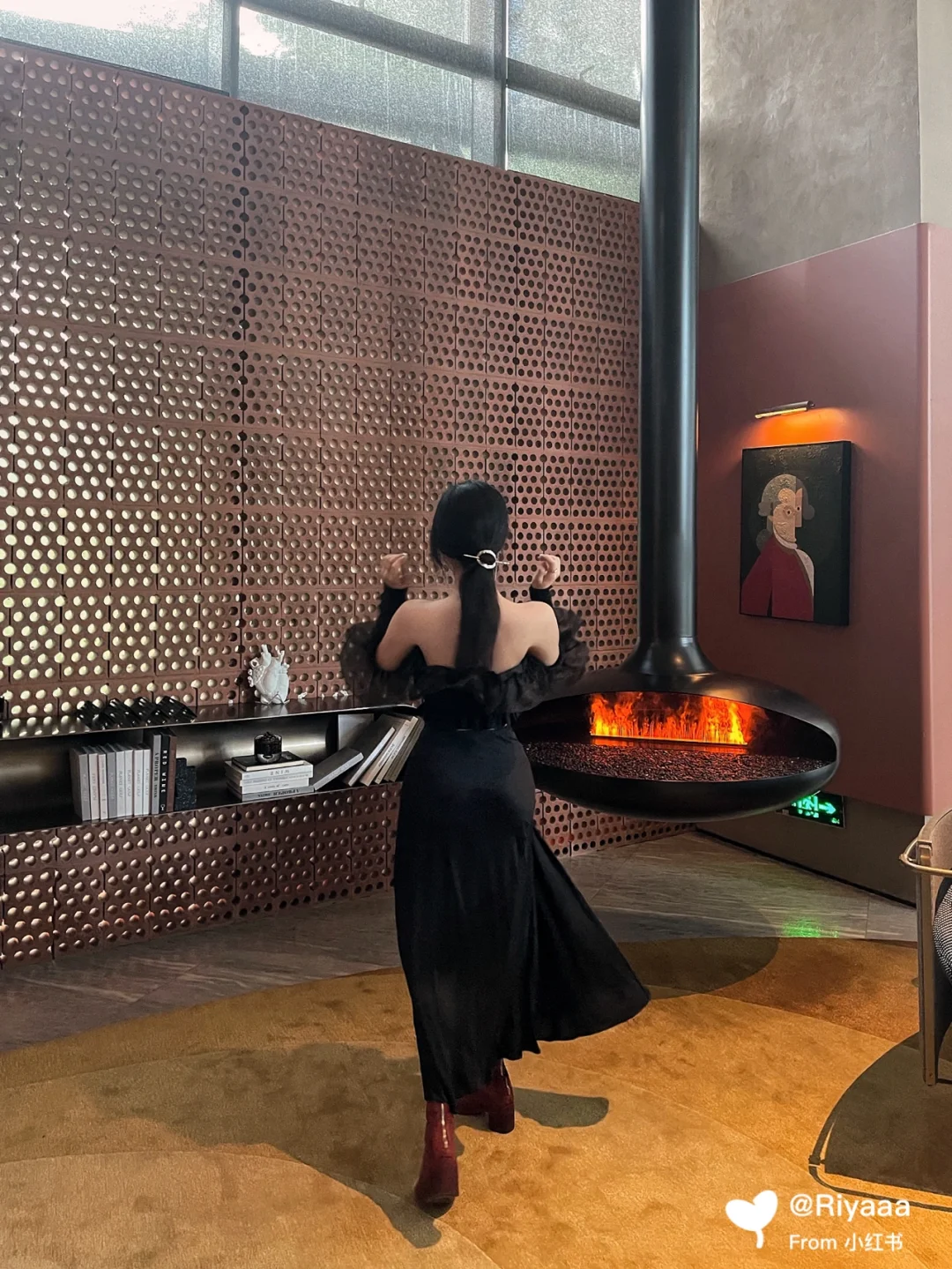 ICON LAB Hotel艾垦酒店 📖介绍: 艾垦酒店ICON Lab Hotel是一家高端轻奢连锁艺术酒店 在深圳有4家分店 “艺术生活化是我们的毕生追求”这是艾垦的品牌哲学 被其极具设计感的装修吸引而来 在大堂吧和小姐妹点了2杯咖啡聊了一下午 其中金属质感的旋转楼梯和吊顶火炉是我的最爱 色调以棕红为主,有种秋天的感觉,满满的高级感 随手一拍都很好看噢 - 📍地点: 广东省深圳市蛇口太子路111号水湾1979商业楼自贸中心1楼 - 👗穿搭: 上衣已经下架了 鞋:guidi -