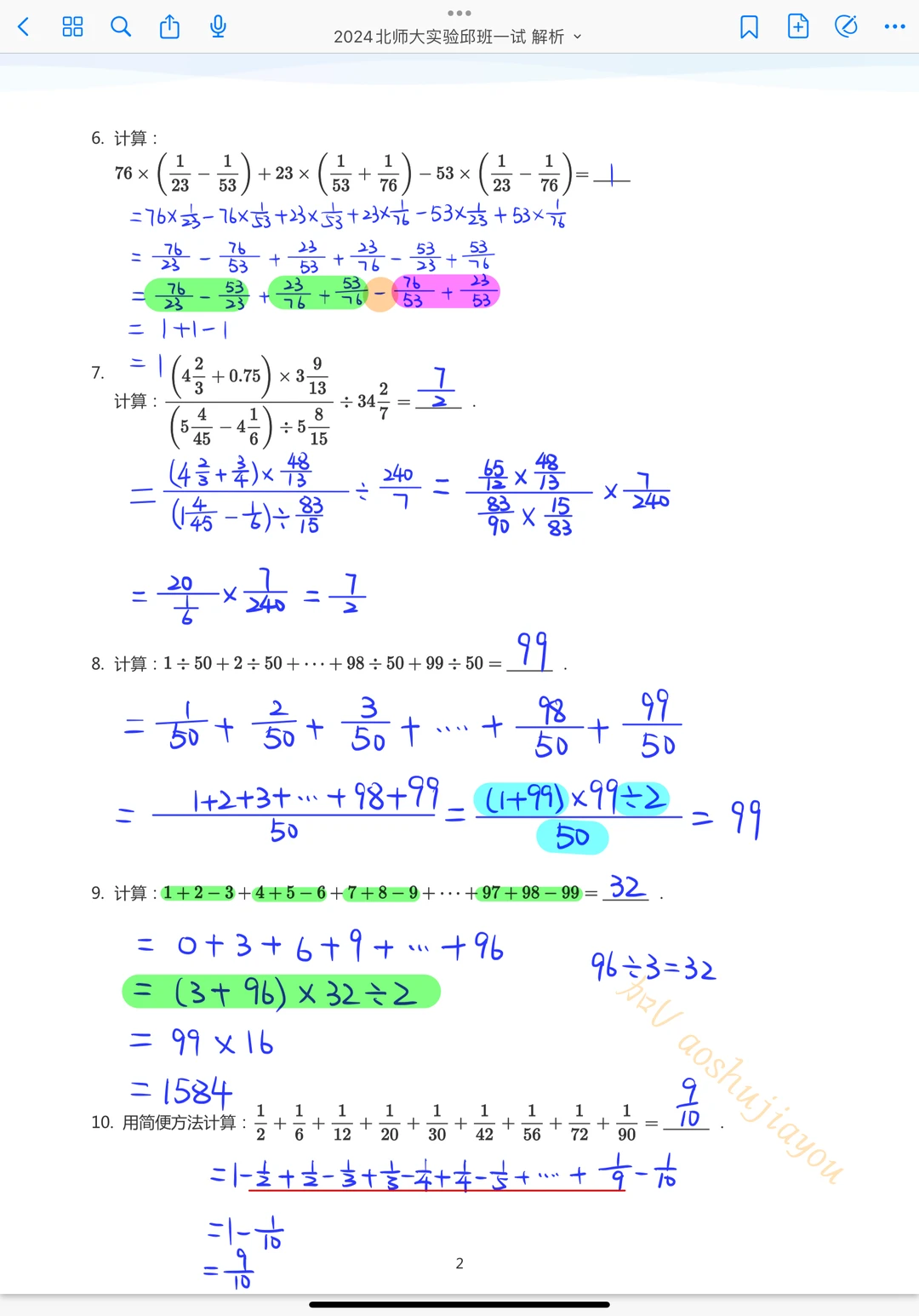《分数加减》五年级暑假奥数创新班课堂笔记