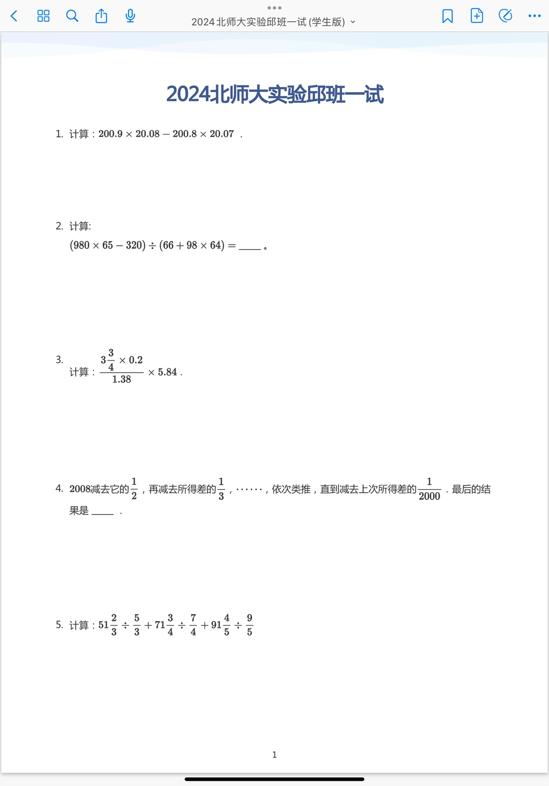 2024年7月北师大实验邱班一试解析