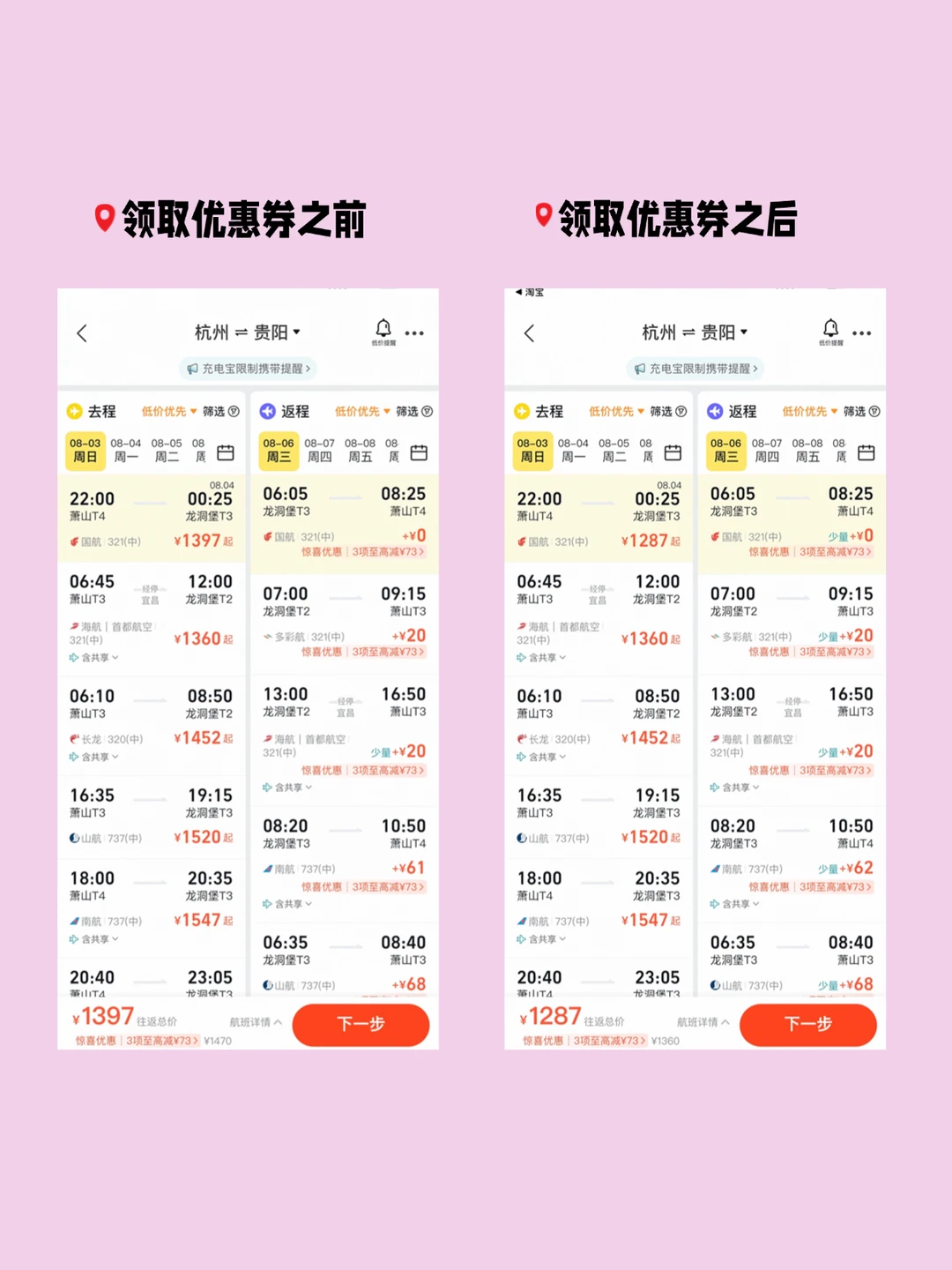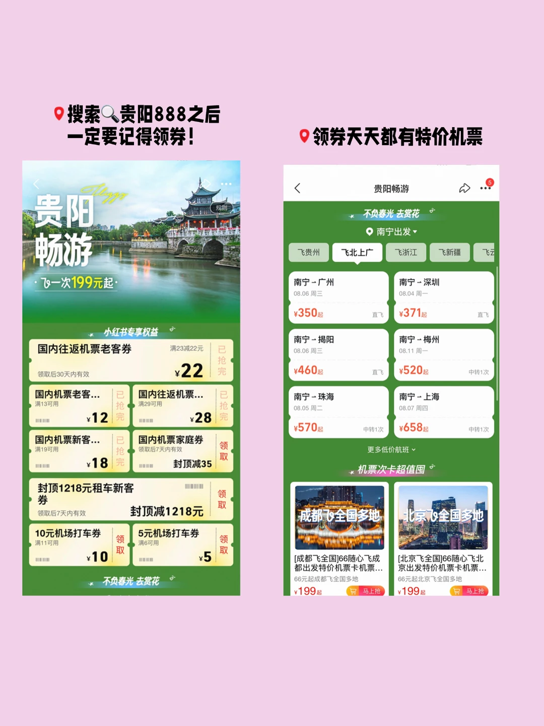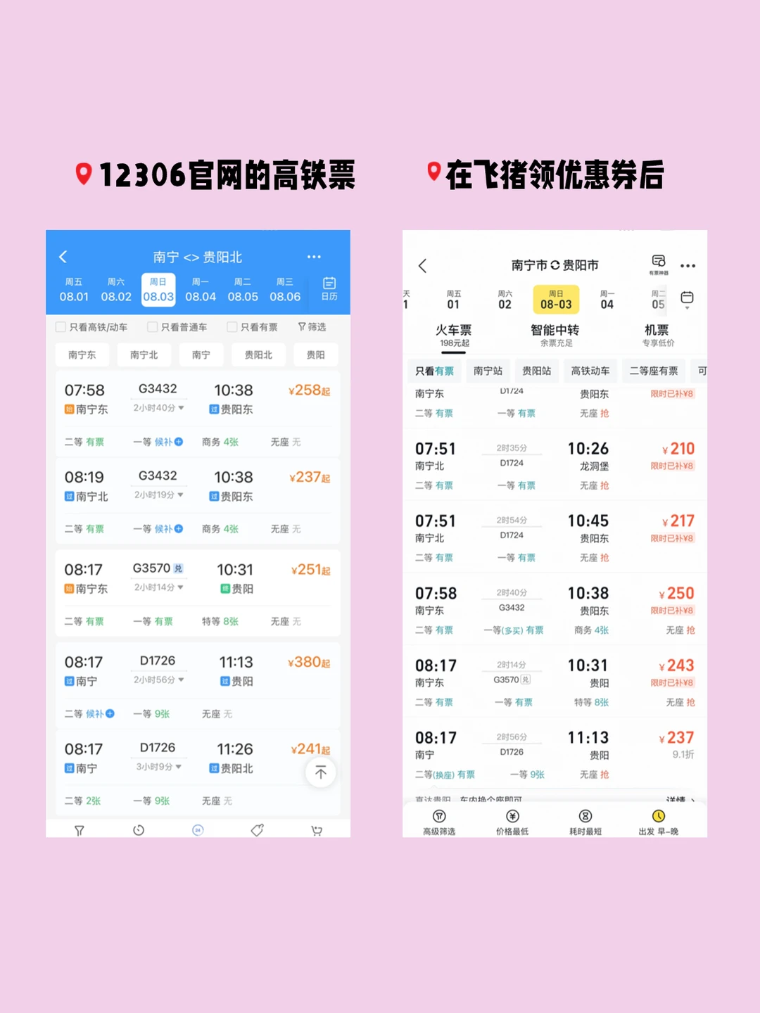 搜“贵阳888”领到隐藏券,从南宁到贵阳的高铁券后比在12306上直接买更划算,而且我发现在飞猪定机票✈️更便宜!像杭州到贵阳的飞机券后比某程直接便宜18%+,特价票还能叠加酒店券,订酒店时直接减了80元,等于机票变相再打折,省的钱够吃2顿酸汤鱼了🤤!!