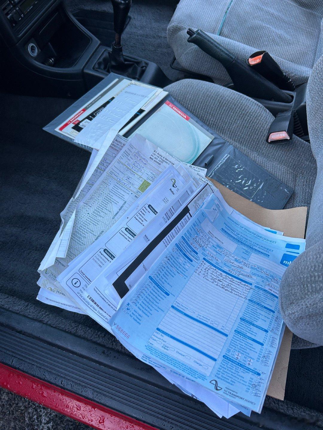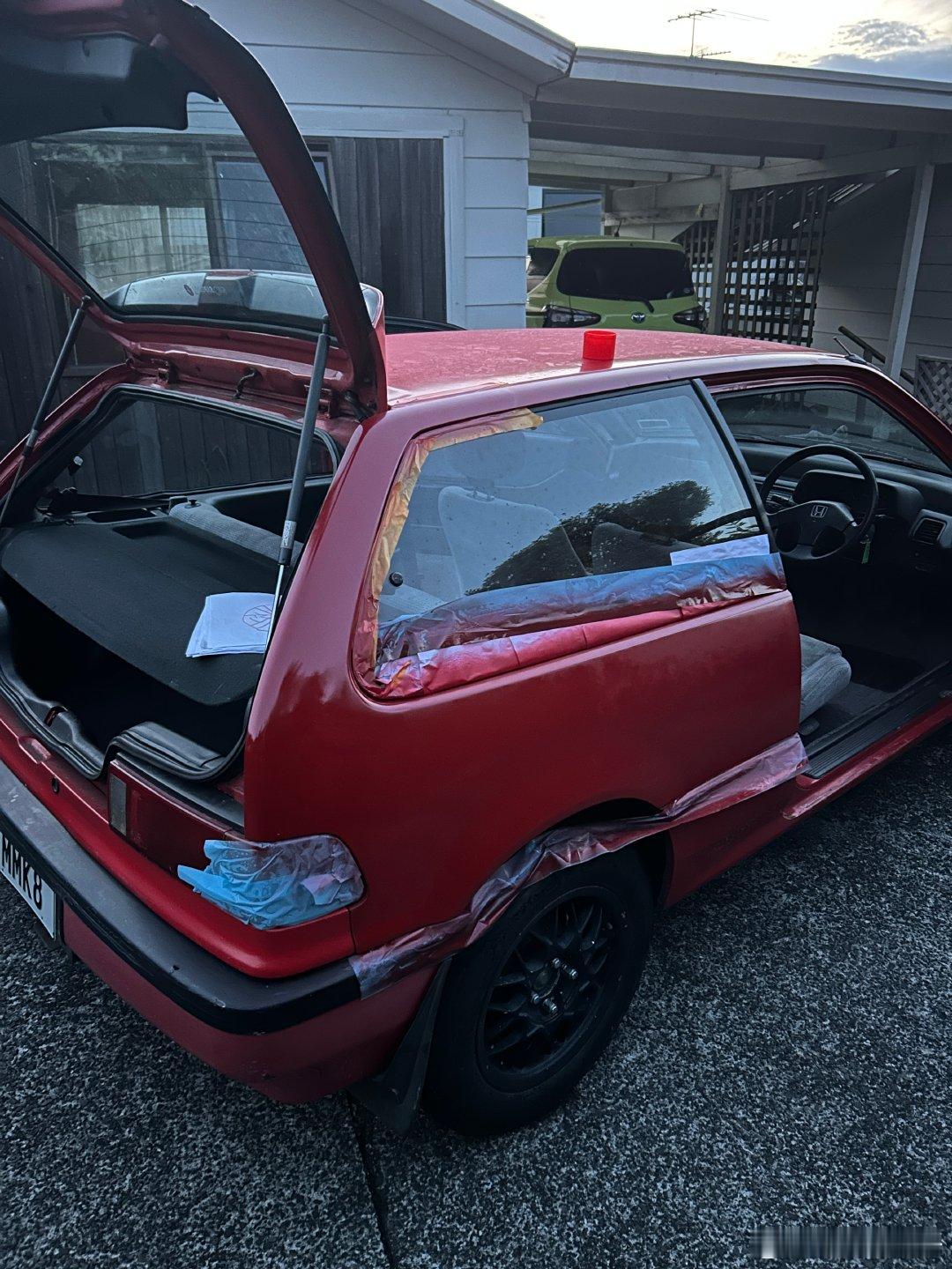 Finally got the Civic back from the panel beater. It took way too long, and I honestly couldn’t wait to start working on it.Just serviced it. I bet this is the first time in its 37-year life that it’s been fed full synthetic oil.Vacuumed the interior and found a bunch of old records and WOF sheets — more than enough reading material before bed.Also bought several spray cans for some minor scratches. But once I realised there was almost no colour difference between the spray and the body, I couldn’t stop myself and ended up spraying the entire rear fender.Might find it totally fucked tomorrow morning — who knows.I’ll just keep working on it before heading to work tomorrow. Really enjoying the process.