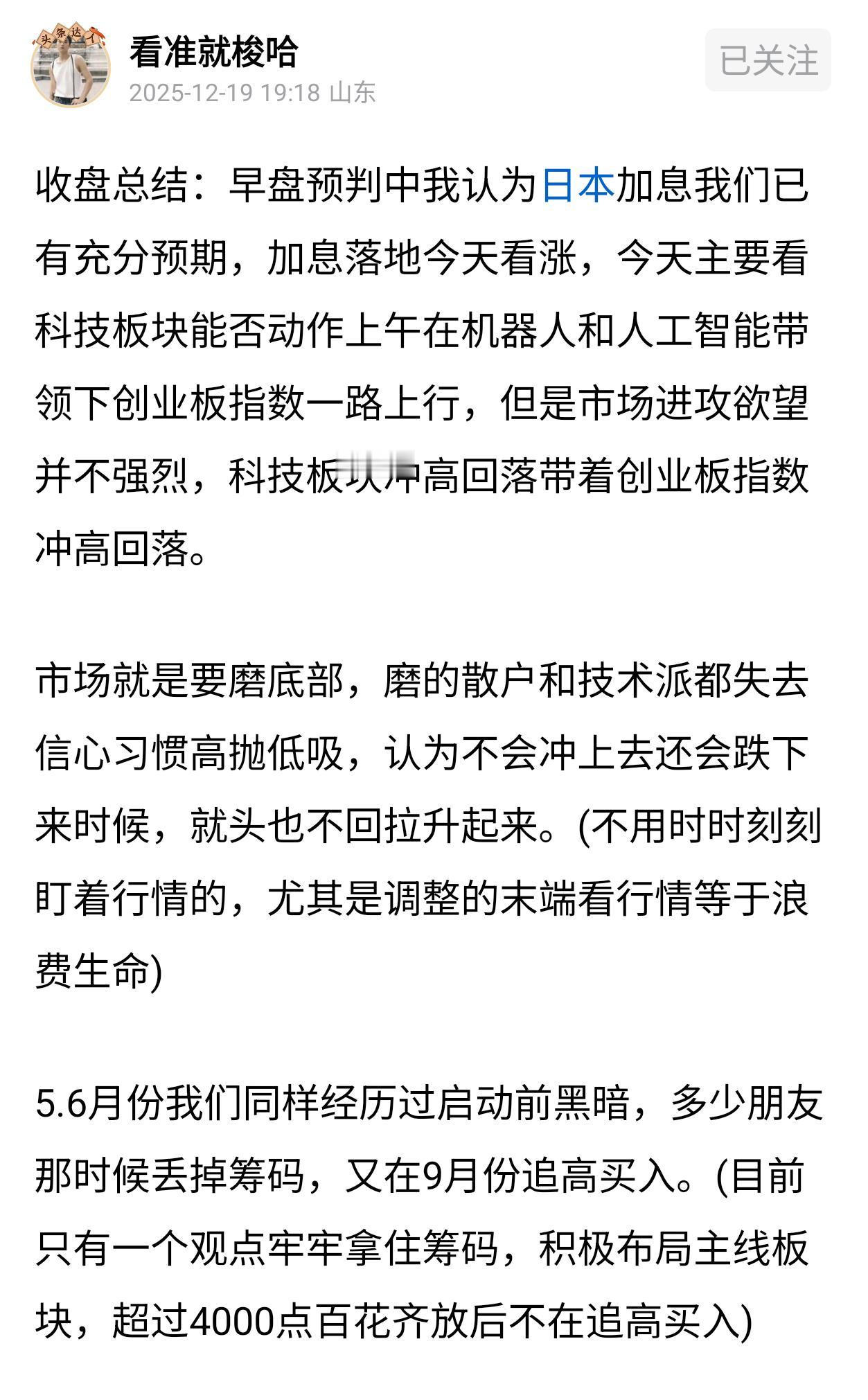 早盘预判:上证指数17连阳终结,终于迎来一个像样调整,我认为本次调整是小级别调整是非常健康的调整。(突破4000点位高位追涨买入面对周二急跌根本拿不住筹码,这时候就是有利润垫才有问题心态) 市场目前足够强势小级别调整一般时间都不长,甚至不排除指数出现反包。我认为最好是调整2天洗一天追高买入浮筹,上证指数今天会有冲高动作科技板块不跟就会冲高回落再次洗盘。(昨天长篇文章也讲第一次分歧以后后面还会有高点) 最近人工智能(CPO概念)虽然有国产算力带着涨幅还可以比纯CPO混合基收益高很多,但是CPO走势的确弱很多对人工智能影响还是有。这个位置满仓有点风险选择降低1.5层仓位出来还是要抓主线。(昨天想过要不要调仓给东方核聚变估值下跌4.6%思考很久还是先拿一拿子弹那样心态更稳定拉,实际东方核聚变更新只跌1.19%) A股能否实现十八连阳 股票做长线会不会赔钱吗?