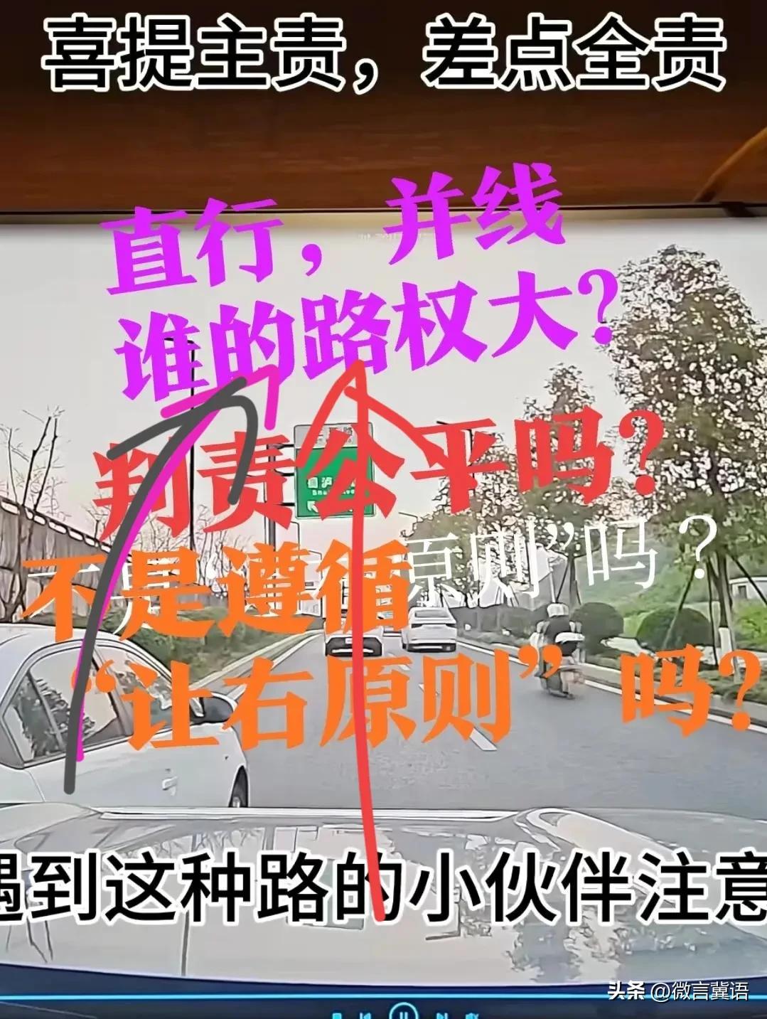 【谁懂啊?不是让右原则吗?】公平吗?直行与并线,谁的路权大?谁的责任? 事发四