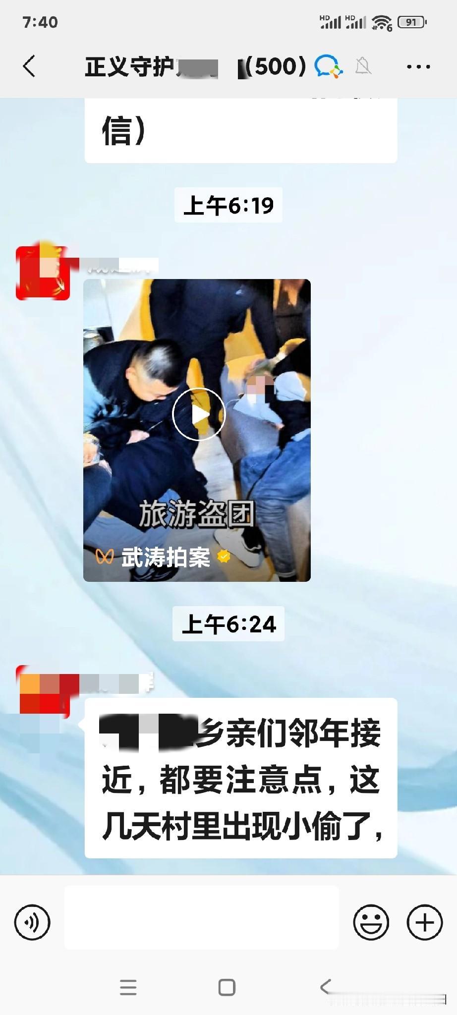刚看到村干部在群里发的消息:年关将近,近期村里出现了盗窃的可疑迹象。为保障大家的财产安全,让大家过个安宁的节日,村委特此提醒全体村民做好防范工作。 友友们,年关到了,防盗意识可别放松!一定要锁好门窗、保管好财物!对陌生人员提高警惕,发现可疑情况,马上向村委或警方反映! 入户盗窃 盗窃他人财物 小区盗窃 家庭盗窃