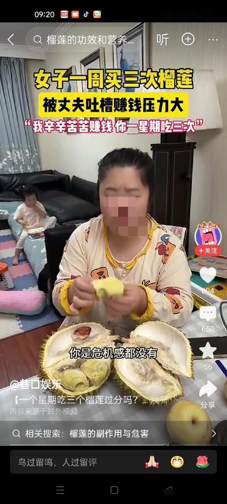 女子一个星期买三次榴莲。丈夫非常生气,对妻子说,我辛辛苦苦赚钱,你一周吃三次榴莲,你是一点危机感都没有啊。 这原本只是生活里的一次日常拌嘴,丈夫觉得日子得紧巴点过,却没料到妻子反应极大,直接怼回去说自己没吃鲍鱼海参,最后甚至甩出一句“养不起就让别人养”,彻底把这段关系推到了离婚边缘。 说实话,我看这段对话时最直观的感觉是,男人真正在意的可能不是那几百块的榴莲钱,而是他在前方感到危机重重时,后方最亲的人却完全没有同频的打算。 女方觉得一周吃三次榴莲不算奢侈,但在一个家庭的抗风险能力面前,这种“理所应当”的消费观偏差,往往就是矛盾的源头。 最让我唏嘘的细节是那句“让别人养”,这简直是精准踩在了男人的自尊心上。 有些话一旦说出口,性质就变了,它不再是关于水果开销的讨论,而是一种赤裸裸的嫌弃和对家庭责任的否定。 我总觉得,男人那一刻的“心碎”和想离婚的念头,大概是因为他发现自己拼命维持的家庭,在对方眼里竟然如此廉价且可替代。 生活里很多感情的崩塌,其实都藏在这些琐碎的对话里,一个在担心未来的生计,一个却在抱怨当下的享受被限制。 估计这男的是真的看透了,原来在对方心里,那点口腹之欲竟然比两个人的体面和未来更重要。