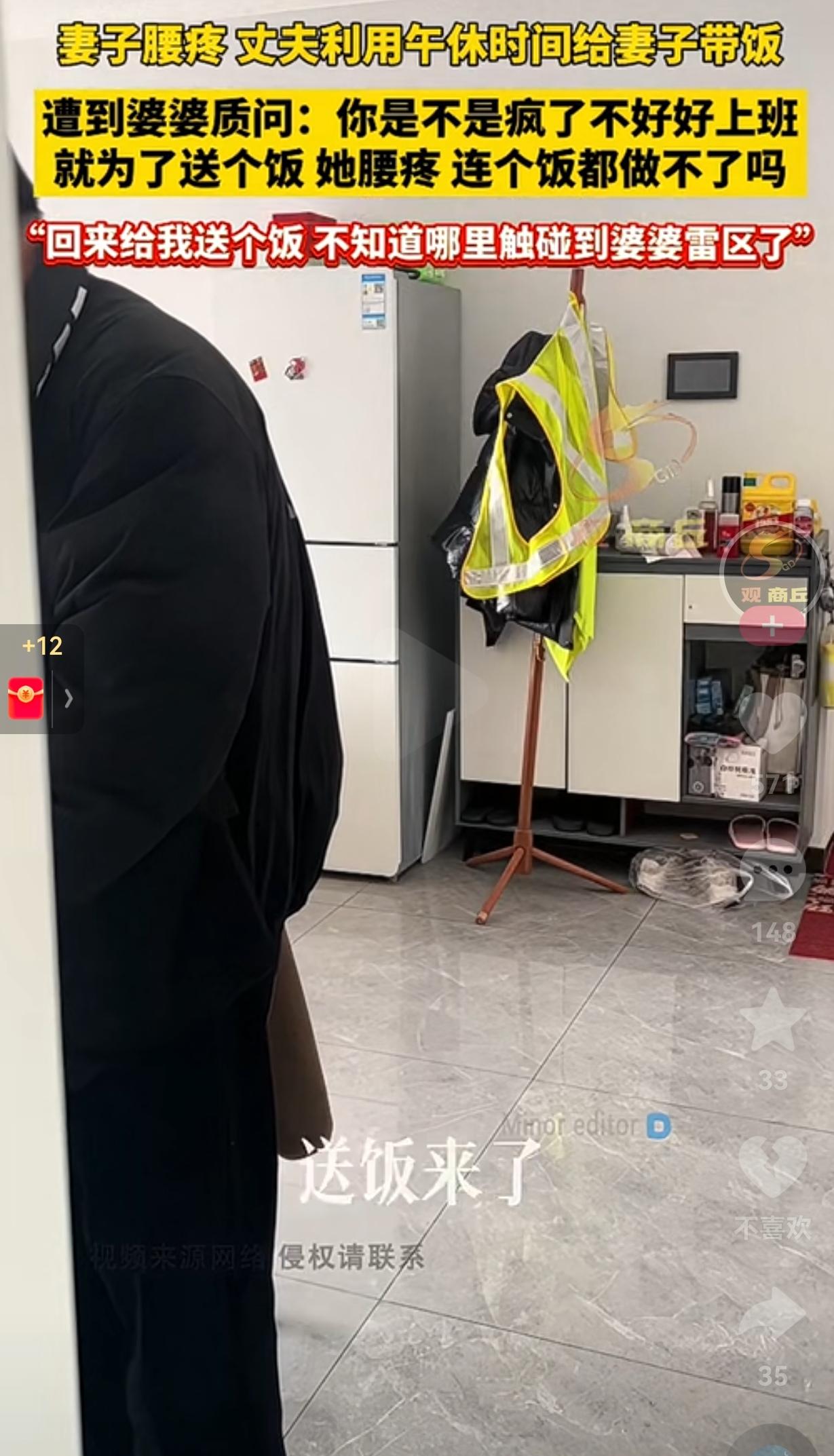 这就是鸡蛋里挑骨头—找茬!近日,吉林一丈夫因妻子腰疼,特意利用午休时间不辞辛苦,特意回家给妻子带饭,这不是一件再正常不过的事情吗? 没有想,竟然因为这件事情,却遭到婆婆的严厉质问:“你是不是疯了?不好好上班,就为了送个饭,她腰疼连个饭都做不了吗?” 面对婆婆的质疑,丈夫忍不住解释:“中午你也不做饭,我媳妇腰疼又做不了,我就利用吃饭时间给你们送点饭回来,怎么了?” 丈夫本是出于对妻子的关心,才牺牲午休时间跑这一趟,可在婆婆眼里,这份心疼老婆,却成了老妈口中的“不务正业”,甚至觉得儿媳的腰疼是“矫情”。 婆婆的做法确实让人心寒,其实在婚姻里,最珍贵的从来不是什么惊天动地的浪漫,而是这种日常里的体贴和心疼,可这份心意,却常常不被长辈理解。 网友看到后评论说:“婆婆永远觉得儿子上班累,却看不见儿媳在家的辛苦,太现实了。” 也有的网友说:“这个丈夫真的是好男人,心疼妻子有错吗?上班辛苦,妻子腰疼就不辛苦吗?” 看到这位婆婆的做法,让我想起了一件事情,就没有婆婆拆不散的婚姻。 我理解老人家心疼儿子既要上班,又要不辞辛苦给儿媳妇送饭,确实太辛苦了!但是,儿媳妇嫁到你们家,作为婆婆也应该知道,儿媳妇也是这个家的一份子,你想要儿子把日子过得红红火火,夫妻之间过得和谐,家庭和睦,你就不应该对儿媳妇有什么意见?这才是婆媳相处之道。 不然的话,儿子儿媳妇因为你的原因,日子过不好,你这不是坑了你的儿子吗? 最后,希望所有的婆婆对儿媳妇多一份体谅,少一份指责,这样一来能让家庭少很多矛盾。 毕竟,家人之间,最可贵的就是将心比心,你心疼我的不易,我理解你的辛苦,日子才能过得红红火火。 大家觉得呢?欢迎评论区唠唠。
