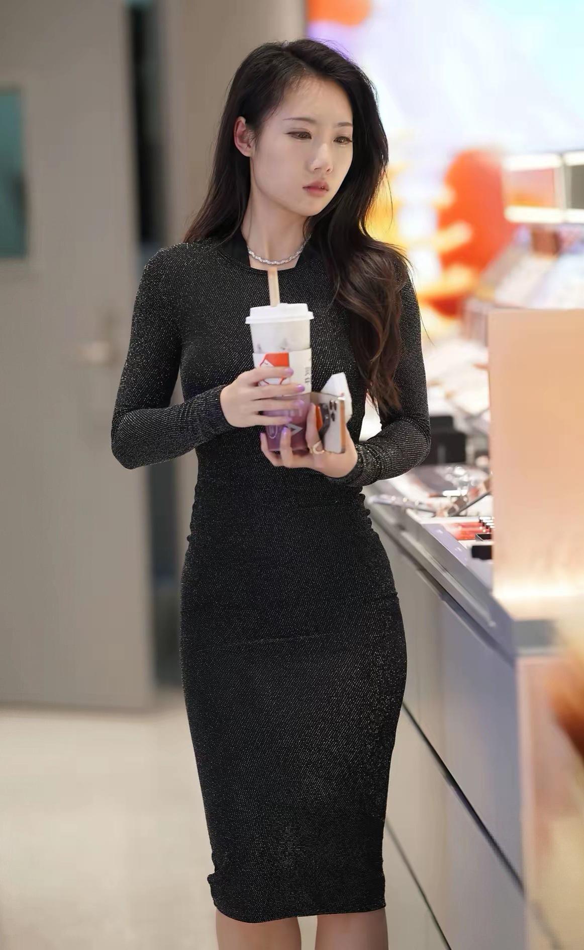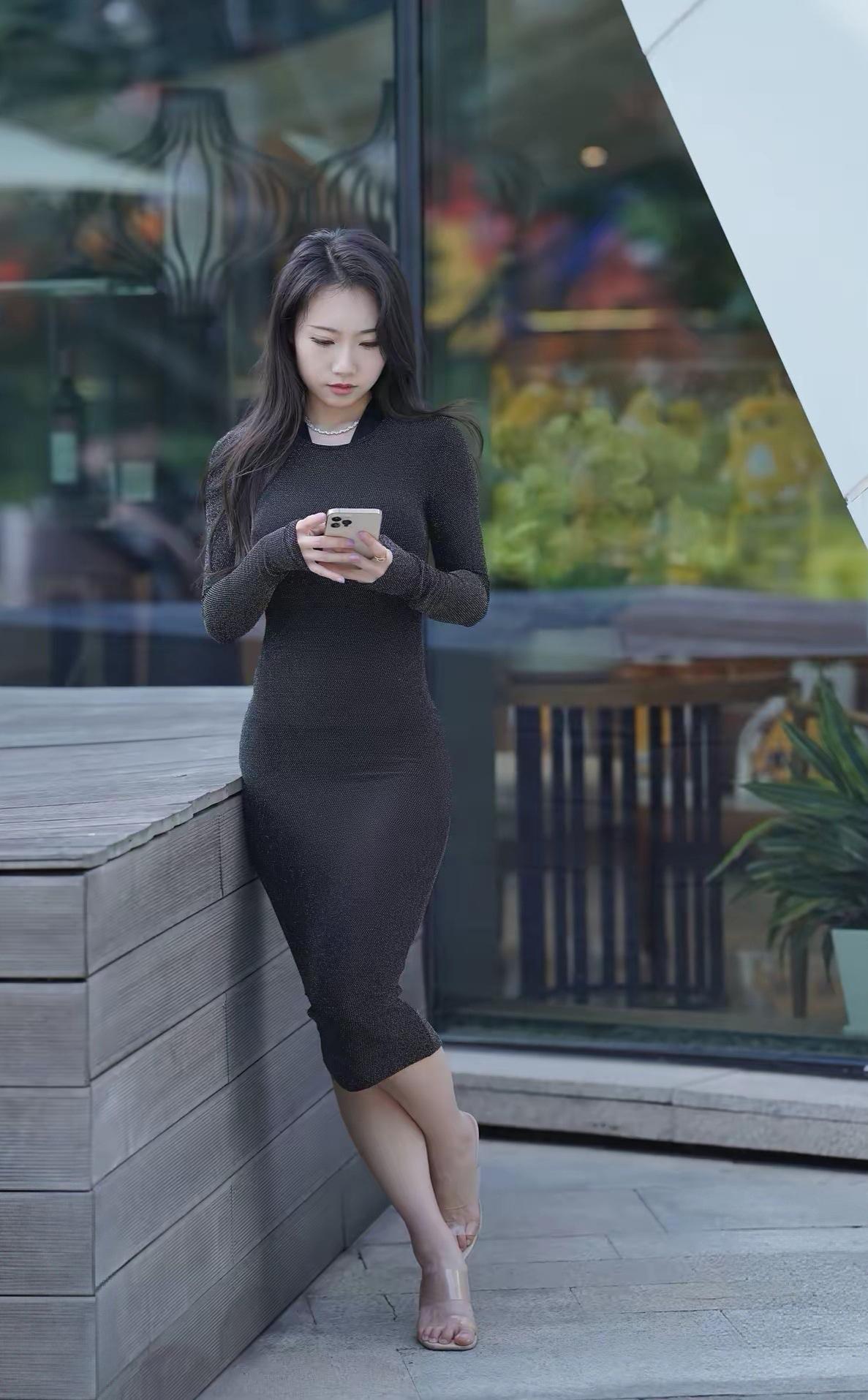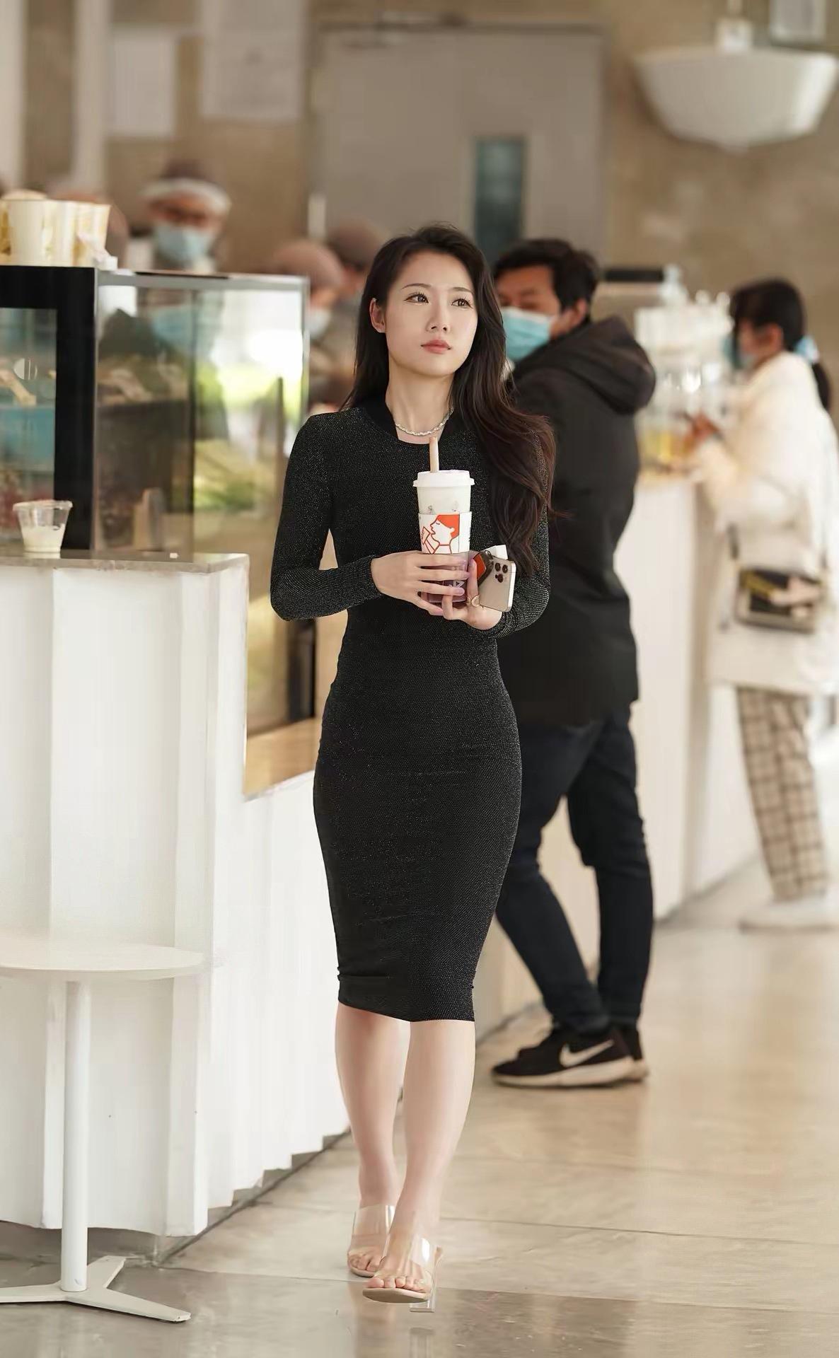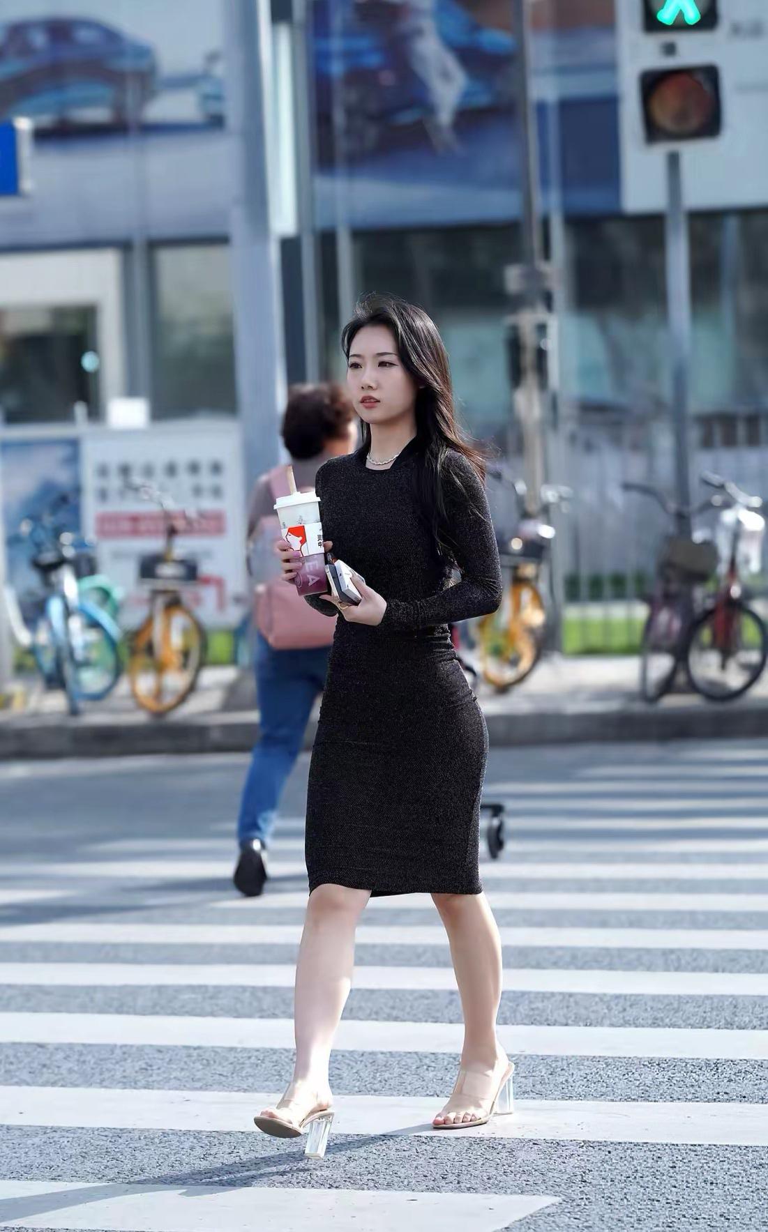 都市女孩的时尚穿搭,黑色西装裙搭配高跟鞋,自信满满!街拍美女