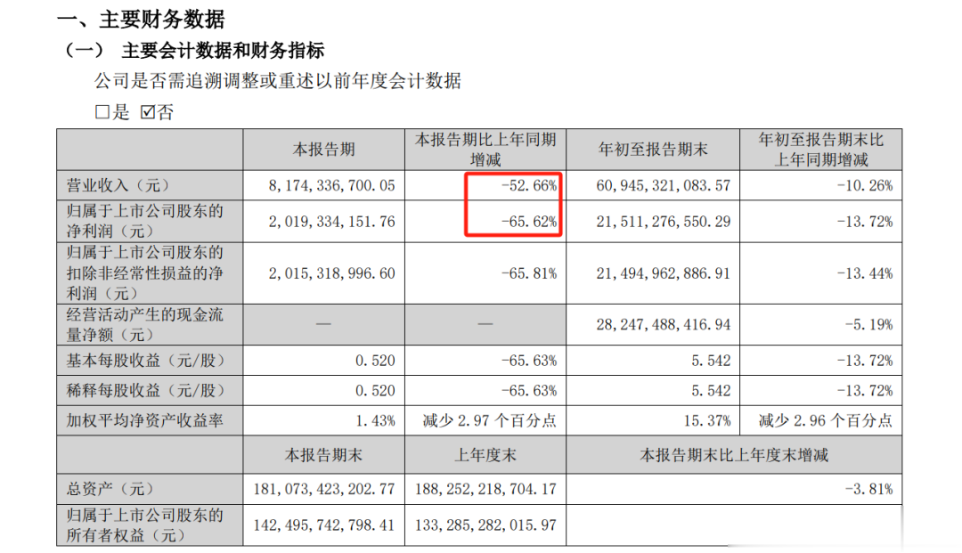 区域酒企口子窖预计全年净利润腰斩,水井坊、洋河股份三季度业绩断崖式下滑。即便是头部巨头,增长也近乎停滞:茅台三季度营收与净利润增速骤降至不足0.5%,五粮液三季度营收与净利润两项核心指标则同比下滑均超过50%。