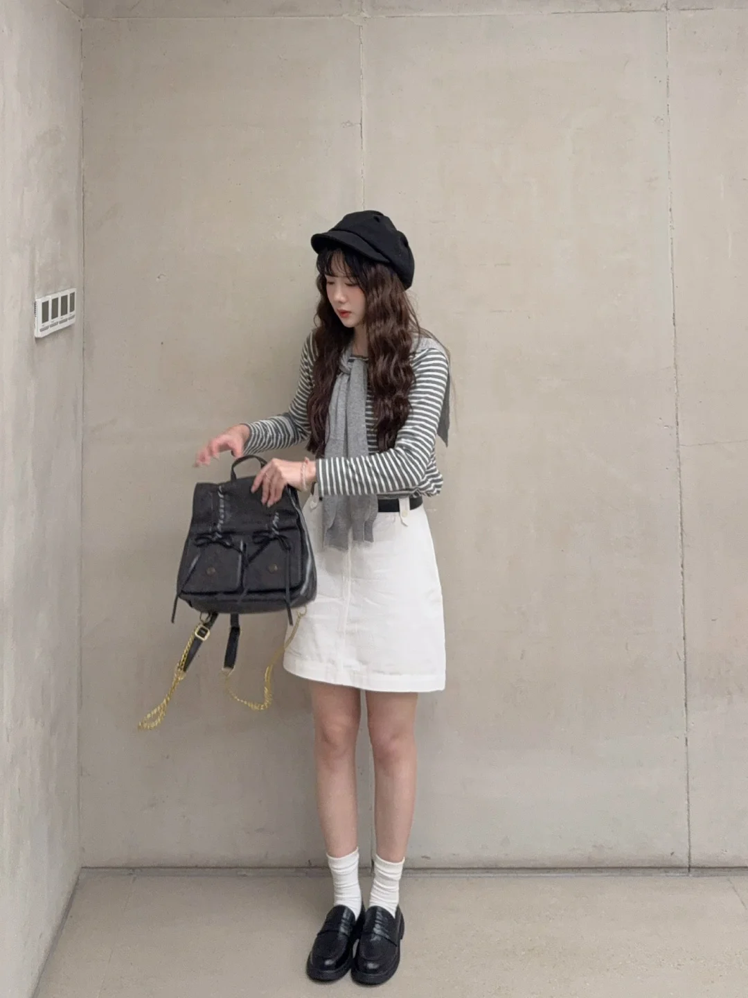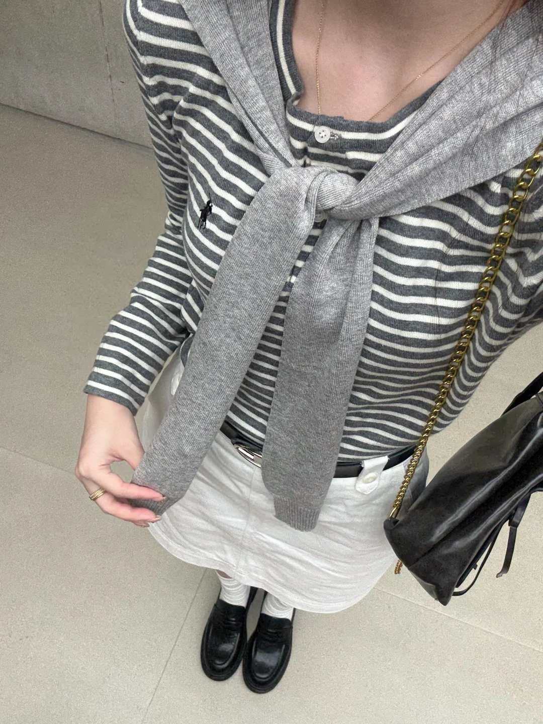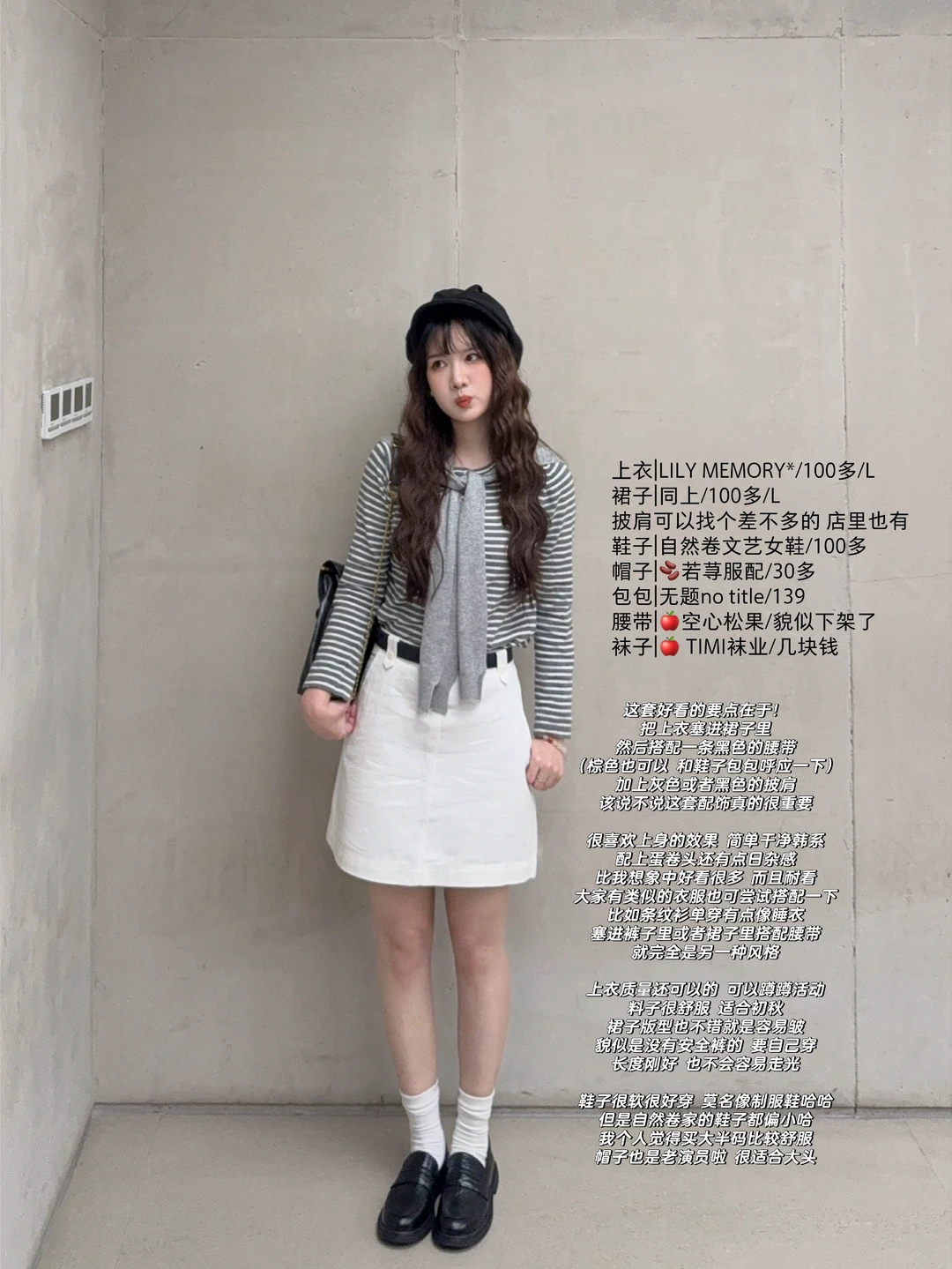 168/106左右 其实我感觉这套是韩系与日系并存 简简单单黑白灰 很适合初秋通勤 20多度乱穿衣就是这样啦 换成白色长裤或者白色短裤也是一样的效果哈 甚至是黑色系的下装也好看的 要点就是 衣服塞进去 搭配腰带 不要小看了配饰的重要性~ (在为去日本穿搭苦恼的时候 突然这套很适合10月的日本 感觉穿着走在大阪街头还是蛮配的诶 也很适合小韩哈哈哈 一切街景都很适配~)