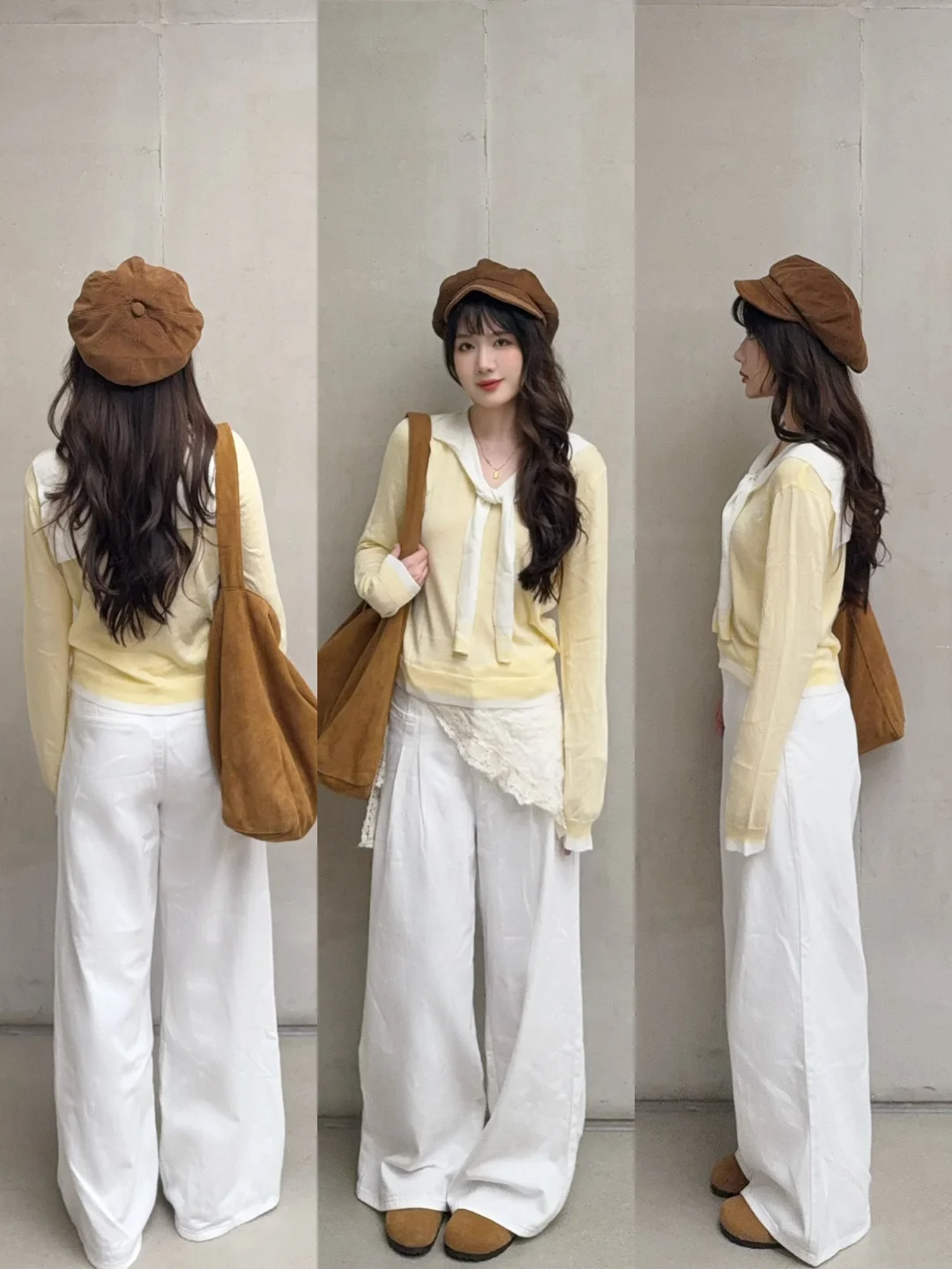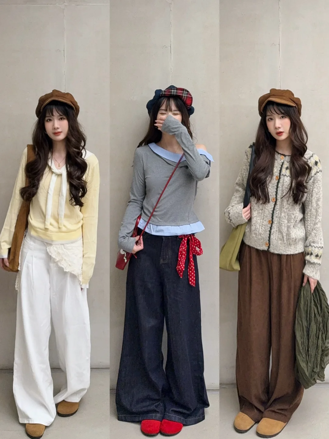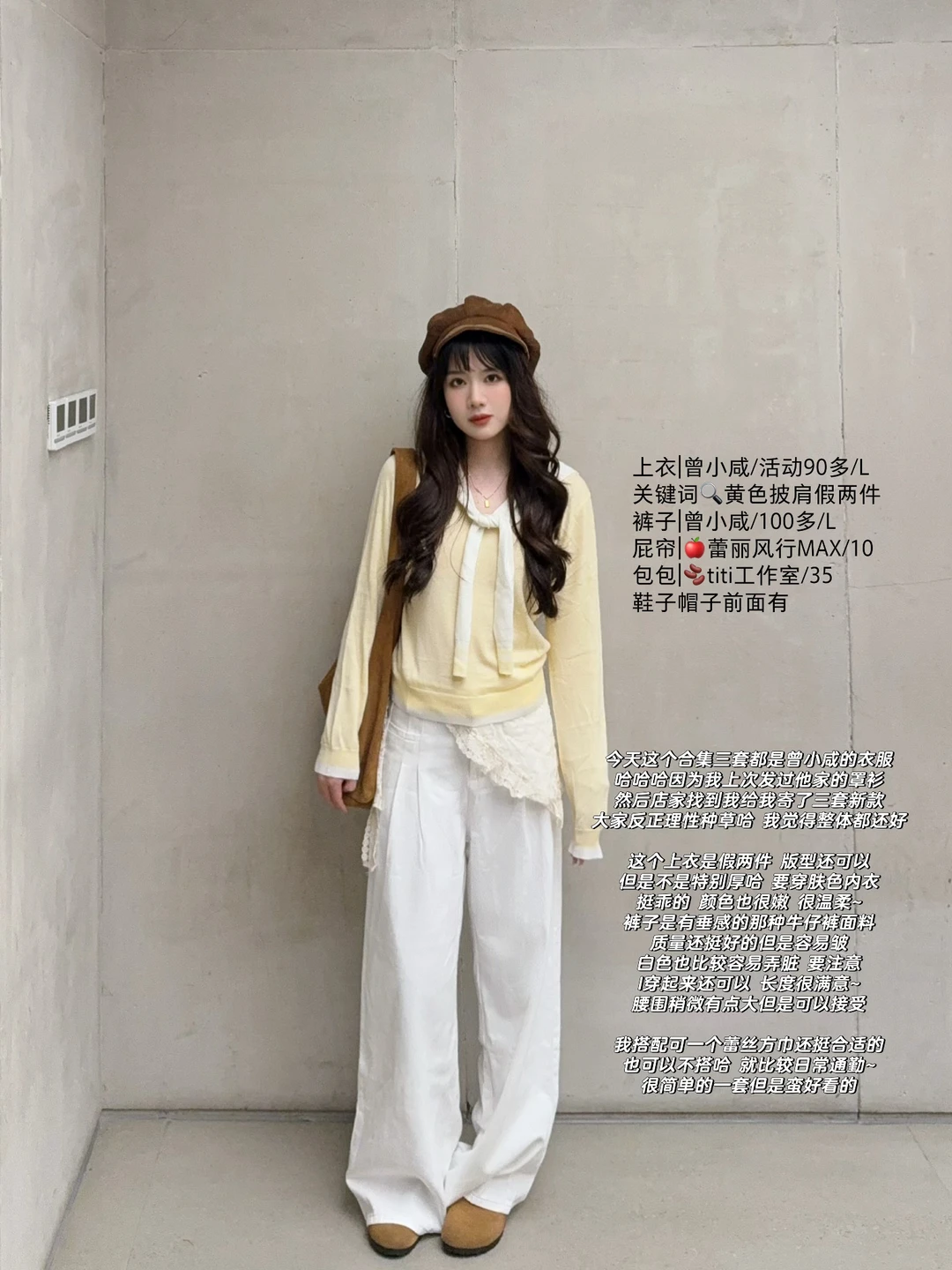 168/106左右 初秋穿搭来啦 这一期其实配饰还值得借鉴的 大家有类似的衣服可以尝试去搭配一下 绿棕/黄白/红蓝 三个秋冬色系直接拿捏 唠叨几句 这三套单穿很好看 当内搭也挺出彩的 第一套可以搭配卡其色/棕色/米白色/绿色系的外套 第二套可以搭配棕色/白色系的外套(外套和鞋子呼应一下) 第三套可以搭配黑色/白色/红色系的外套 外套指的是 夹克 皮衣 西装 卫衣 风衣 大衣之类的 长短都行 偏向于搭配短款更利落~