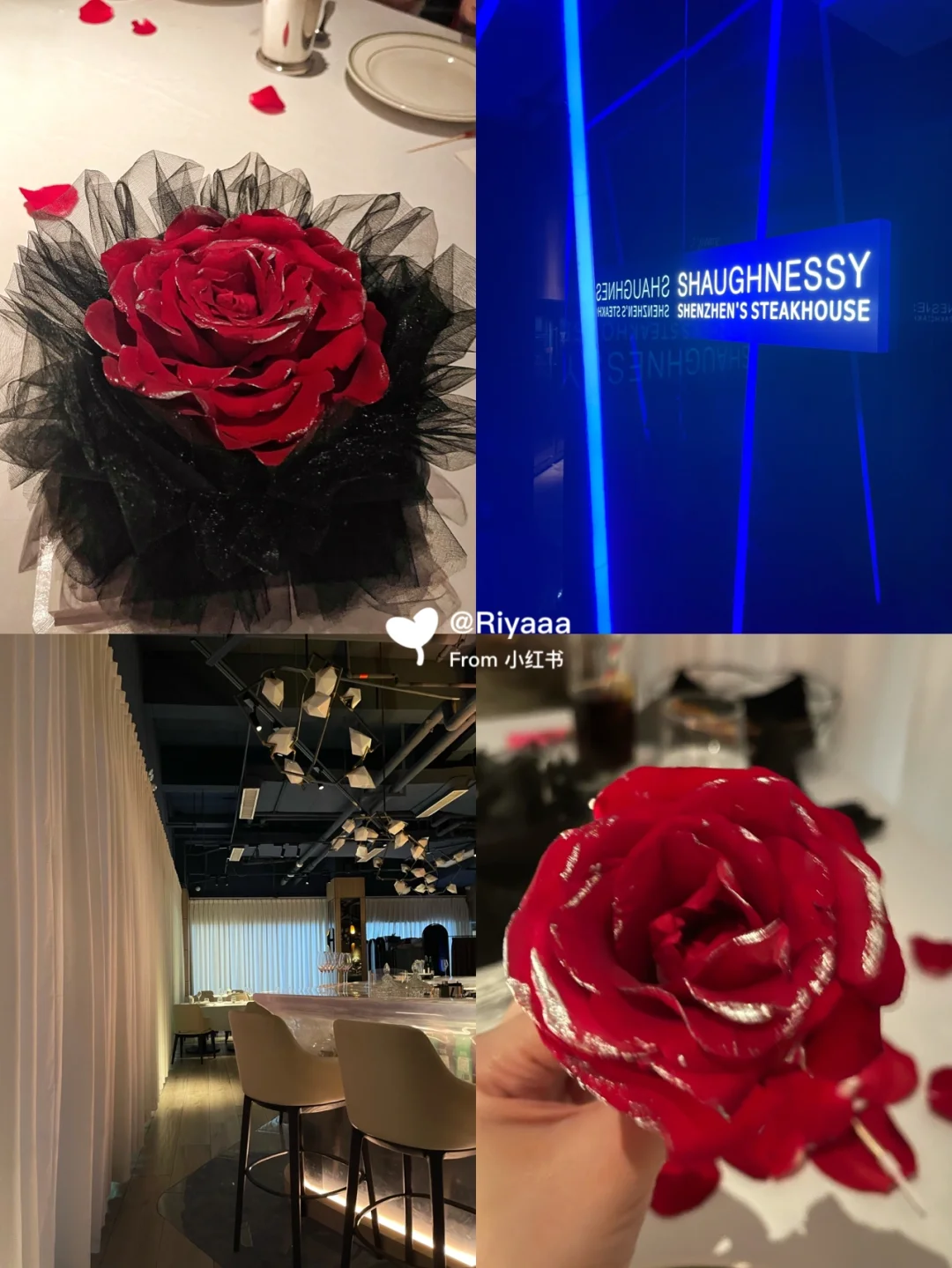 SHAUGHNESSY Restaurant & Bar 📖介绍: 生日选在了黑珍珠入围的干式熟成牛排店 这家可以说是牛排爱好者必打卡店 也是我心里的深圳牛排店前三! 预约时注明过生日会在桌上撒上花瓣,还会送一个「芝士蛋糕」噢! - [偷笑R]关于环境: 店面虽然不大,但里外装修都属于高级西餐厅的水准 尤其是镜面墙视觉上扩大了面积,中央的吧台和白色窗帘都拉升了氛围感 但餐厅选址真的不太行,卫生间巨远在商场里,周边都是低端快餐店,一下子拉低了档次 - 🥩关于菜品 「战斧牛排」这里牛排都是干式熟成28天,使其牛肉本身的风味更加集中和浓郁~基本都是三成熟,完全不用担心吃不惯 「烤牛骨髓」放在烤面包上真的太太太好吃了! 「鹅肝海胆鱼子酱」一口就没了但份量刚好,多了就腻了 「刺生马天尼 shooters」这个也很好吃! 「马粪海胆意粉」海胆和鱼籽份量太足了!味道超浓郁!大满足!就是意面对我来说偏硬 「芝士蛋糕」送的芝士蛋糕芝士味超级浓厚 - 吃下来不愧是科技园西餐第一,黑珍珠入围恐怕是因为周边环境不匹配吧 过生日或约会的宝宝们拍照建议开闪光灯哦,光线非常暗 - 这次找 订了个玫瑰生日蛋糕,不仅好看还好吃~ - ⏰时间: 11:30-14:30 17:30-22:30 - 💰价位: 人均1000元 - 📍地点: 深圳 南山 科技园 深圳南山科苑路中国储能大厦负一楼10-11号 -