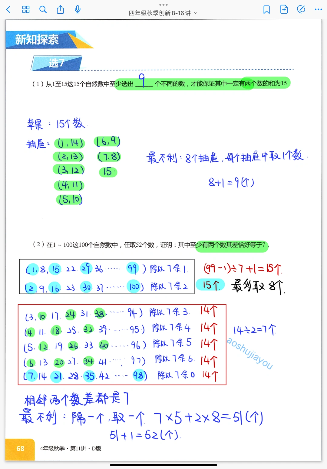 《计数综合》五年级秋季创新班奥数课堂笔记