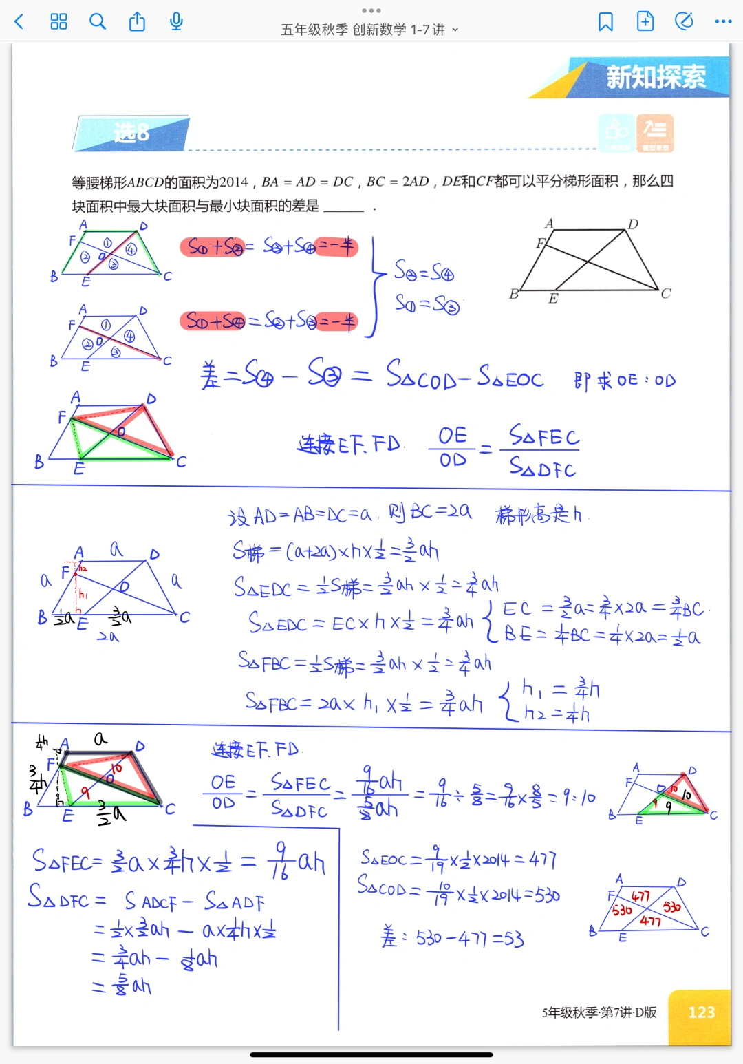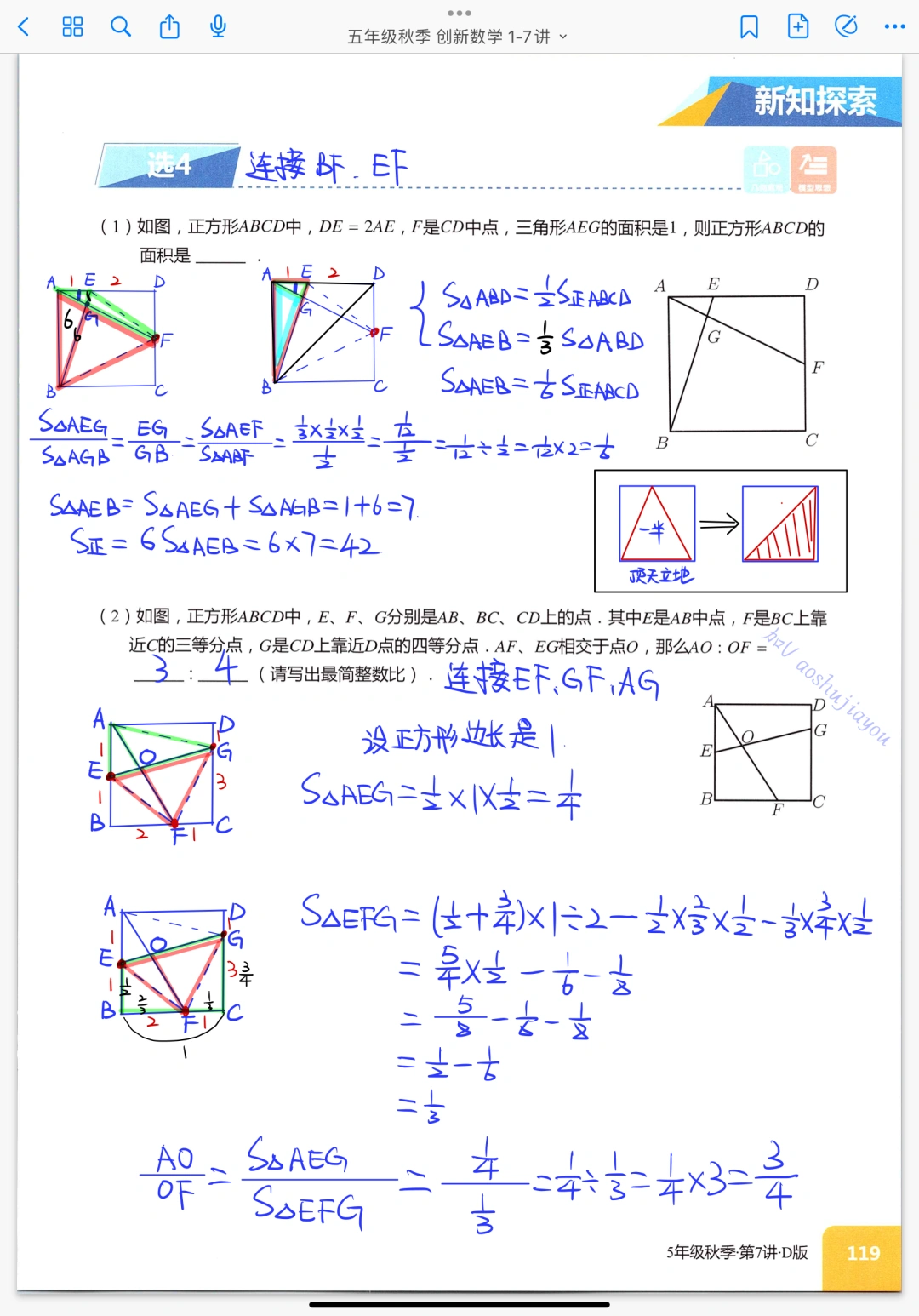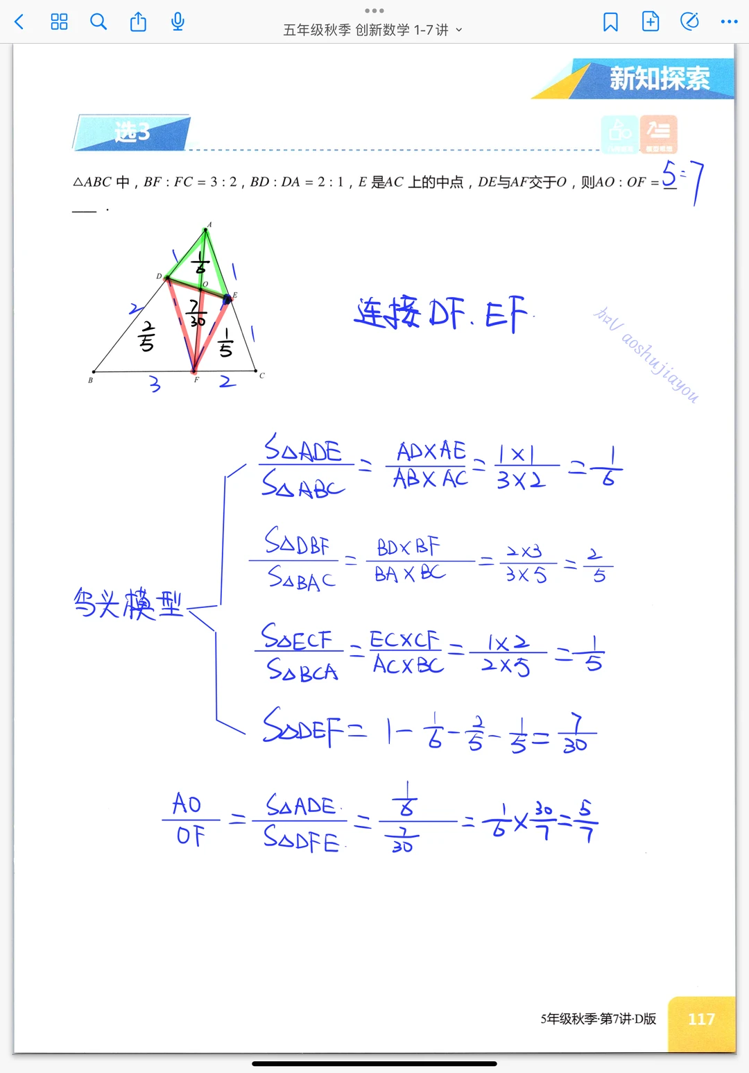 《燕尾模型》五年级秋季创新班奥数课堂笔记