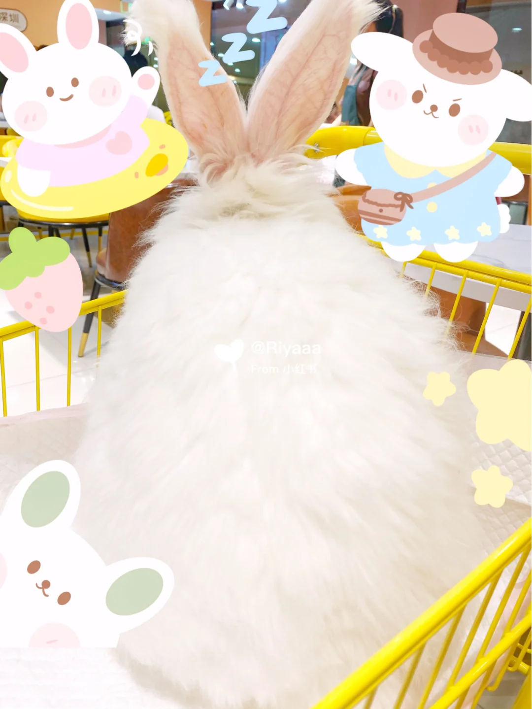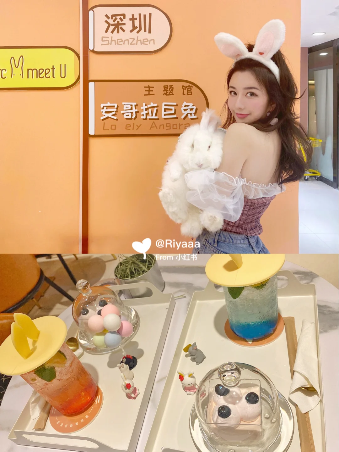 深圳[地点]深圳终于也开了安哥拉巨兔体验馆啦!不仅可以撸兔子~还可以喝下午茶~之前看别的Po主发简直手痒到不行!真想撸秃它们!巨兔太可爱啦!赶紧跑来打卡~ 🐰店名: Nice to meet U爱玩萌兔体验馆(东门店)[地点] - 📍地址: 深圳罗湖区东门中路茂业百货11F (晒布D3出口)Nice to meet u 爱玩萌兔 海底捞旁边 - 💰价格: 68元/位,含下午茶套餐(饮料➕蛋糕)和专属兔兔,限时90分钟~ 38元/位,纯撸兔,限时50分钟~ - [黄金薯R]介绍: 安哥拉兔(Angora)是世界著名的毛用型兔品种,长毛兔的一种。其毛发浓密细长,网络又称草泥兔。 - 挑了周中的下午来,大概有5、6桌人,不过幸好这家有20只安哥拉巨兔,每桌可以有一只专属兔兔撸~工作人员会先讲解撸兔子的注意事项,然后就可以开撸啦! - 有个架子上专门放了各式各样的兔子衣服和头饰,还有人戴的兔耳发箍哦~怕衣服上粘毛的宝宝们也可以穿他们家围裙,或者拿粘毛器粘掉哦~店家可以说很用心啦💕 - 我分到的这个兔兔超级乖,很干净也没有味道~抱上去跟一团毛球似的特别舒服!还特别软!随便怎么抱都不会动~很享受你摸她似的哈哈~不过宝宝们还是要注意抱姿,不要弄伤这么软萌的它们啦~ - 👗穿搭: 整体装修是少女可爱黄色风格~ 👙建议搭配白色、粉色、黄色或蓝色的少女风格或者带毛毛的衣服~ 👒配饰可以配店里提供的毛毛发箍