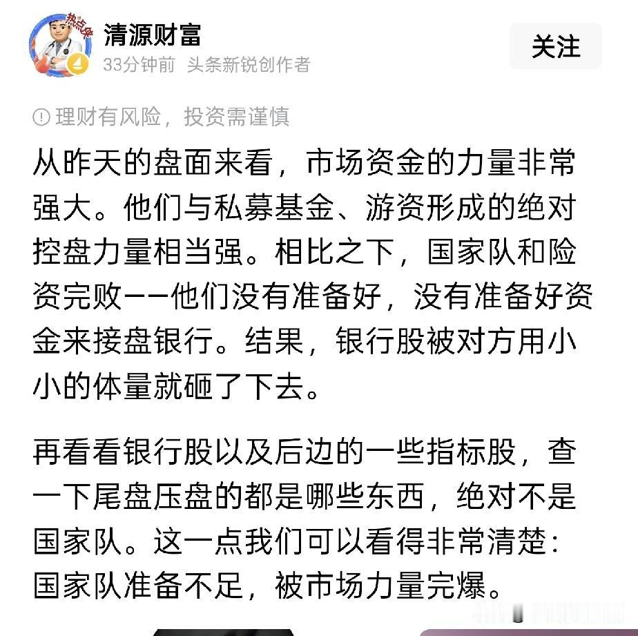 这位完全搞反了,压盘大盘股,尾盘挂大卖单的就是GJD。 结合盘中出的两融保证金比例的调整政策,监管的意图已经很明确了:需要市场牛,但不需要市场快牛和疯牛;大盘股和银行股大部分也确实没有景气业绩支持,不涨合理;可以有结构性行情,但是不支持总量行情,一切都是为了这轮牛市行稳致远。 多的我就不说了,天机不可多泄露,到现在都不能看明白和理解的,不赚钱是应得的。